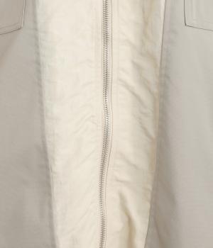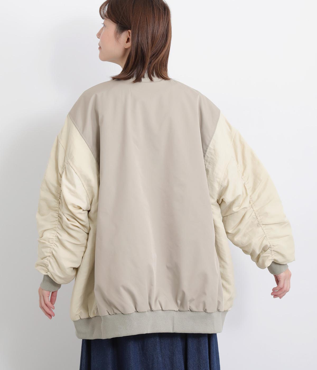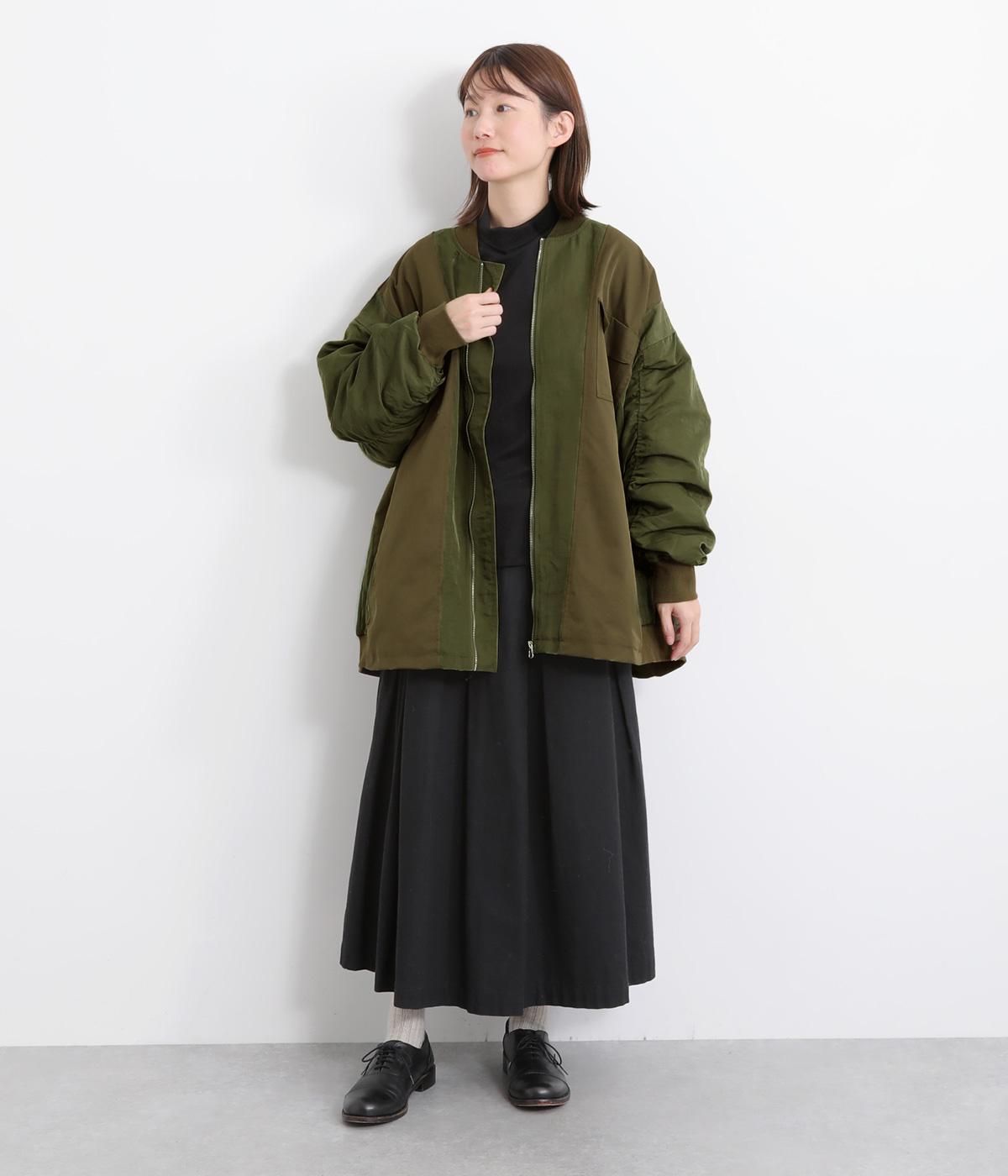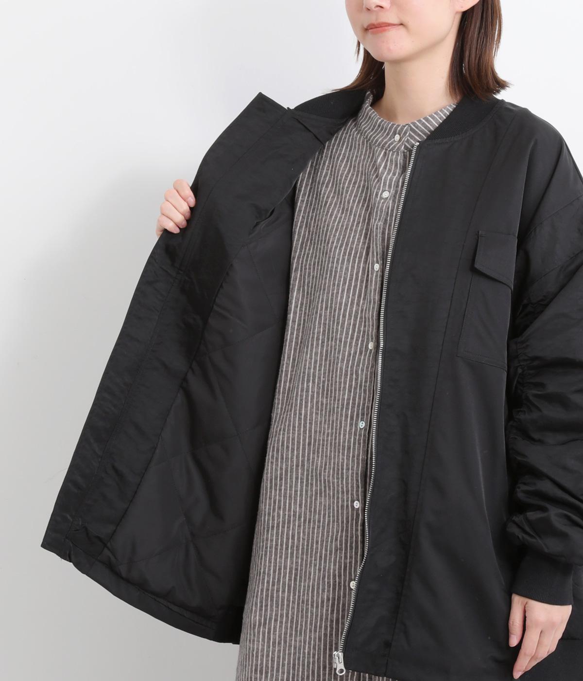 ハリのあるツイル素材と、なめらかな光沢をもつナイロンを組み合わせています。袖口や首元のリブは防寒性とデザイン性を高めるワンポイントに。裏地には中綿を入れ、あたたかさと軽さを両立。