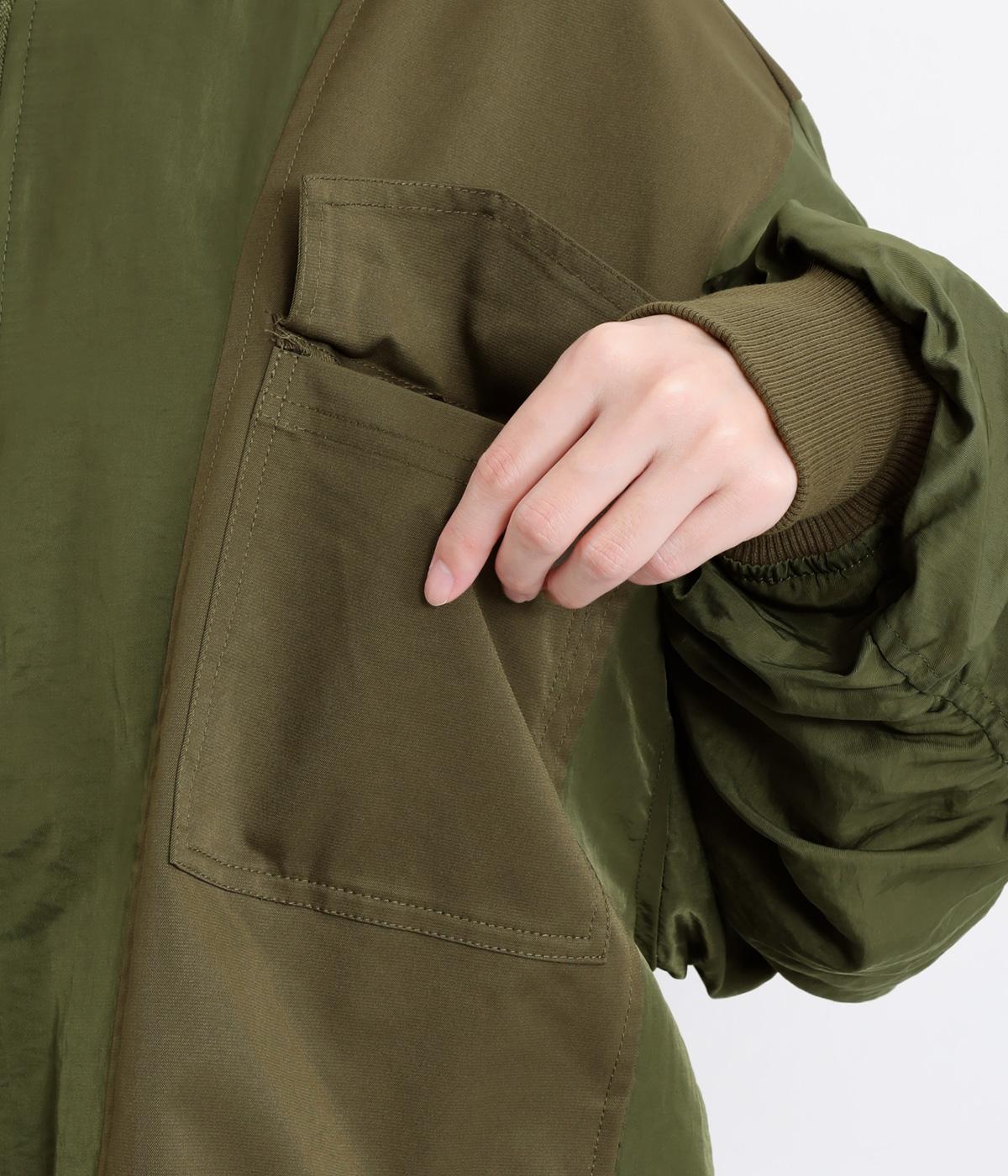リメイク風のディテールを取り入れて、新鮮なミリタリーアイテムに仕上げたブルゾンです。フロントに配した立体感のあるポケットがアクセント。異素材のコントラストがシンプルなコーディネートにインパクトを与えます。