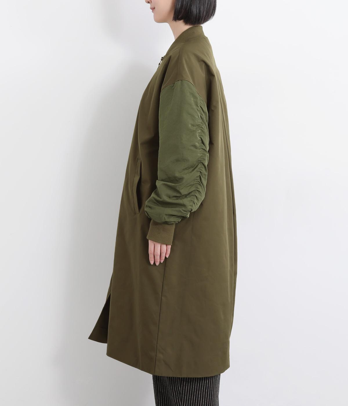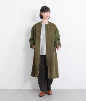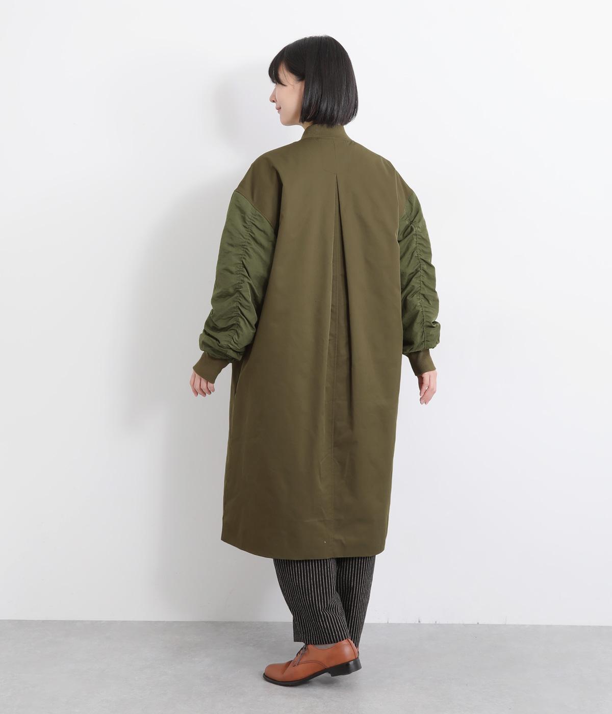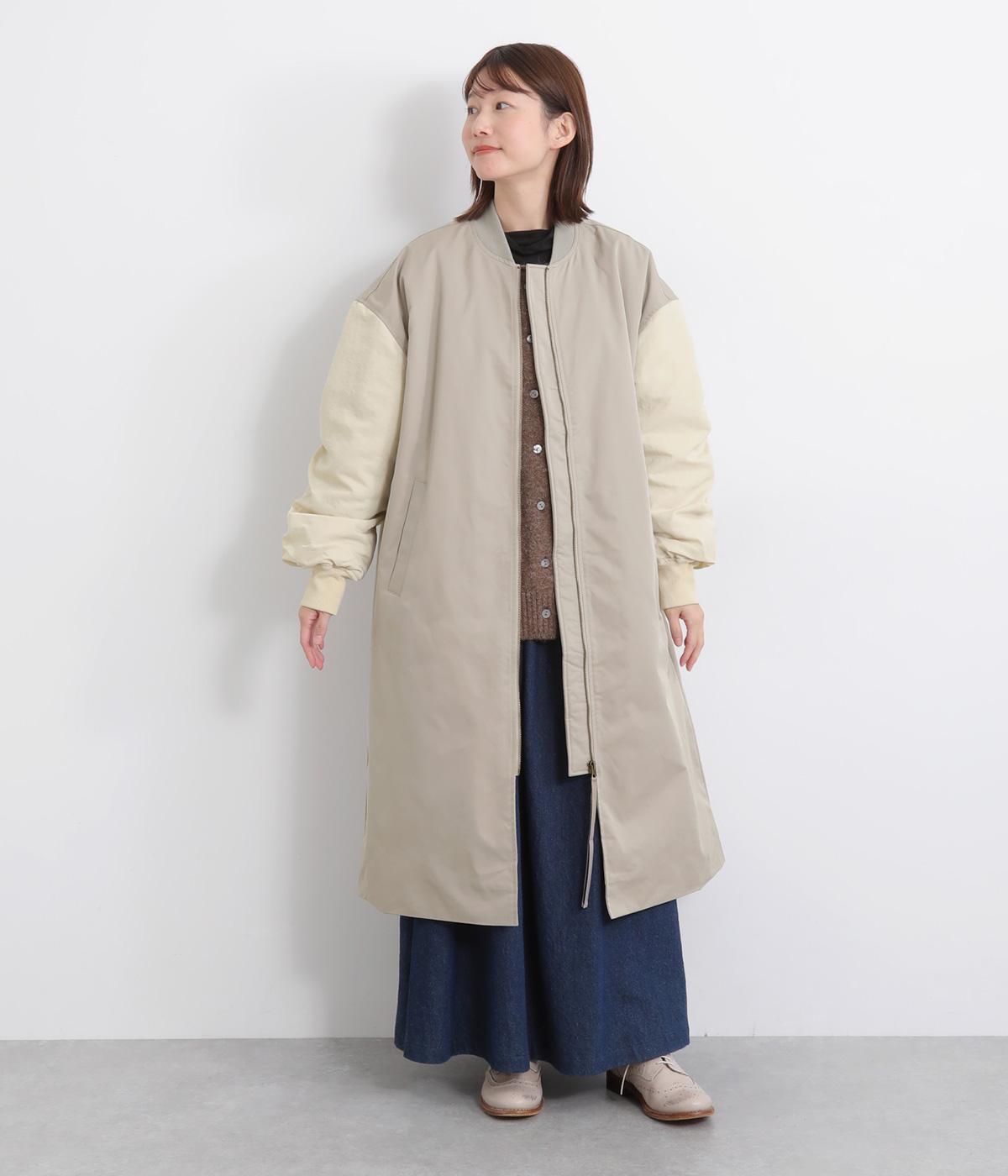 クラシカルなMA-1のディテールをベースに仕立てたコートです。たっぷりとした着丈とボリュームのある袖は、さりげないモード感をプラスしながら汎用性の高さも魅力。バックスタイルにはインバーテッドプリーツが入り、動くたびに広がる美しいシルエットを生み出します。