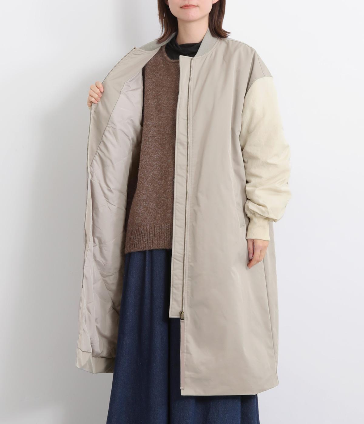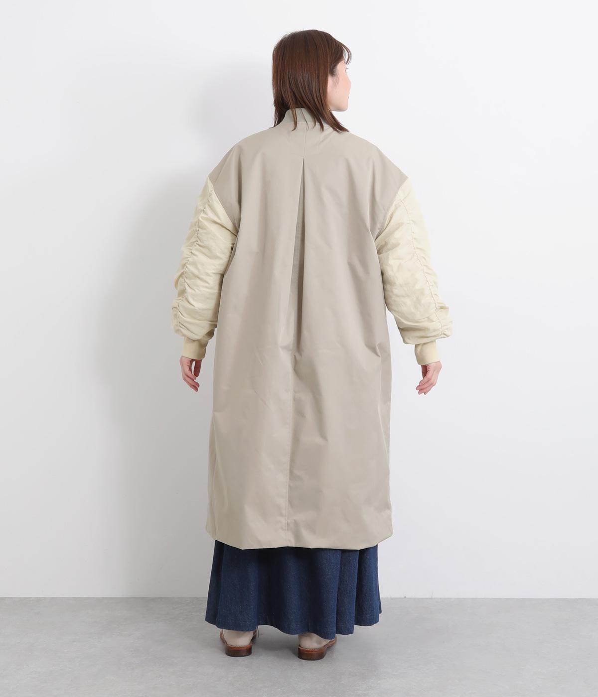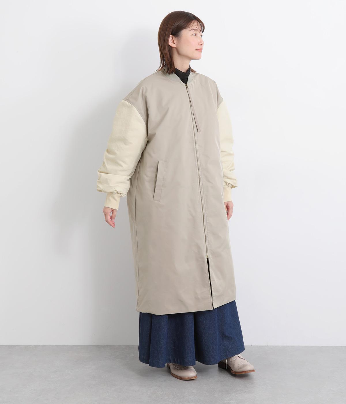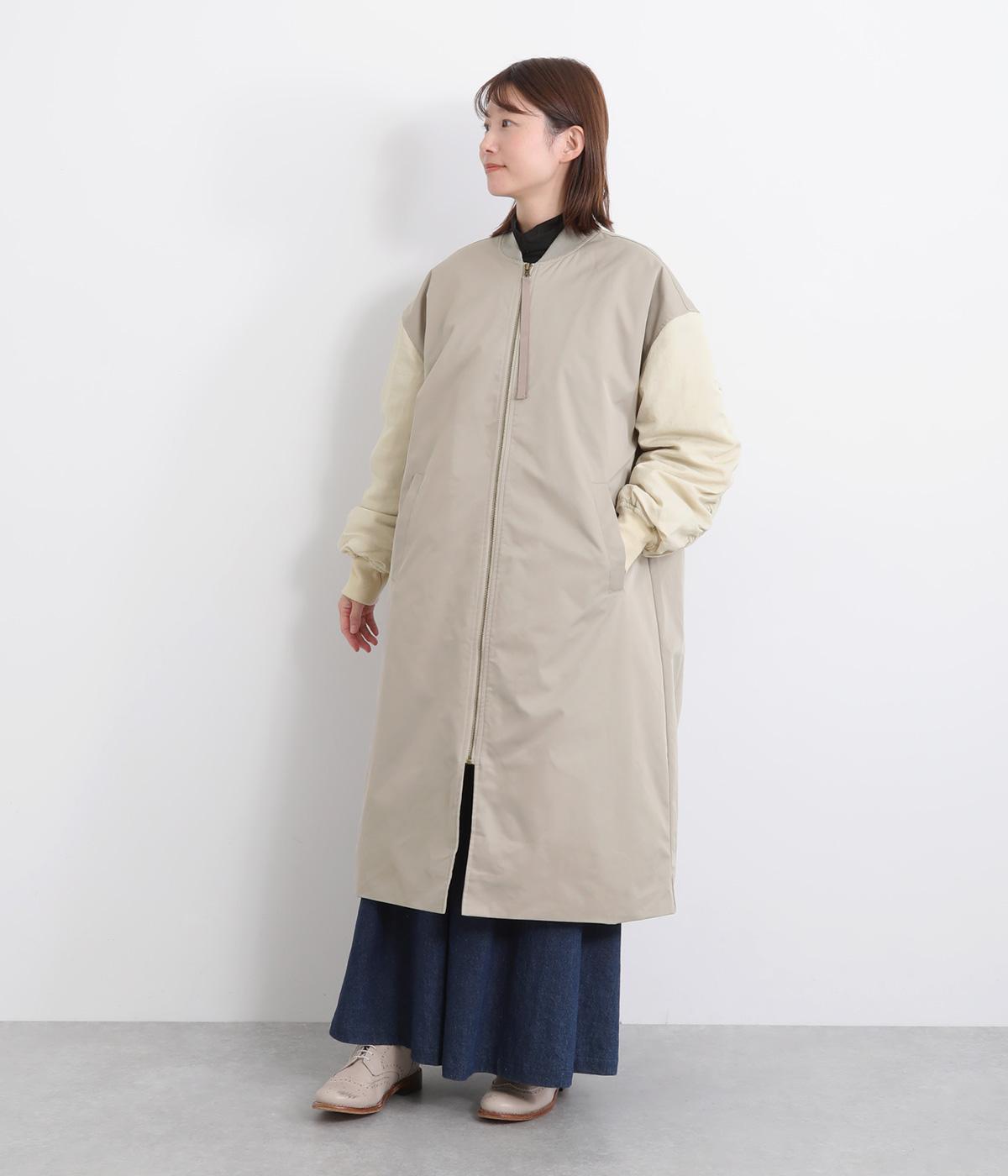 クラシカルなMA-1のディテールをベースに仕立てたコートです。たっぷりとした着丈とボリュームのある袖は、さりげないモード感をプラスしながら汎用性の高さも魅力。バックスタイルにはインバーテッドプリーツが入り、動くたびに広がる美しいシルエットを生み出します。