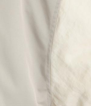 ハリのあるツイル素材と、なめらかな光沢をもつナイロンを組み合わせました。裏地には中綿を入れ、あたたかさと軽さを両立。袖口や首元はリブで切り替え、防寒性をアップしています。