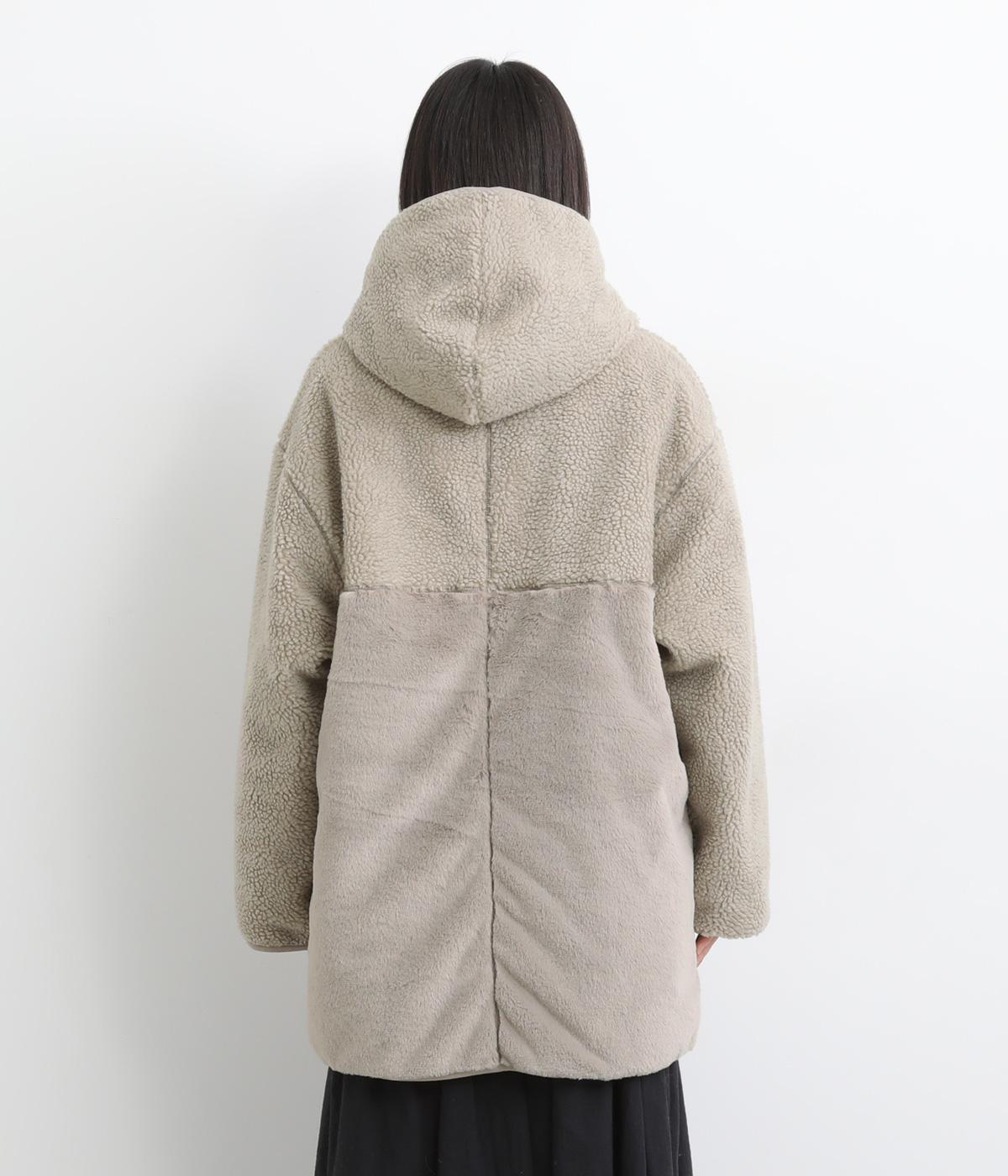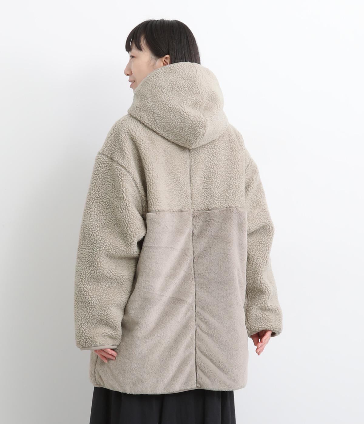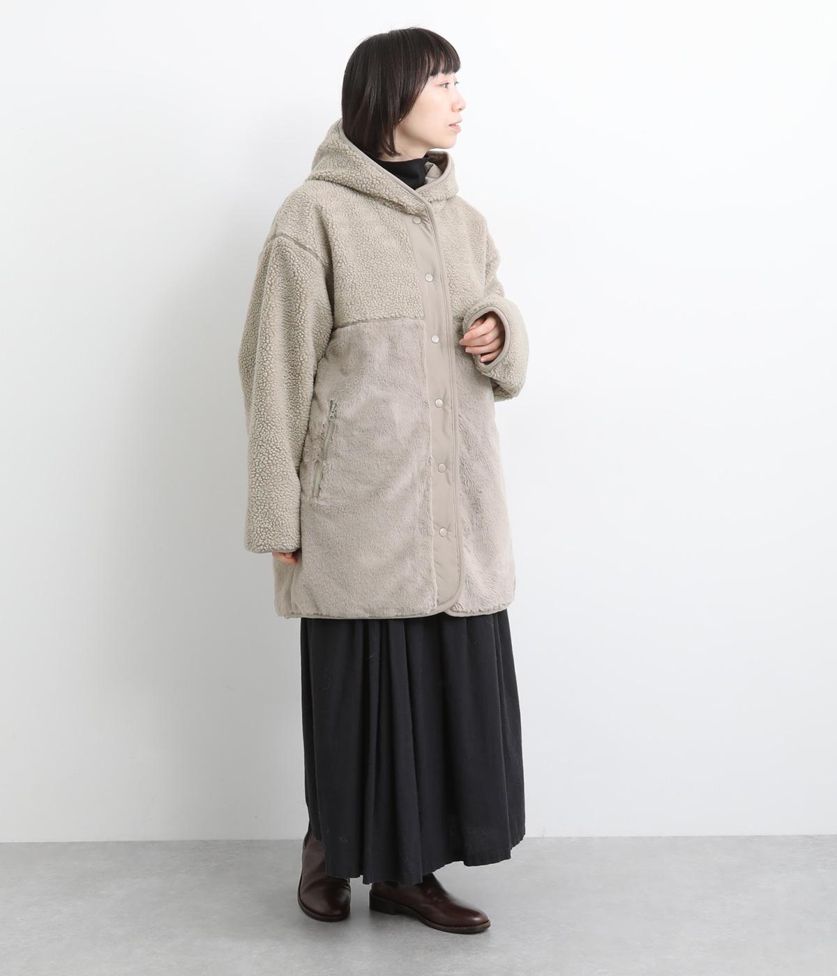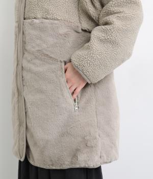素材の違いをたのしめる、デザイン性の高いリバーシブルコートです。ゆったりとしたドロップショルダーとボックスシルエットが体をつつみ、ヒップが隠れる丈感で防寒性も◎。ポケットはパッチとファスナーの二種類を備え、実用性にもすぐれています。