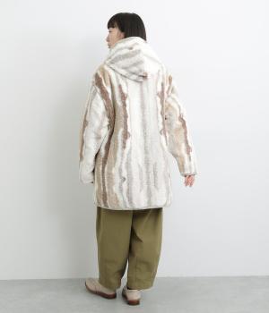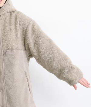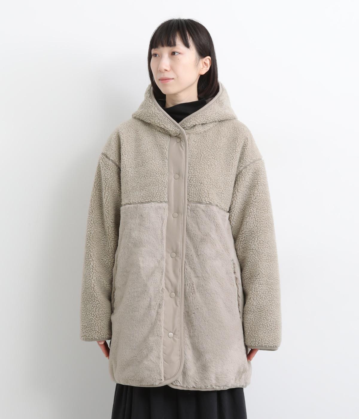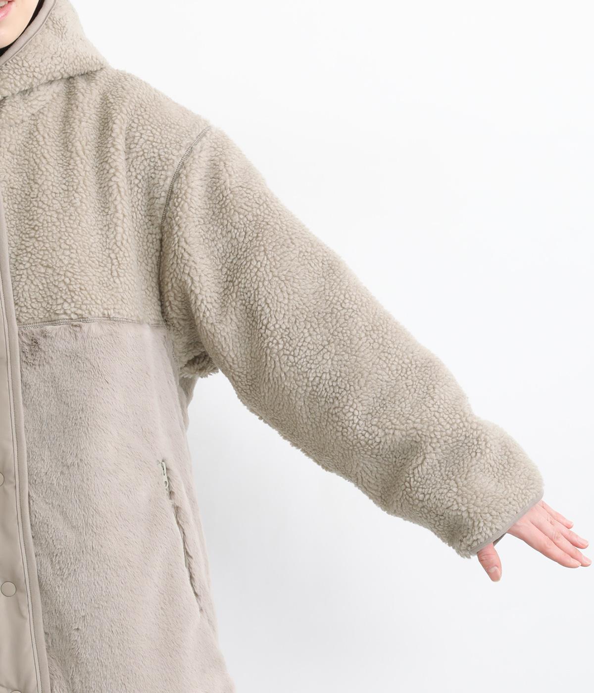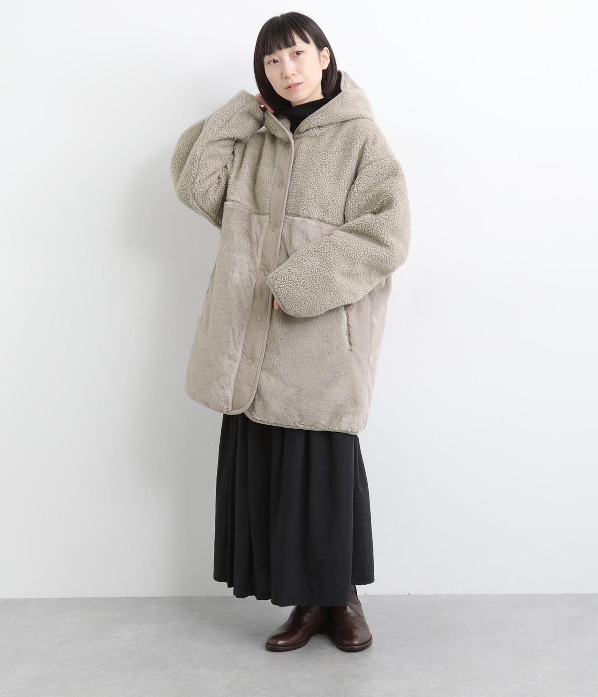 素材の違いをたのしめる、デザイン性の高いリバーシブルコートです。ゆったりとしたドロップショルダーとボックスシルエットが体をつつみ、ヒップが隠れる丈感で防寒性も◎。ポケットはパッチとファスナーの二種類を備え、実用性にもすぐれています。