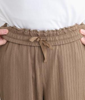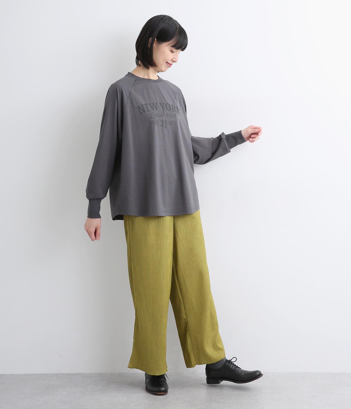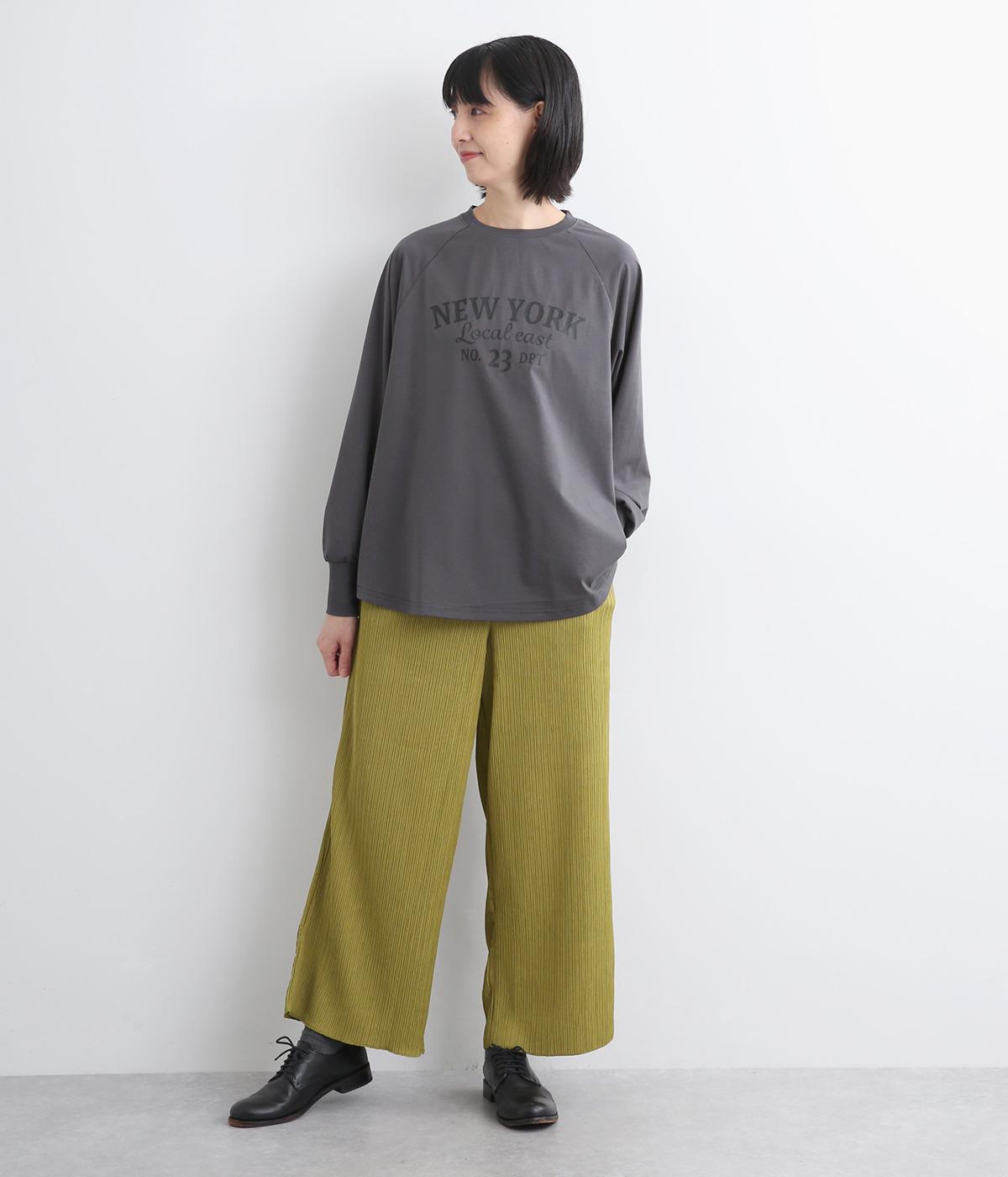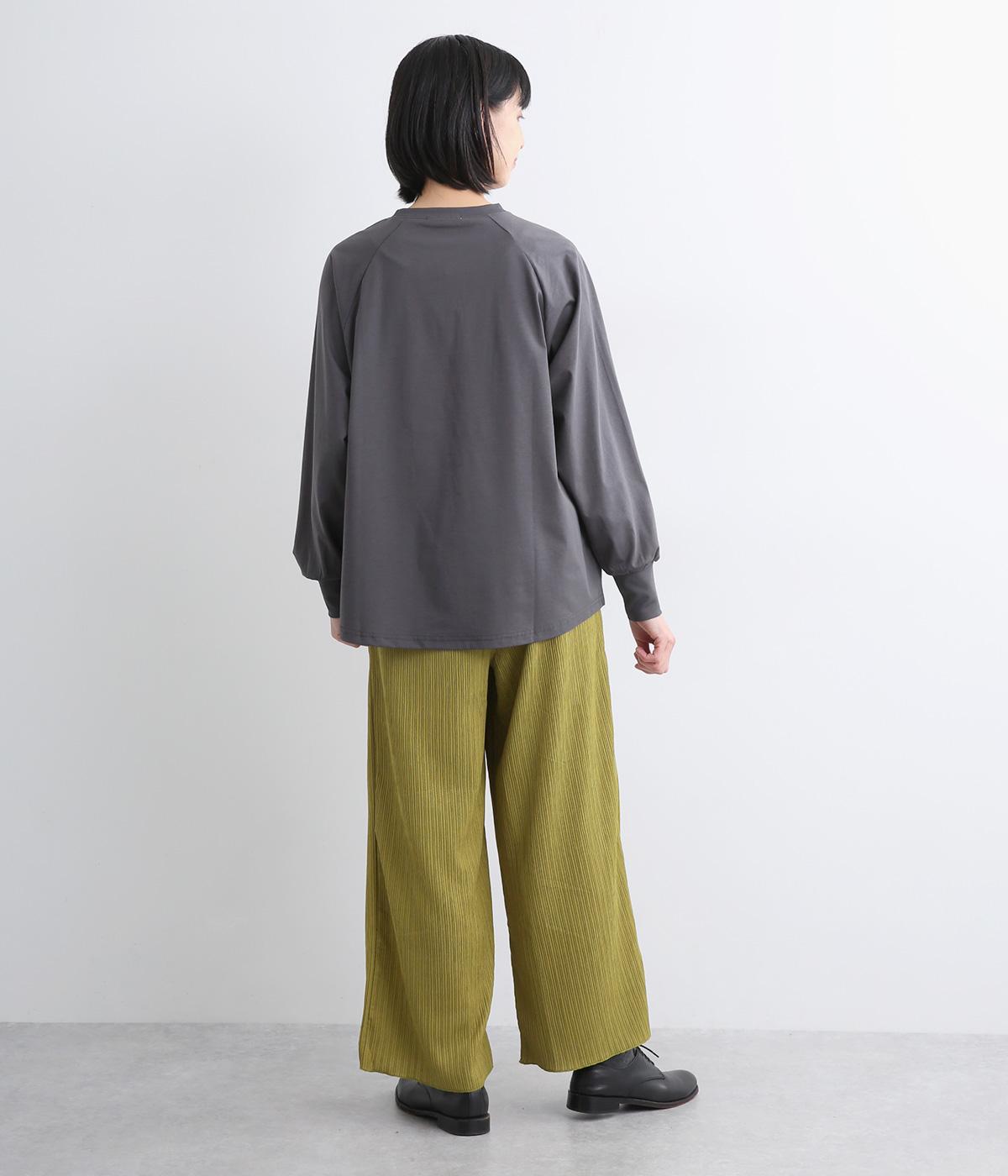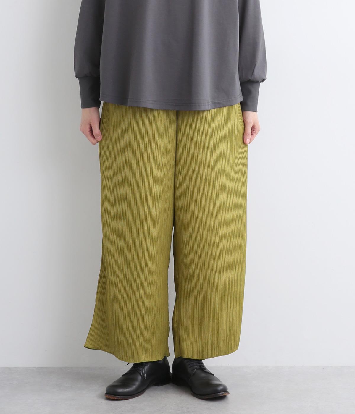 裾のメロー始末でさりげないアクセントを添えた、ワイドシルエットのイージーパンツです。広幅のウエストゴムでカジュアルになりすぎず、リラックスしたはき心地に仕立てました。内側に通した紐で微調節も可能です。
