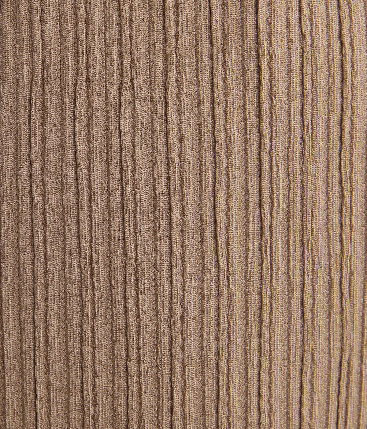 適度に伸縮性があり、やわらかでしなやかな肌ざわりをもつポリエステル混紡素材。薄手で軽やかさと、上品な光沢も特徴です。