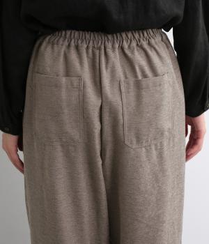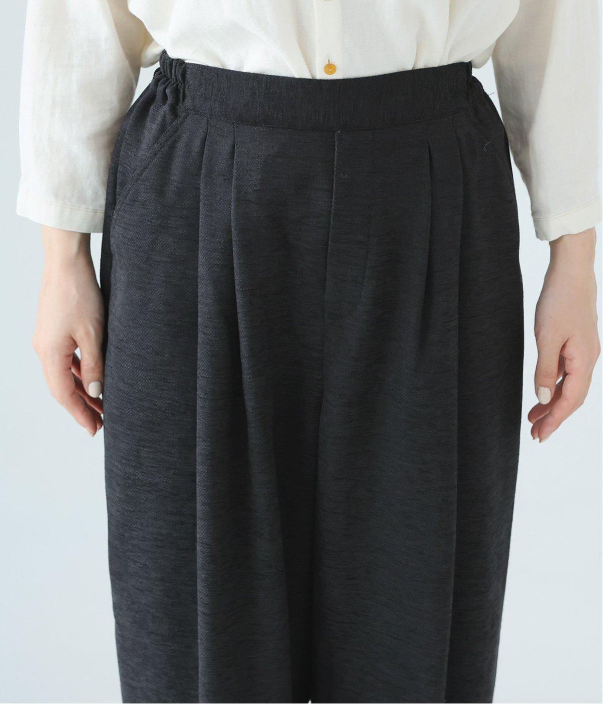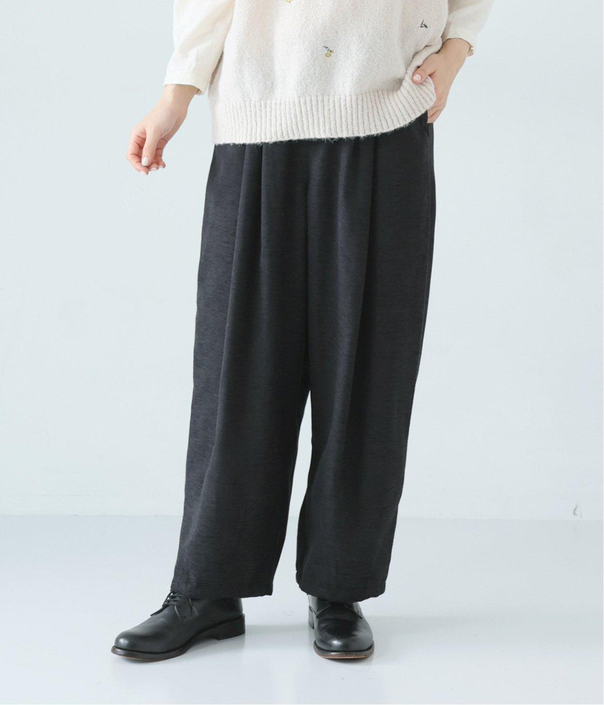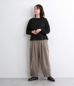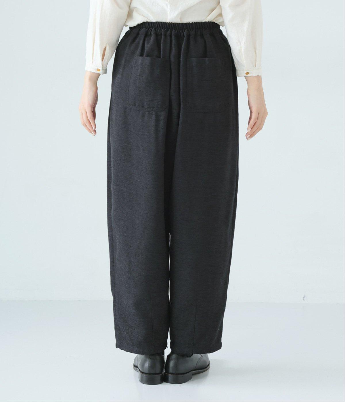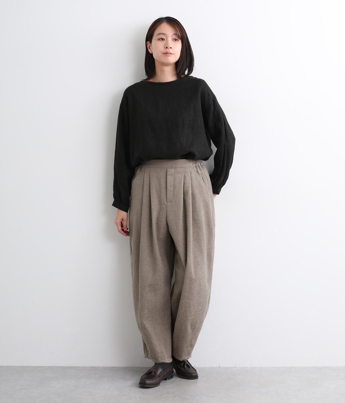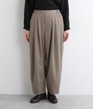 前ウエスト下にタックを、裾にダーツを施し立体的に仕上げたランタンパンツ。ふっくらとしたシルエットが体のラインをカバーしながら、着こなしのファッションムードを高めてくれます。ウエストは後ろのみゴム仕様で、前はすっきりと上品に仕上げました。