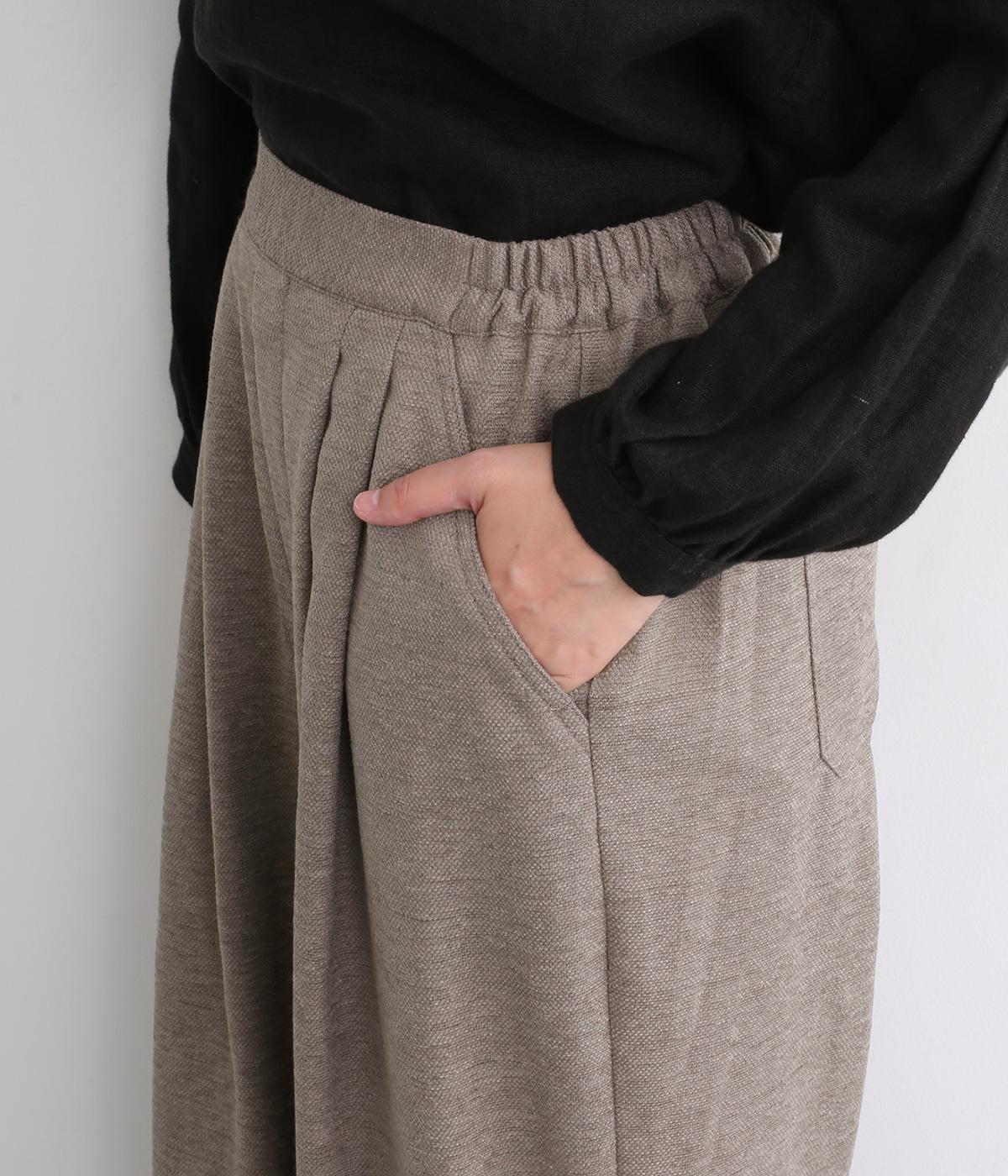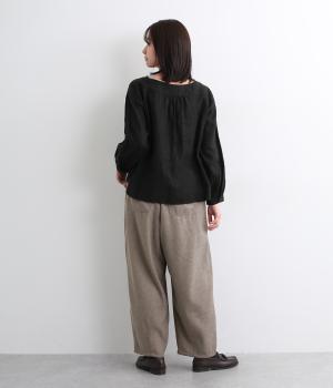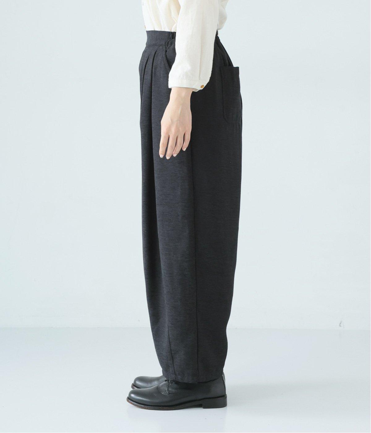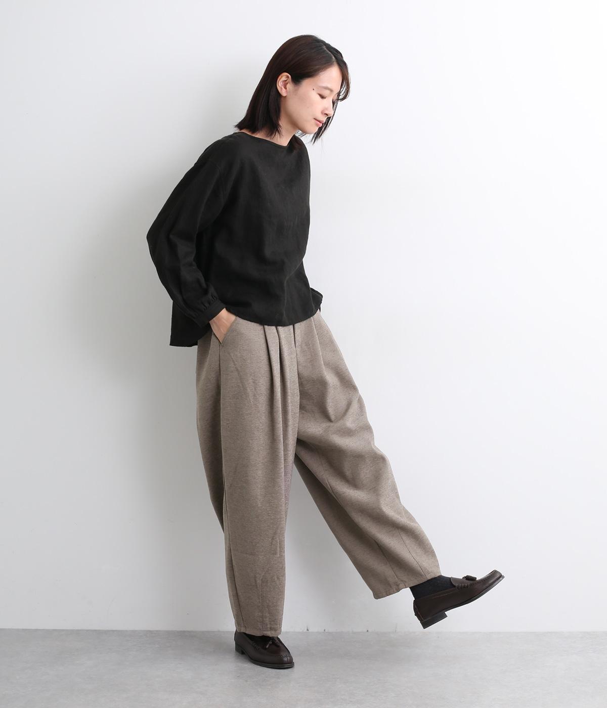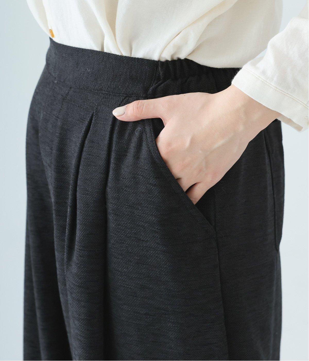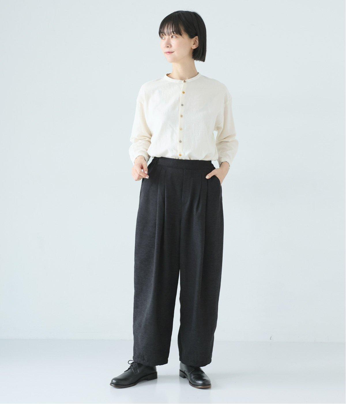 前ウエスト下にタックを、裾にダーツを施し立体的に仕上げたランタンパンツ。ふっくらとしたシルエットが体のラインをカバーしながら、着こなしのファッションムードを高めてくれます。ウエストは後ろのみゴム仕様で、前はすっきりと上品に仕上げました。