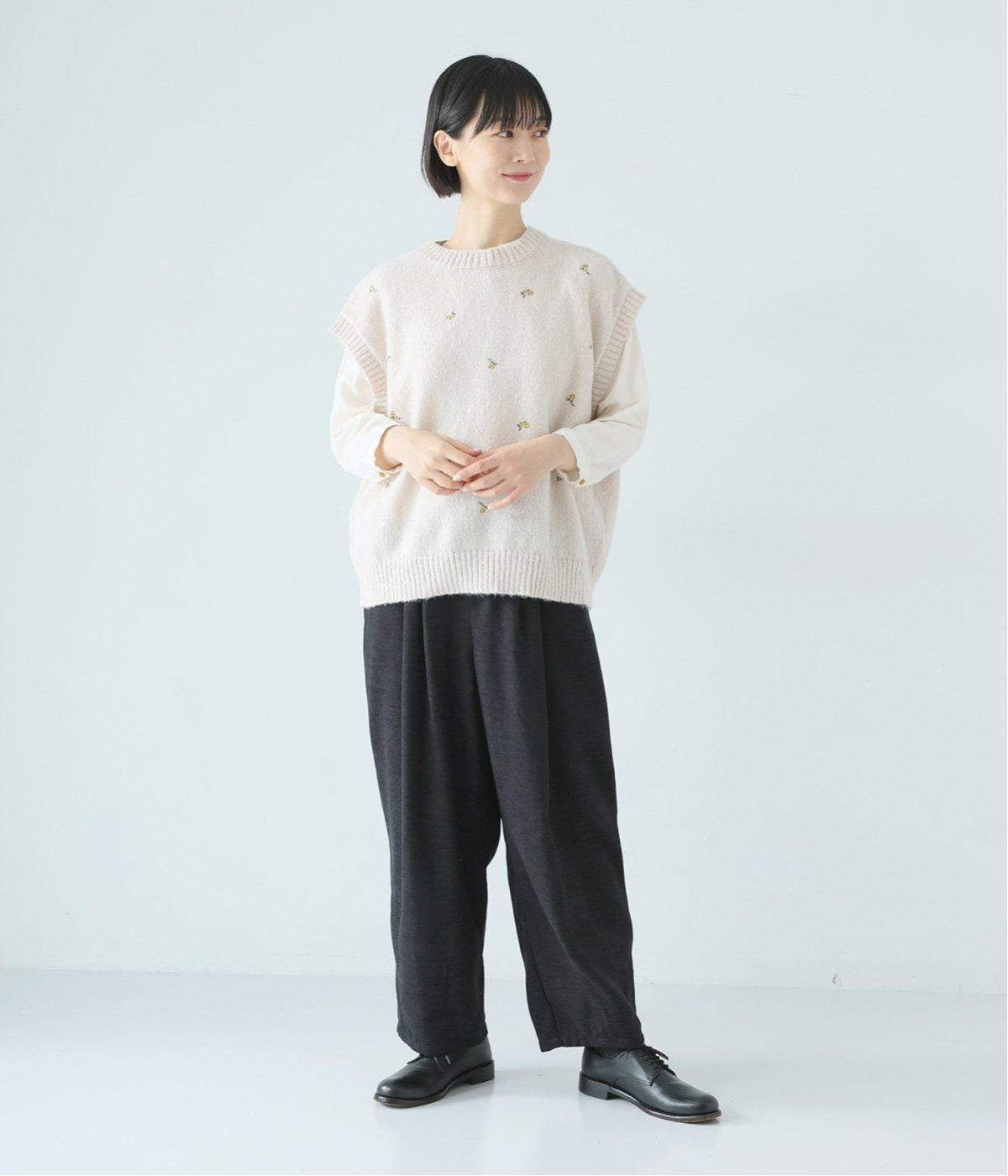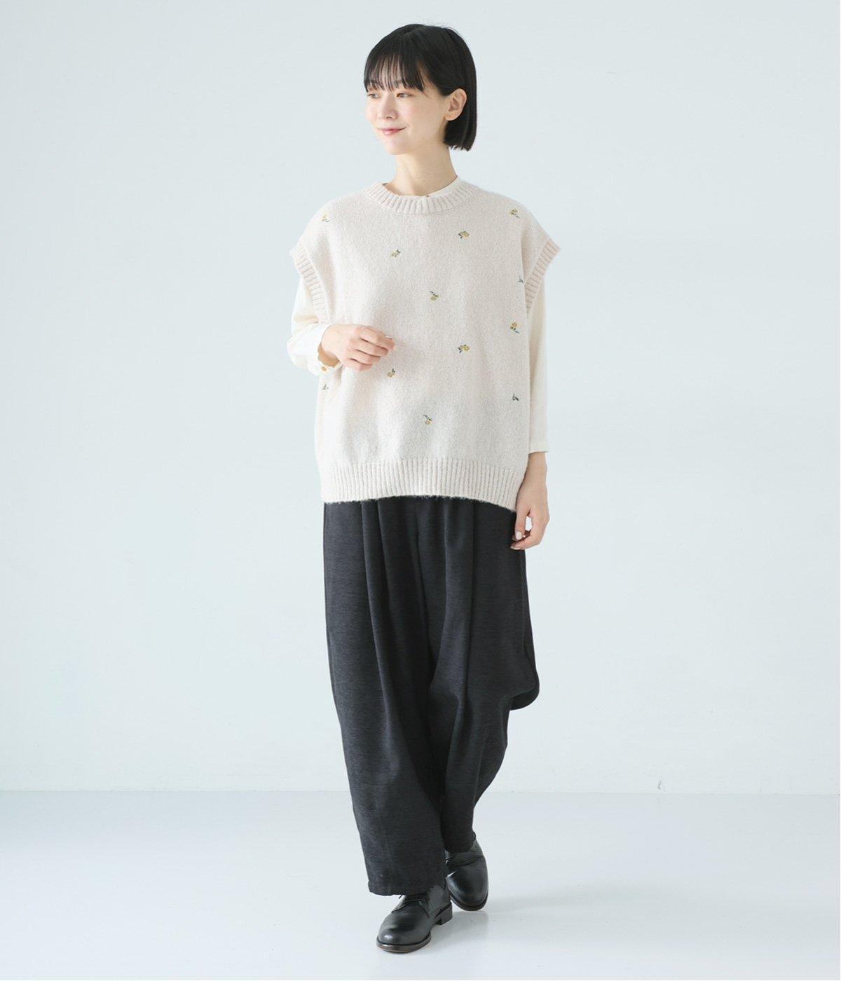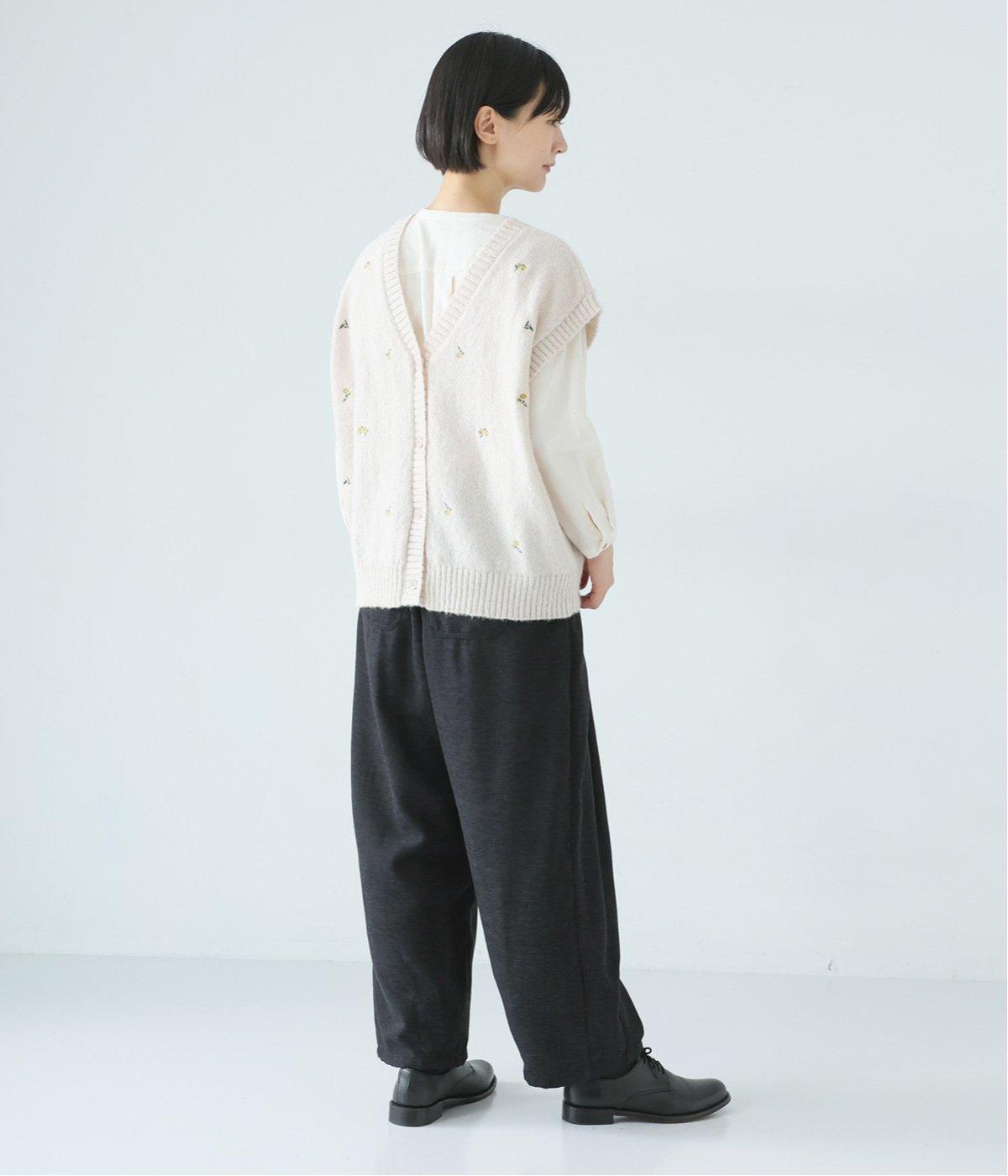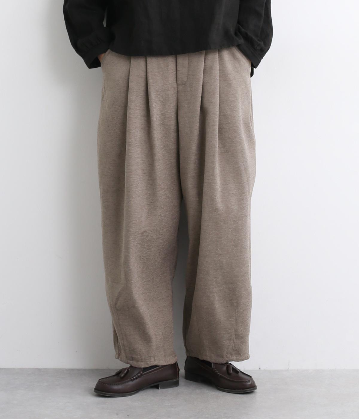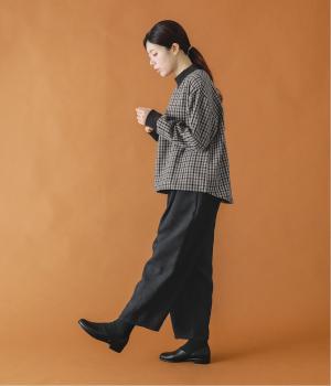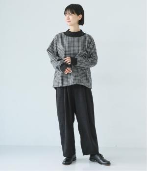 前ウエスト下にタックを、裾にダーツを施し立体的に仕上げたランタンパンツ。ふっくらとしたシルエットが体のラインをカバーしながら、着こなしのファッションムードを高めてくれます。ウエストは後ろのみゴム仕様で、前はすっきりと上品に仕上げました。