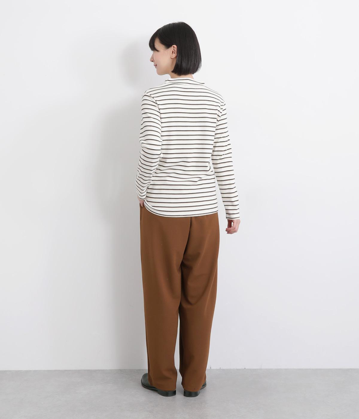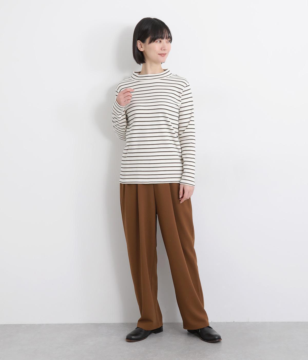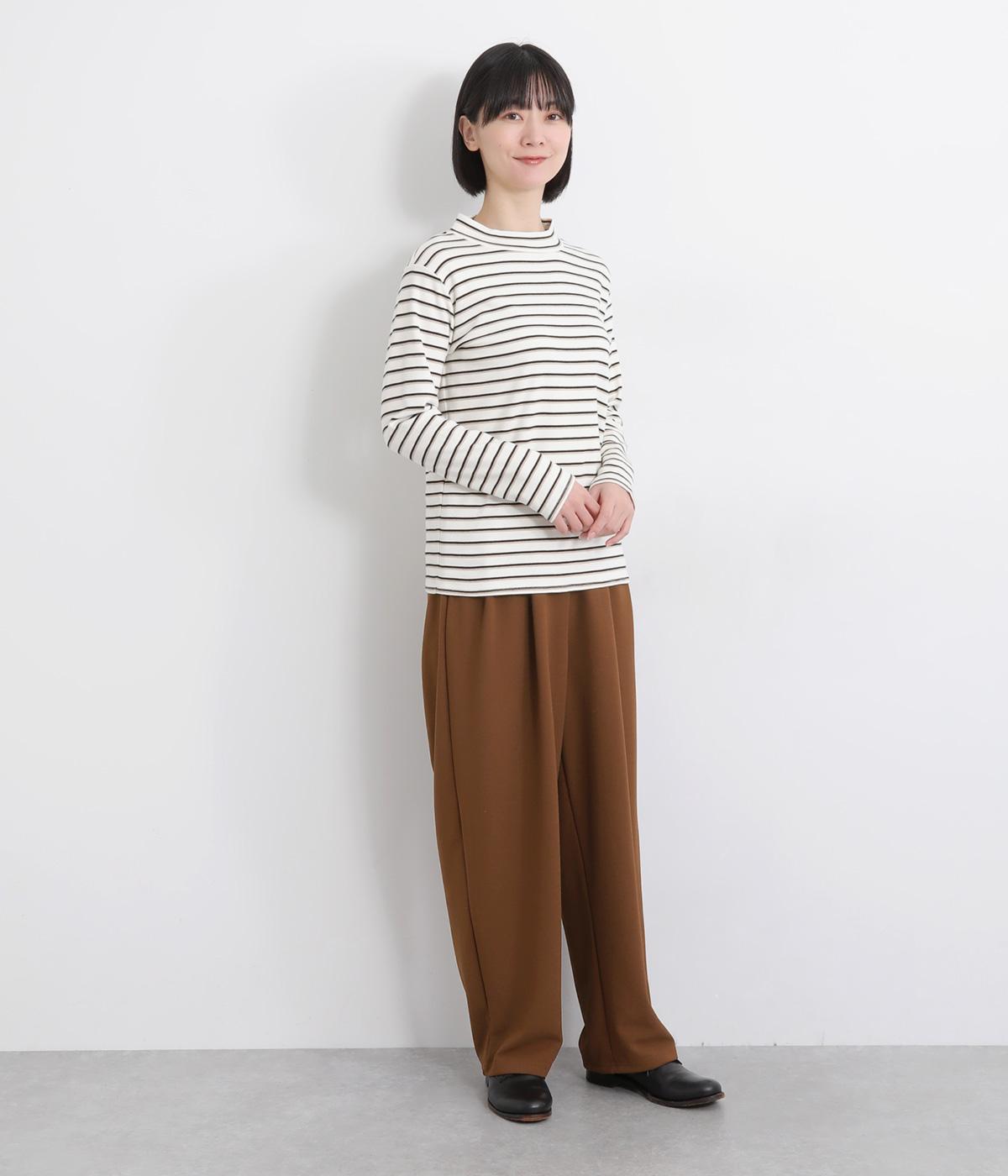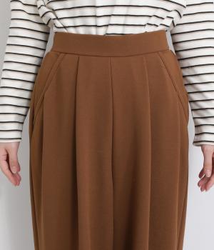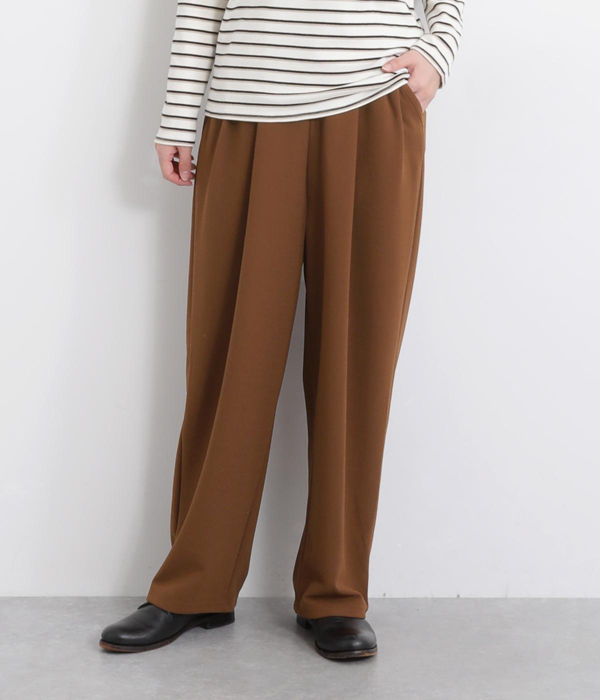 腰まわりにタックをほどこして、立体的な丸みを描くコクーンシルエットに仕上げたパンツです。ヒップや太ももまわりをカバーしつつ、裾にかけて細くなるラインで自然なメリハリを演出。ウエストは楽なゴム仕様ですが前はフラットに見えるため、トップスインも◎。