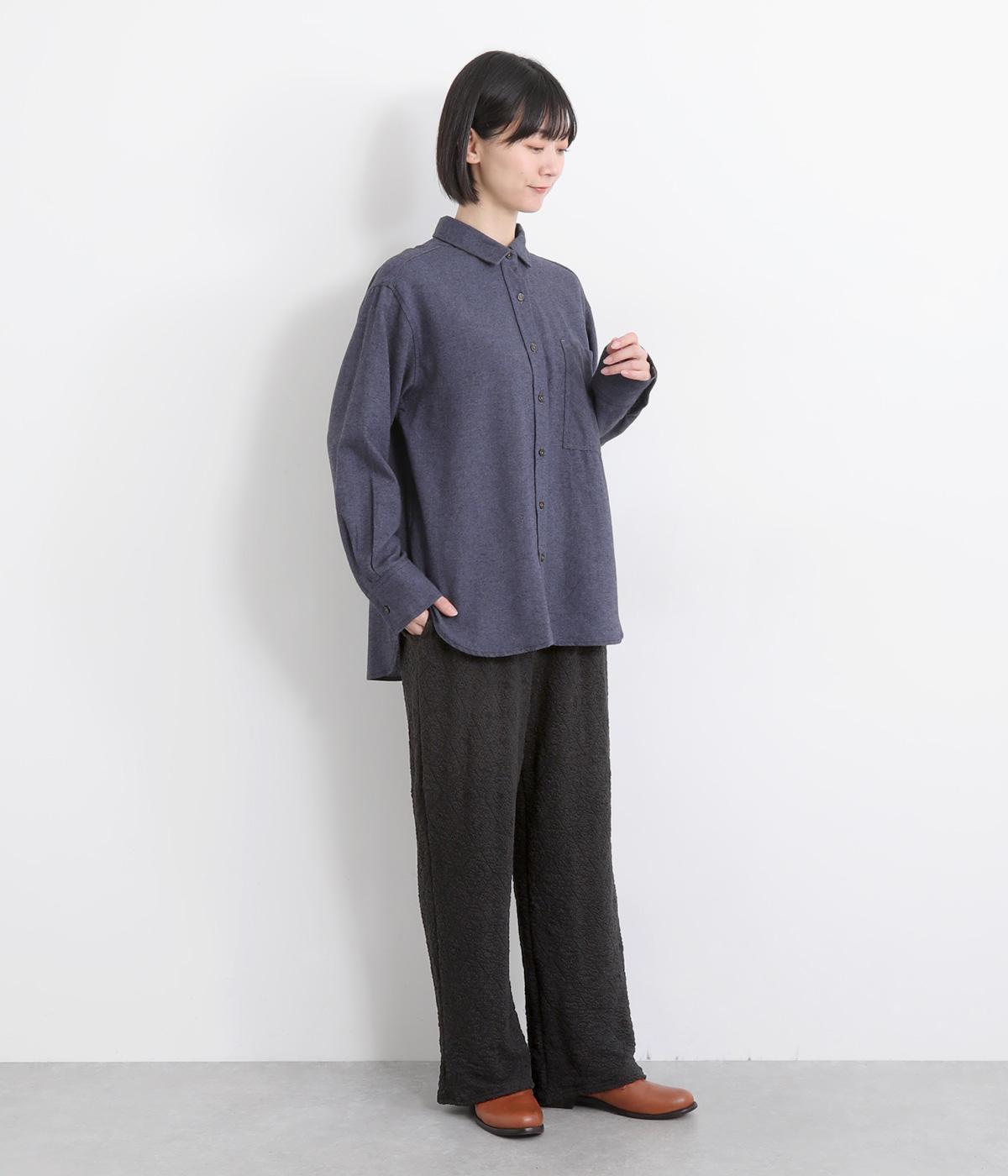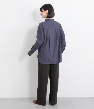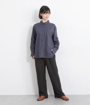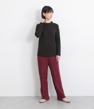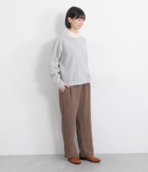 すとんと落ち感の出た、きれいなシルエットのイージーパンツです。腰まわりにはゆとりを持たせ、裾に向かってやや細身に仕立てることで足元はすっきりと。ウエストは着脱が楽なオールゴム仕様で、外紐での調節も可能です。