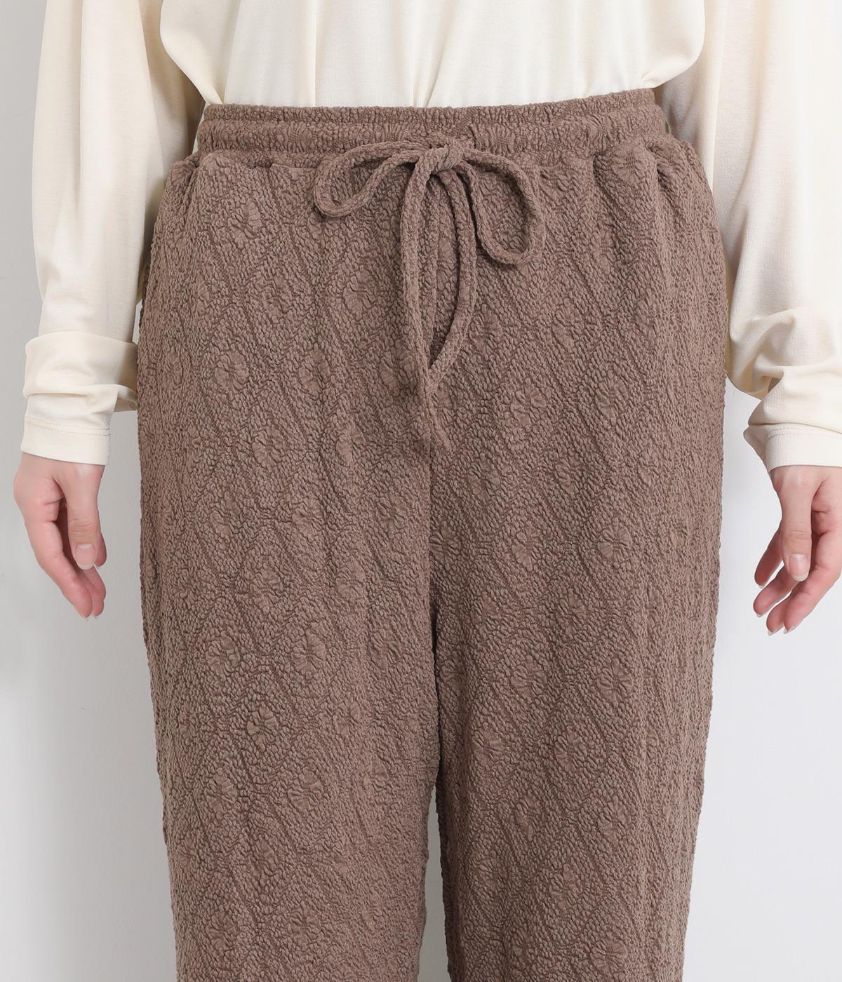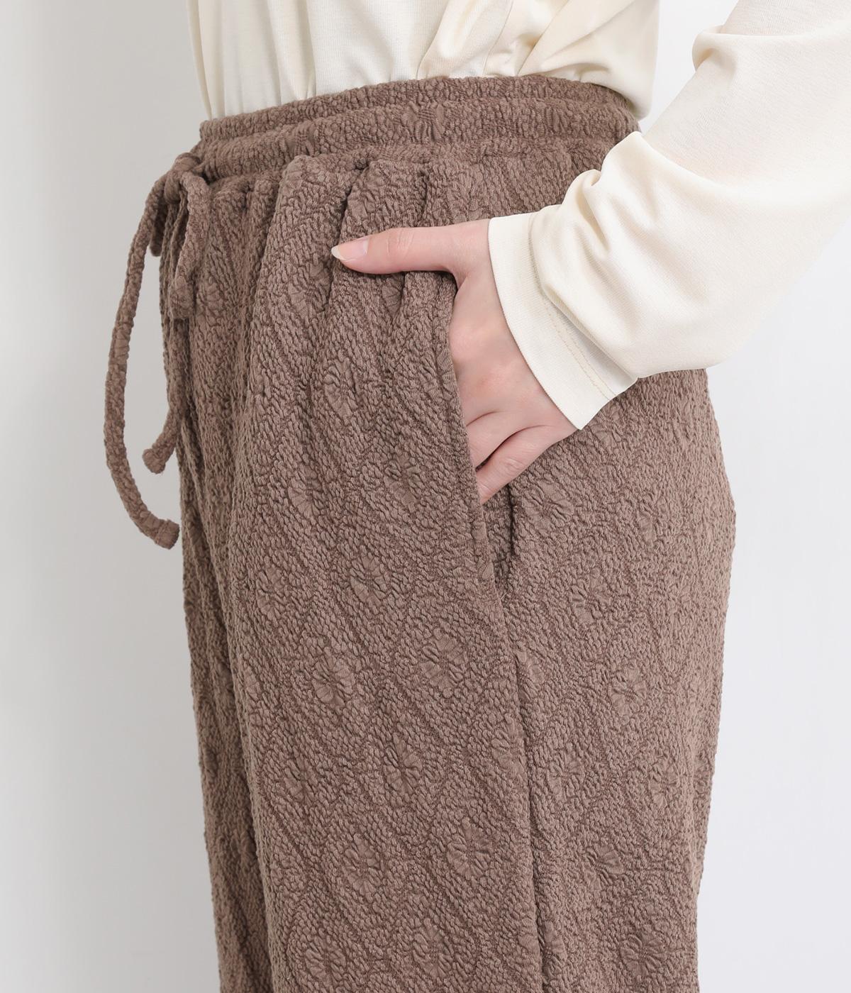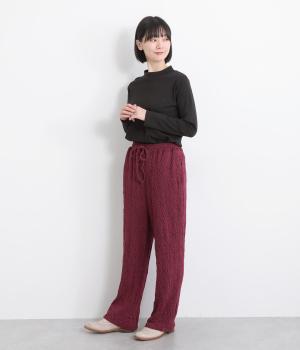 表面変化のある、立体的なふくれジャカード素材を使用しています。やわらかで伸びがよく、ストレスフリーなはき心地を実感できます。
