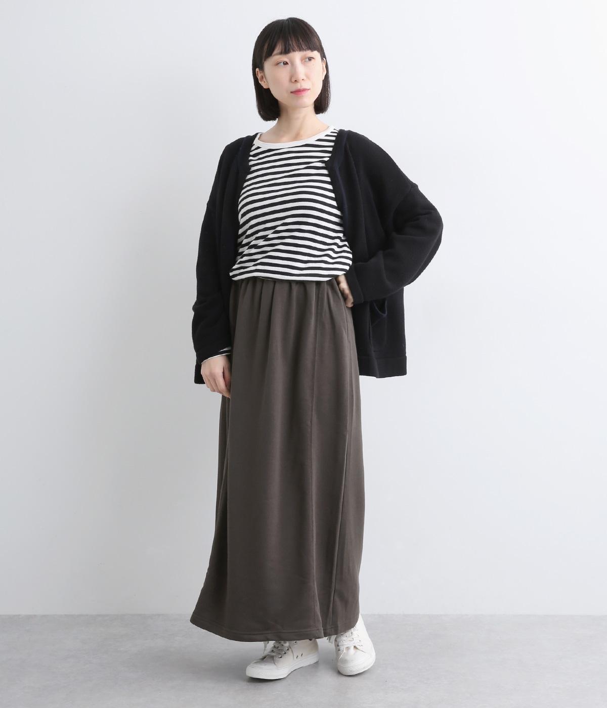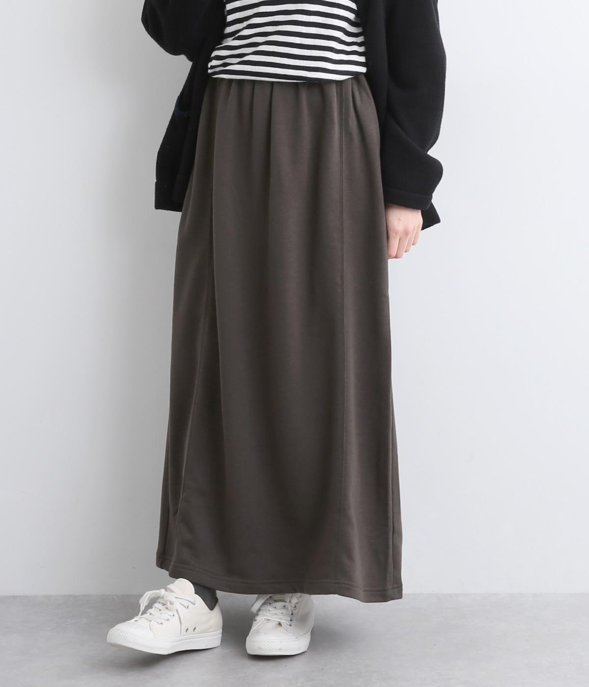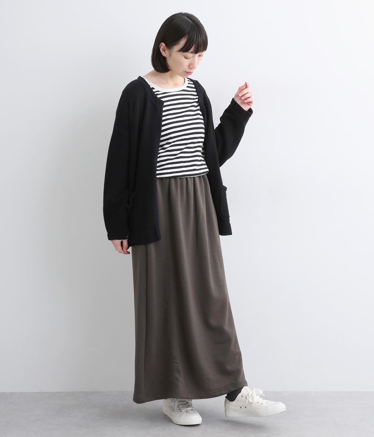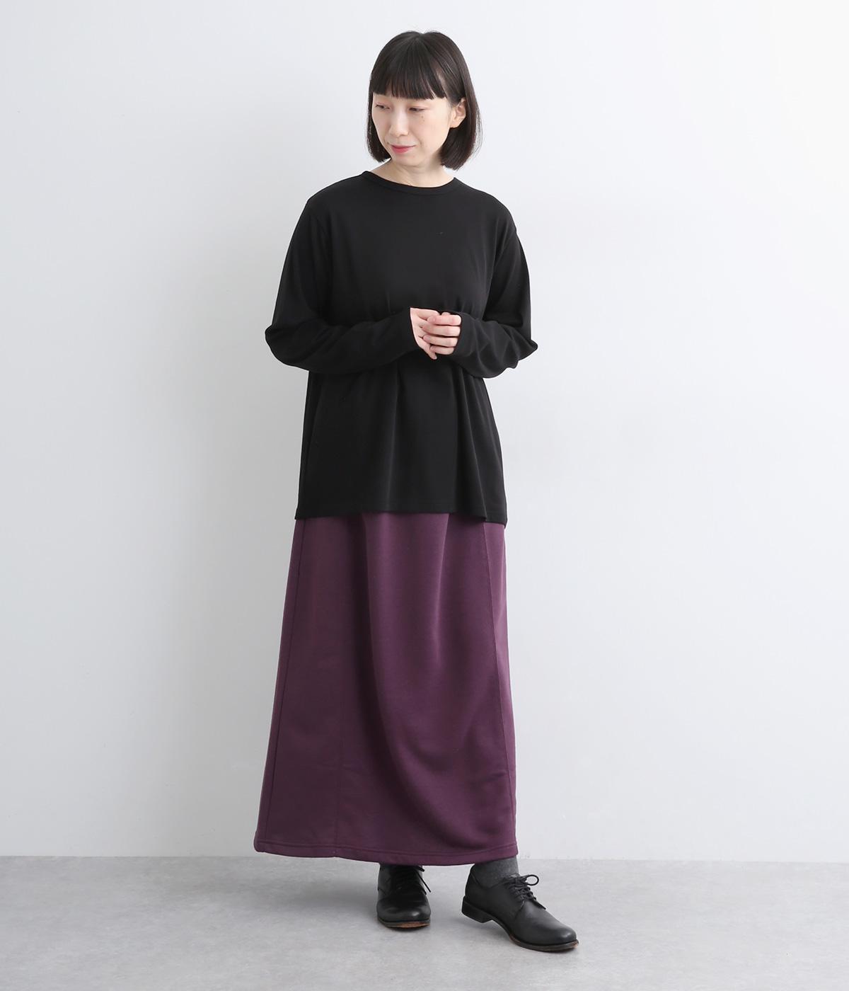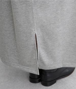 肌ざわりがよく、デイリー使いに最適な裏毛素材で仕立てました。適度に伸縮性があるので、ロング丈でも動きを妨げにくいのが嬉しいポイントです。