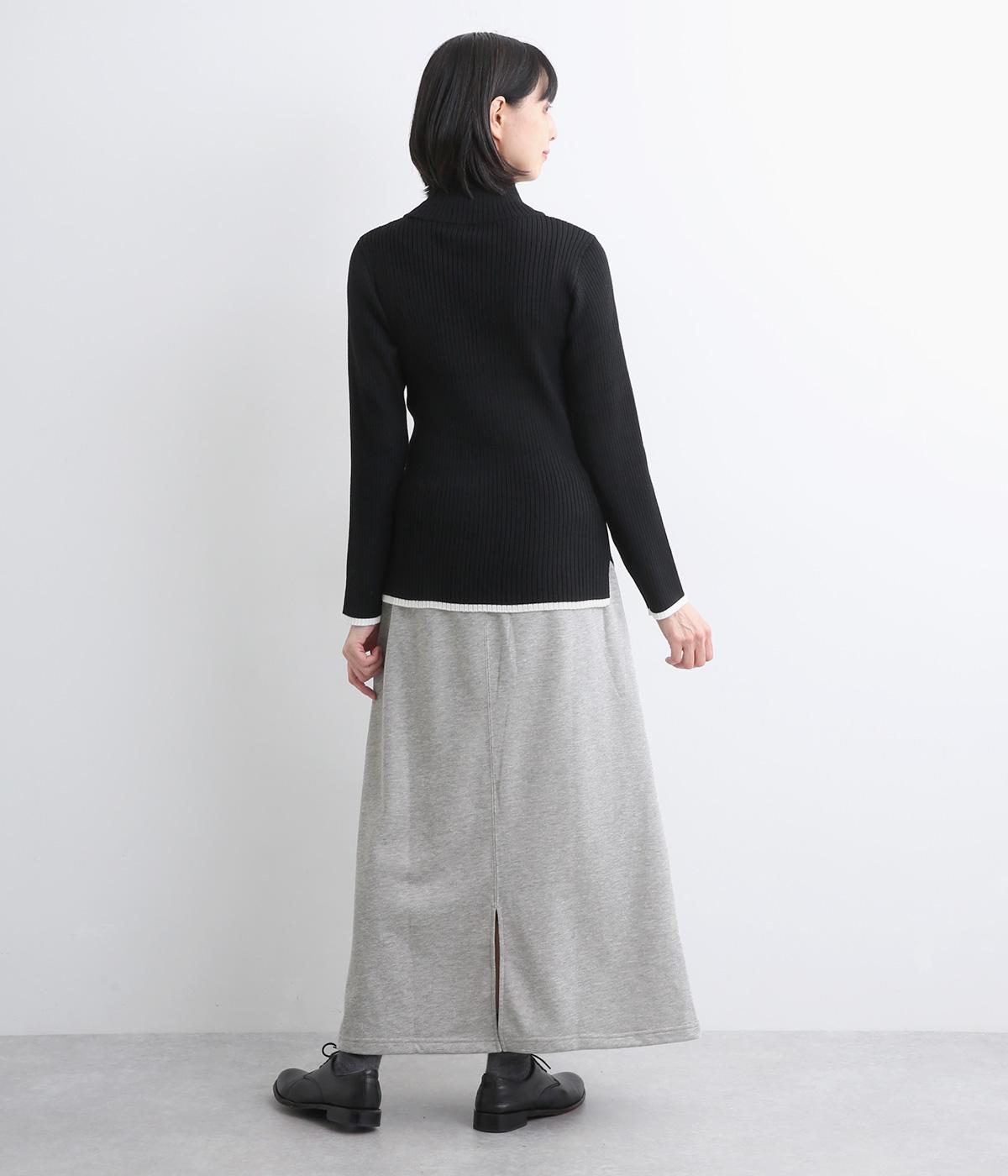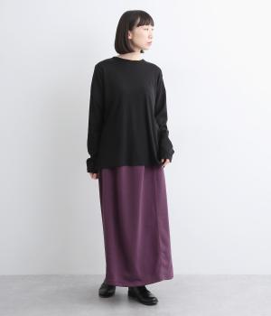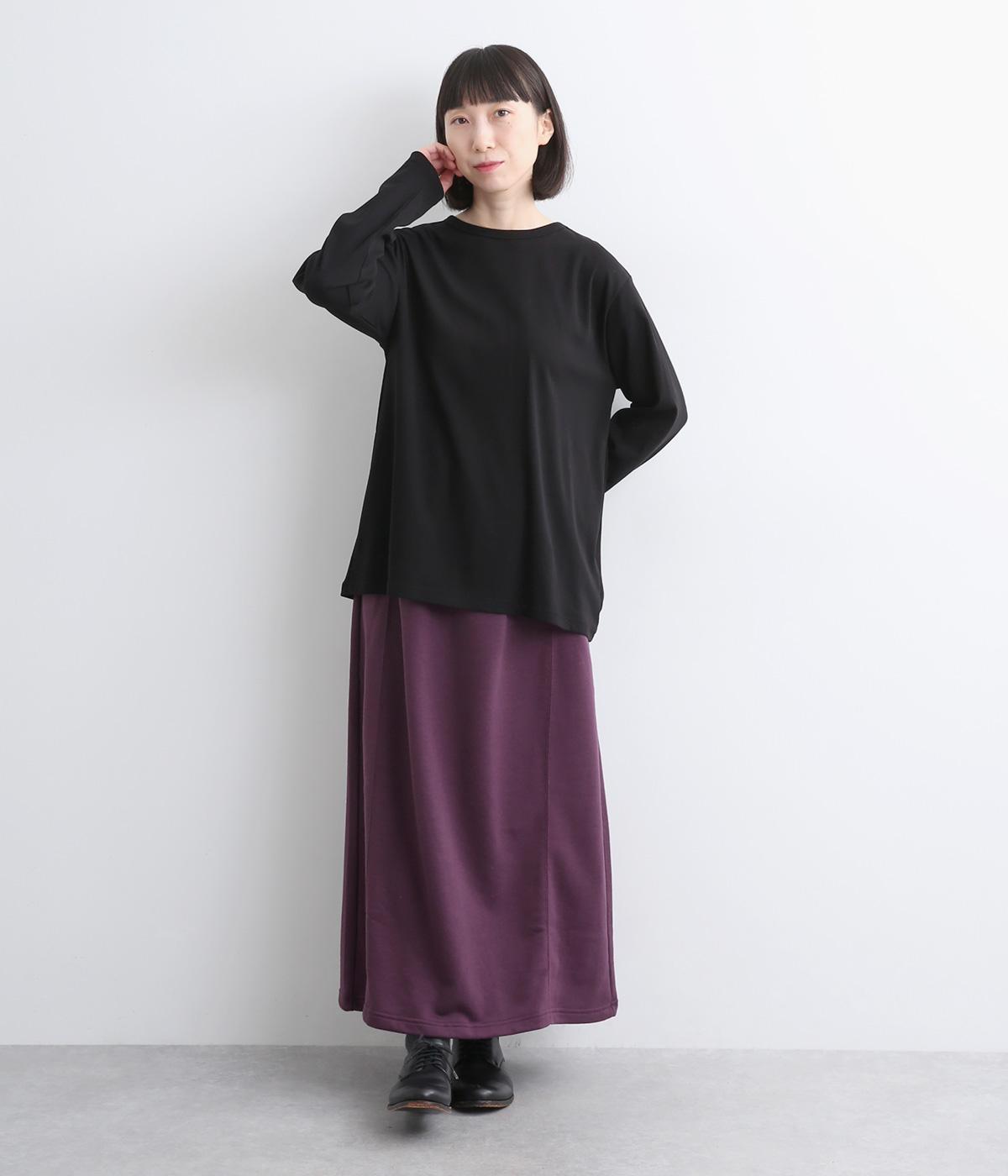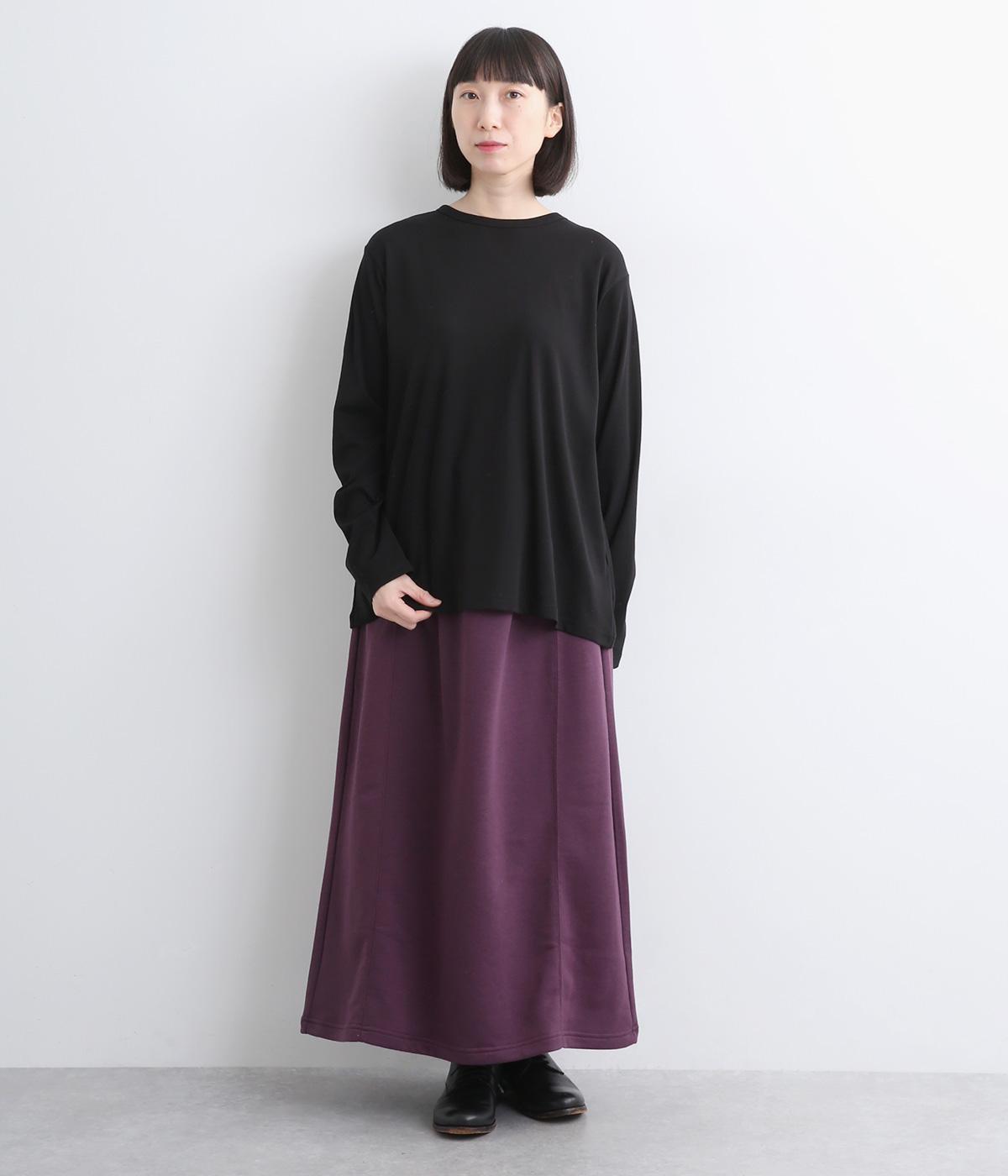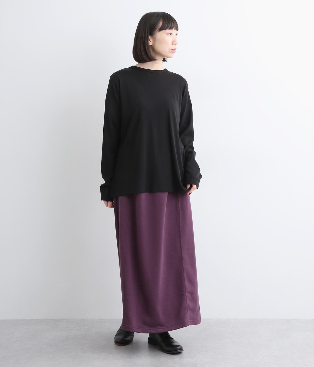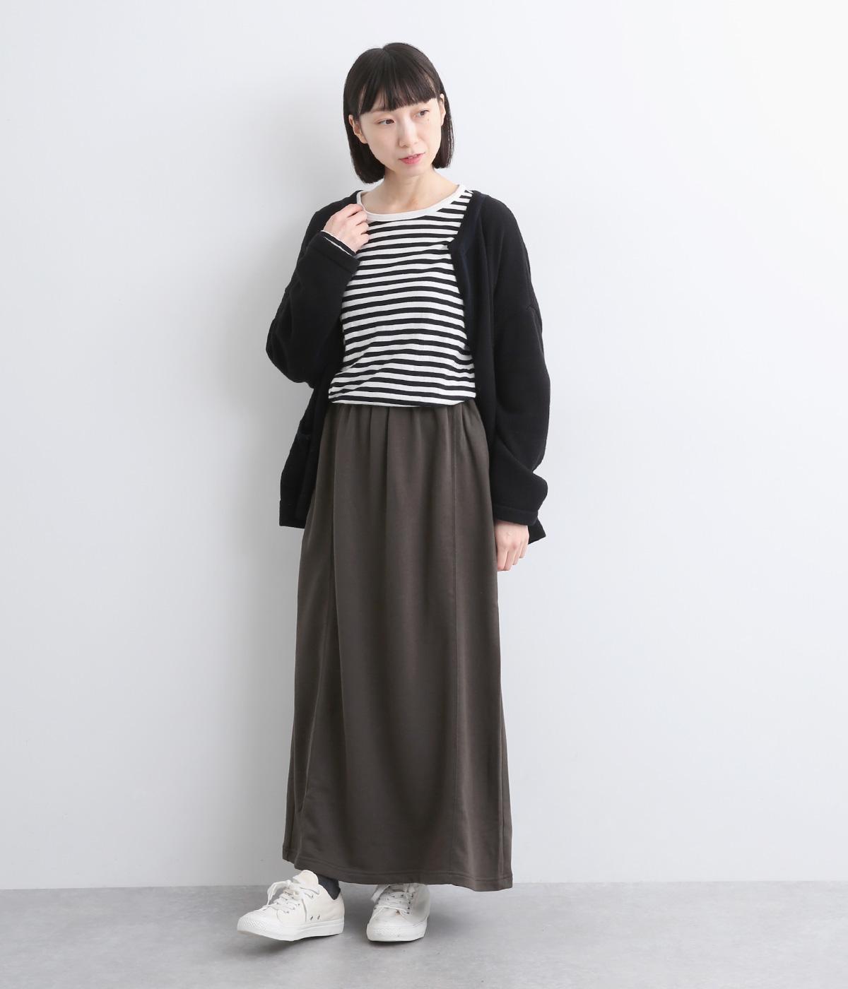 肌ざわりがよく、デイリー使いに最適な裏毛素材で仕立てました。適度に伸縮性があるので、ロング丈でも動きを妨げにくいのが嬉しいポイントです。