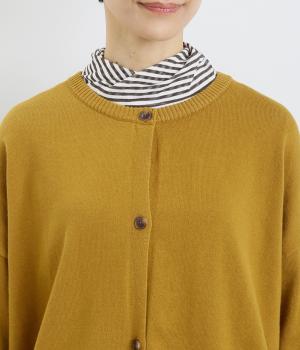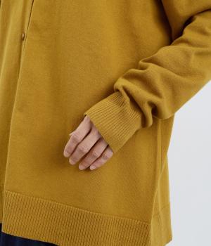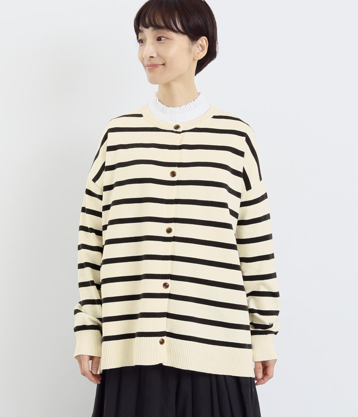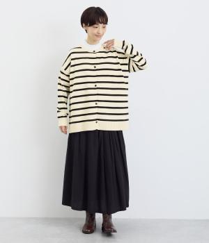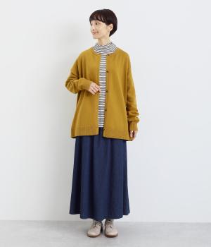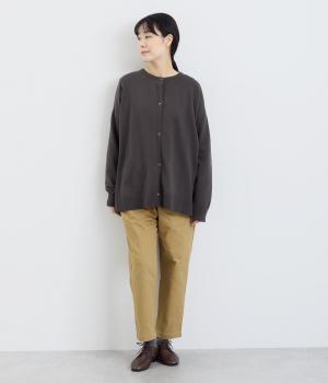 シンプルなシルエットと、ほどよいオーバーサイズのカーディガンが大人カジュアルを演出します。やさしい印象で着まわししやすく、さまざまなスタイルにも合わせやすい定番アイテムです。ドロップショルダーで動きやすさも抜群。