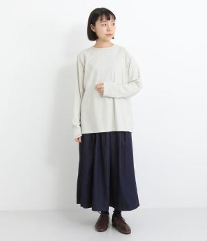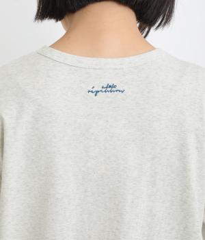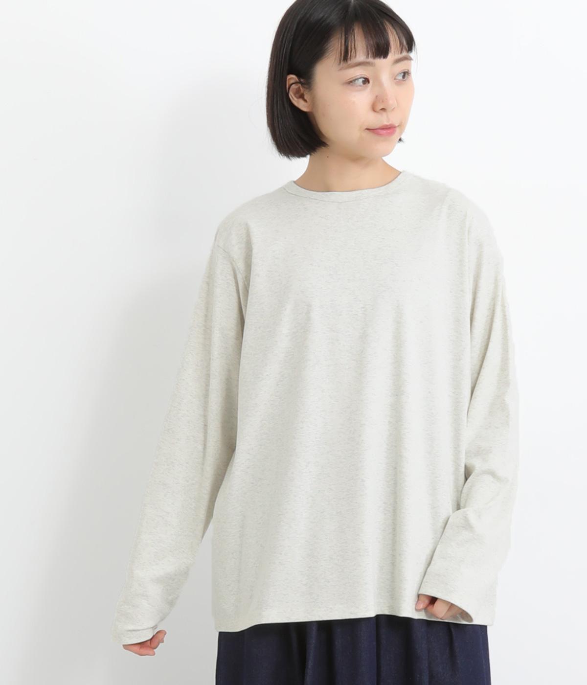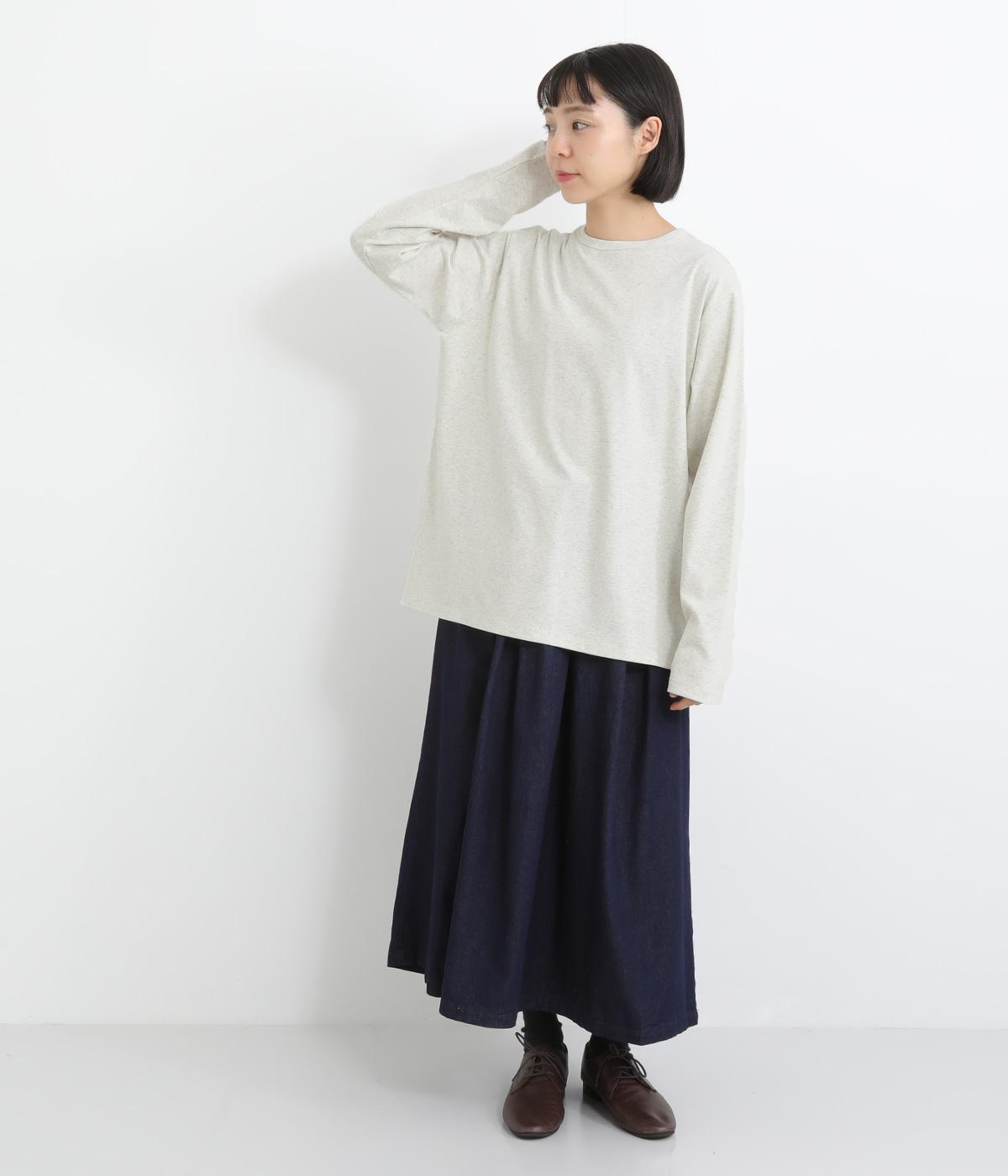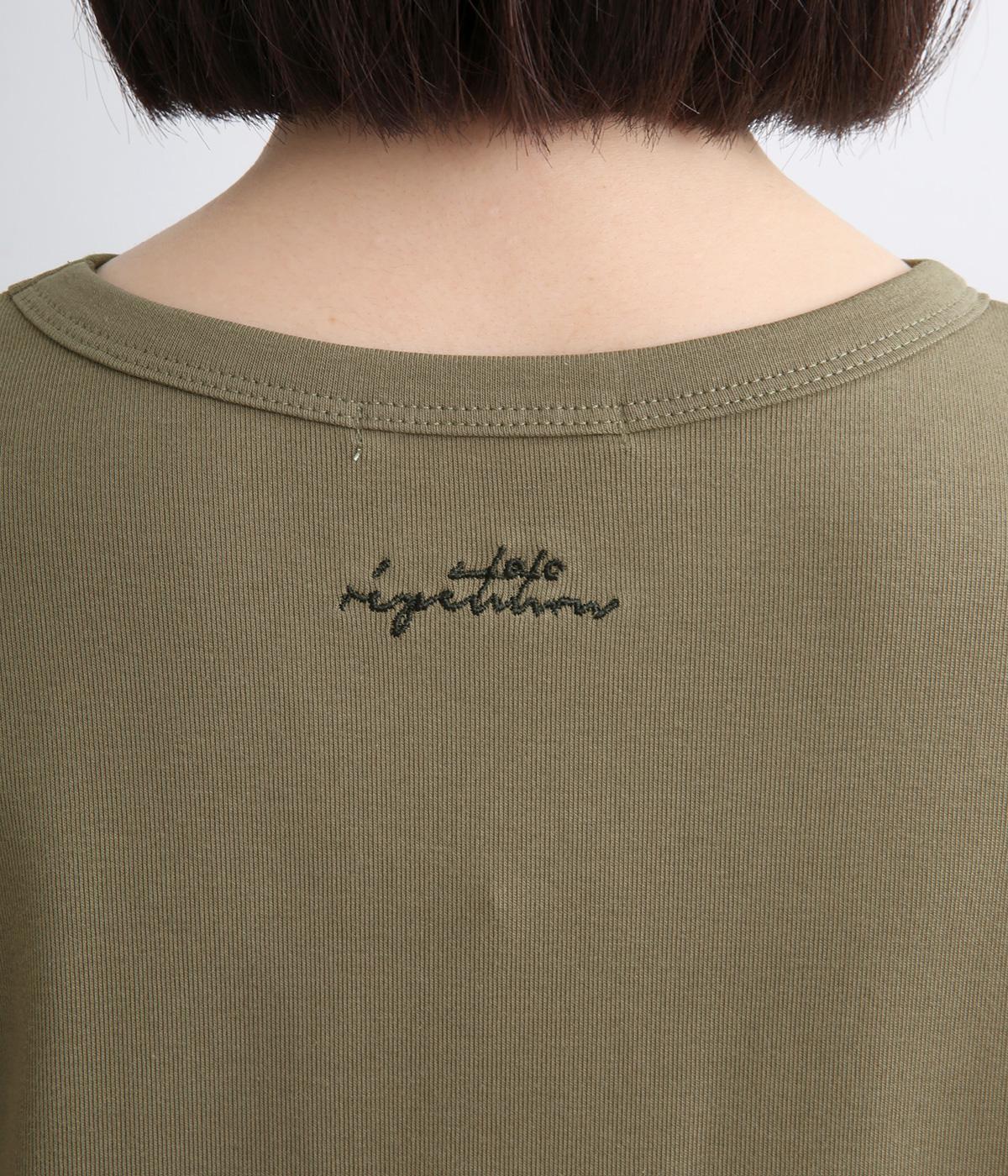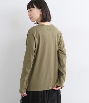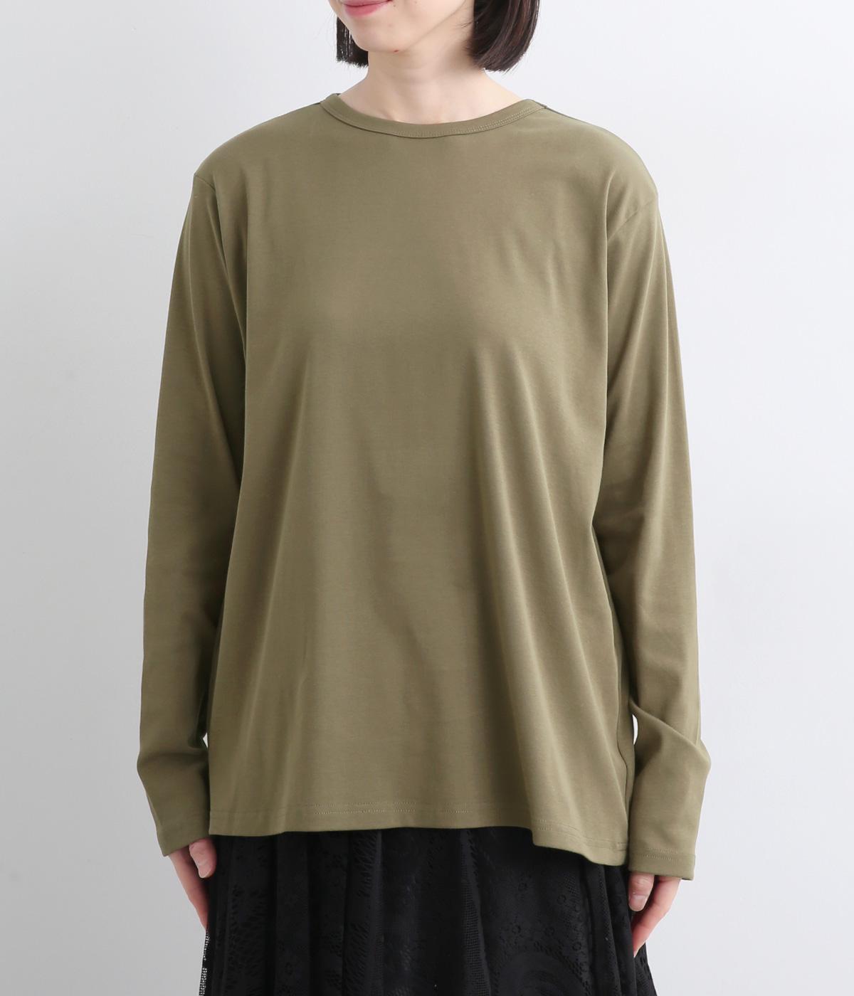 バックネックにあしらった配色のロゴ刺しゅうが、シンプルな中にさりげなくアクセントを加えるロングTシャツです。大きすぎないサイズは一枚着としても、ニットやワンピースのインナーとしても活躍します。