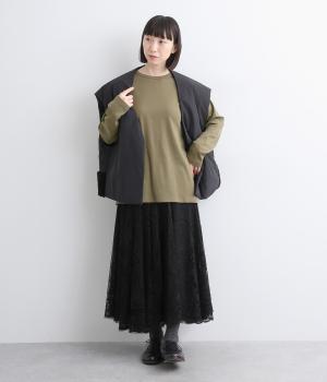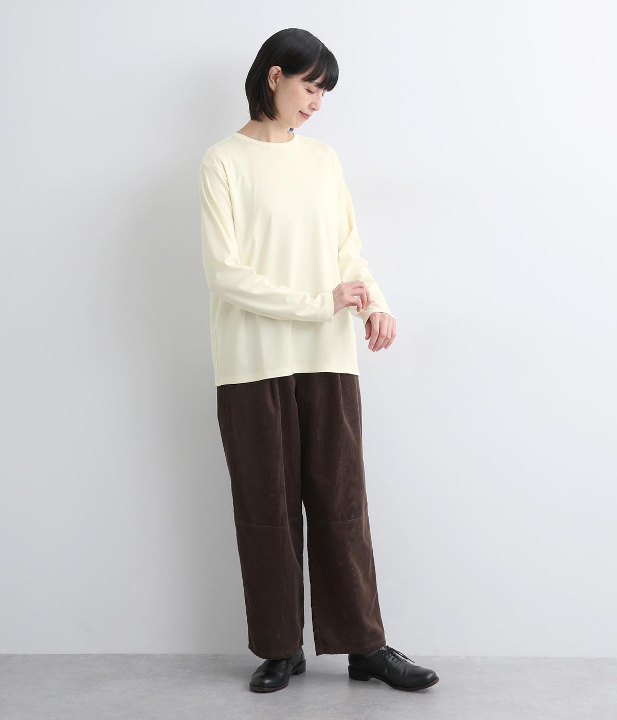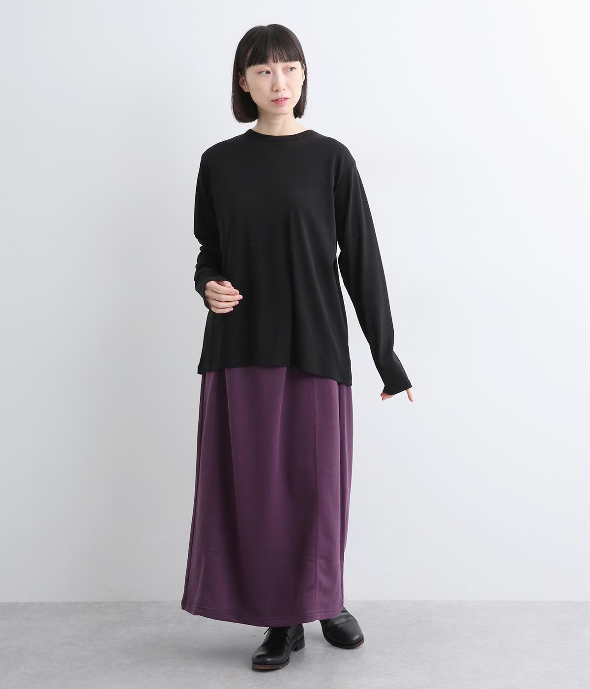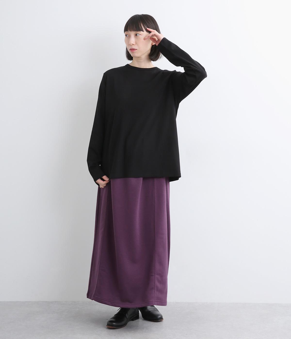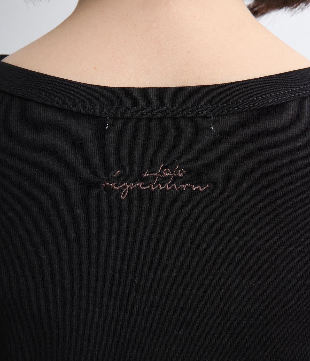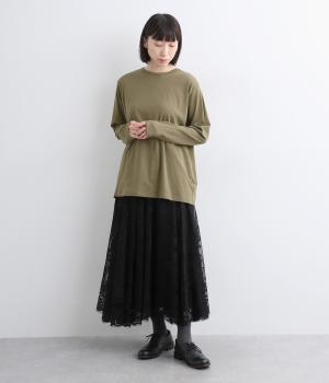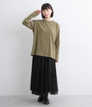 バックネックにあしらった配色のロゴ刺しゅうが、シンプルな中にさりげなくアクセントを加えるロングTシャツです。大きすぎないサイズは一枚着としても、ニットやワンピースのインナーとしても活躍します。