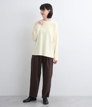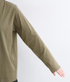 さらりとしたしなやかな肌ざわりをもつコットン混紡素材を使用しました。伸びがよく、心地よいフィットを感じることができる素材です。
