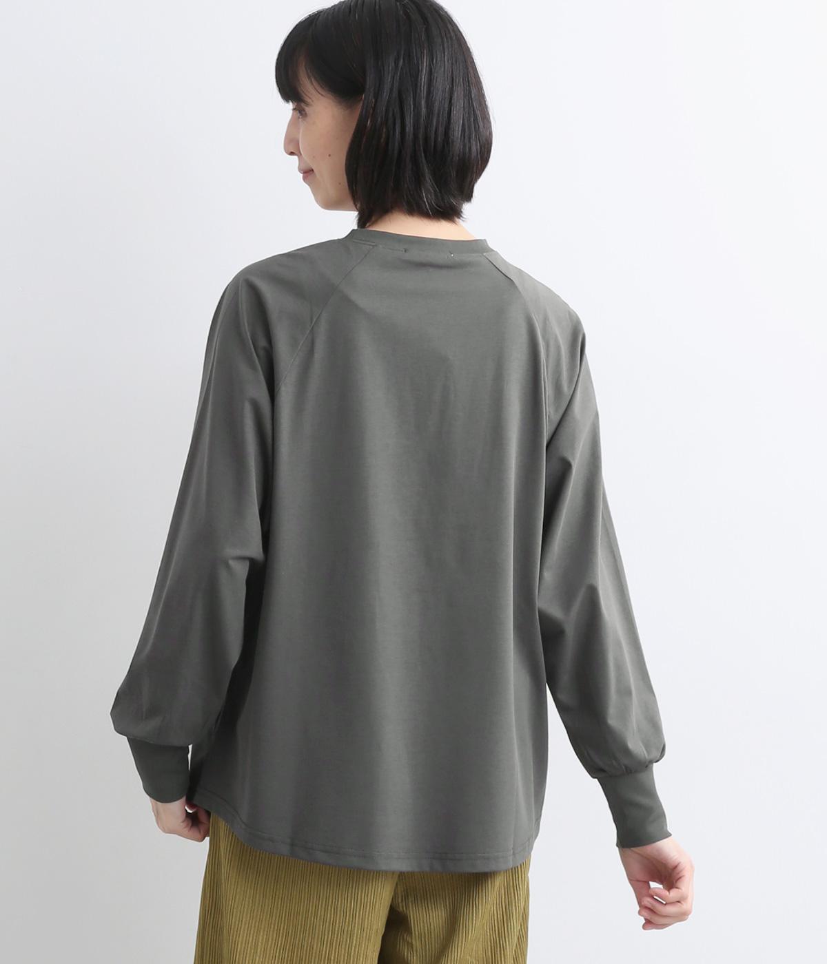 フロントのロゴプリントがアクセントを添えるプルオーバー。カジュアルな中にも、ギャザーをきかせたふんわり袖がさりげなくかわいさをプラスしています。窮屈さを感じにくいラグランスリーブも着やすいポイントに。