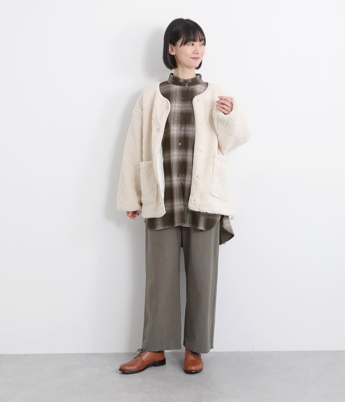 肌にやさしく、軽やかな着心地が魅力のブランドオリジナルのコットンを使用。表面にふんわりと起毛をほどこした、あたたかみを感じられる素材です。