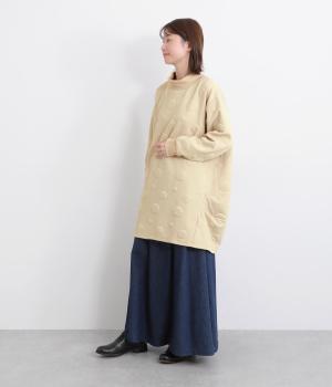 ゆったりとしたサイジングに加え、両脇にはタックをほどこして裾にかけて自然に広がるコクーンシルエットを演出したチュニックです。サイドのドレープ感が動きを生み、やわらかな印象を与えてくれます。
