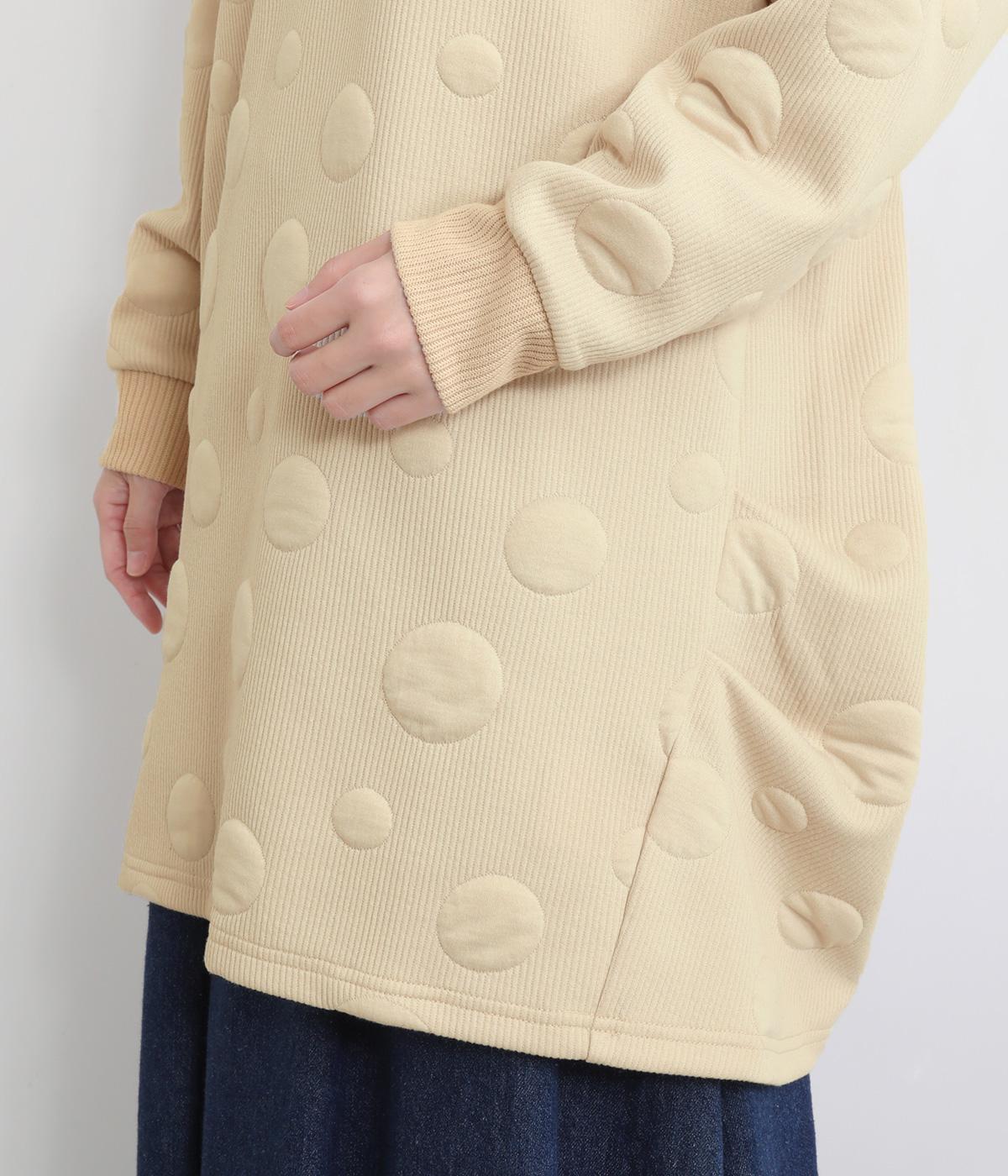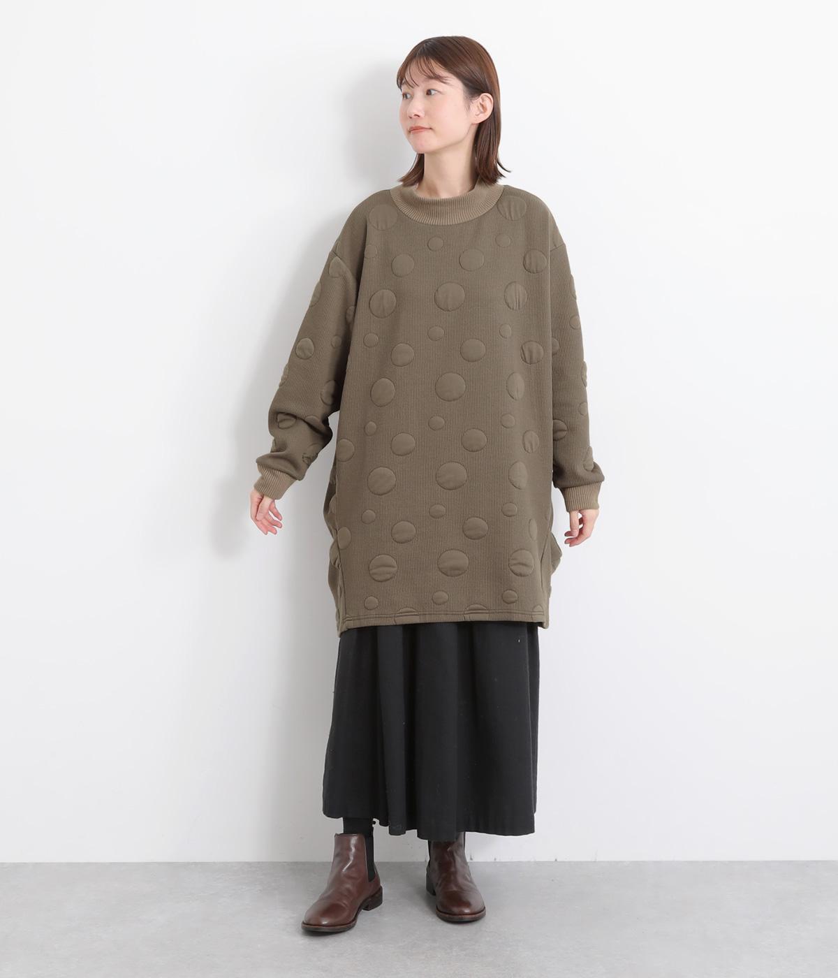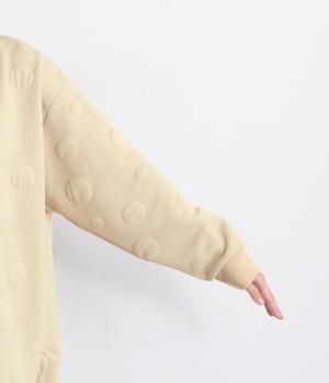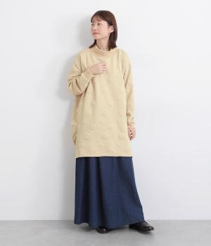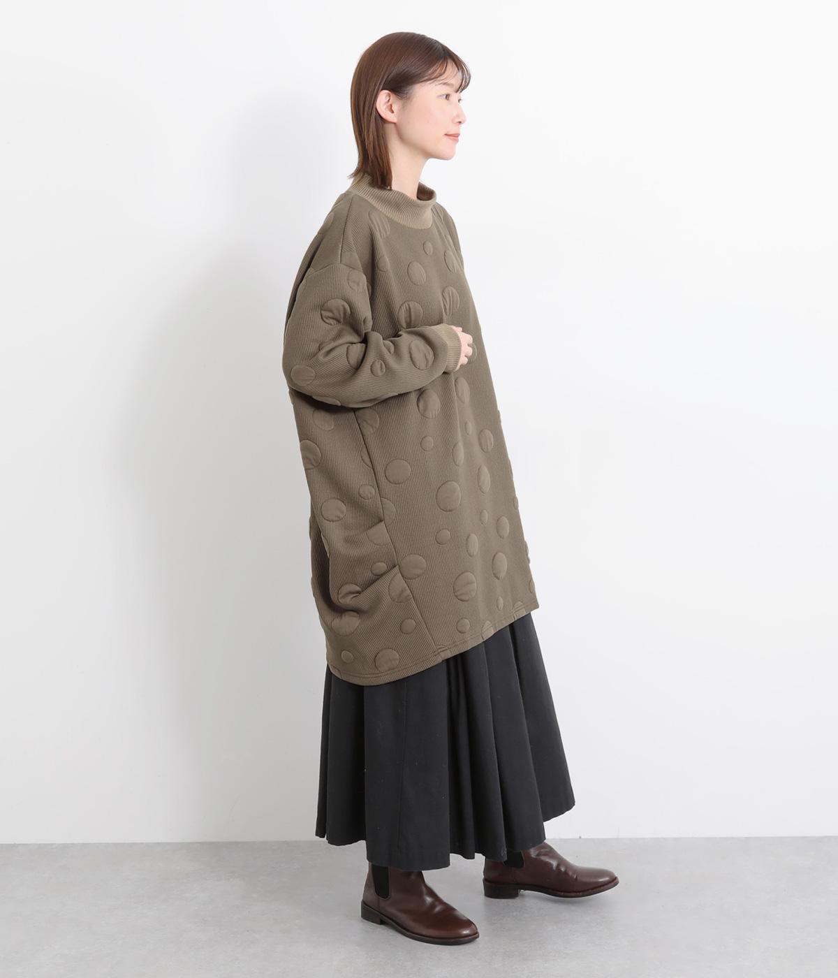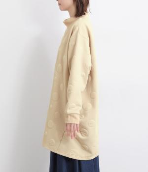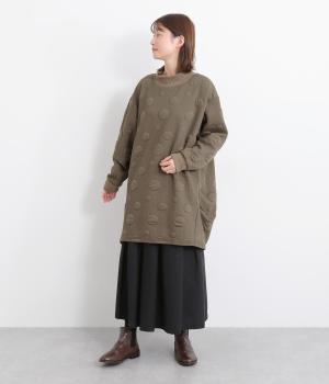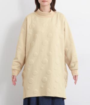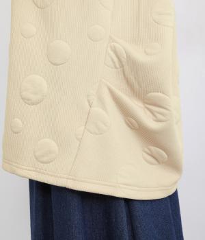 ランダムに浮かぶふくらみドットが印象的なジャカードニットソー素材です。ふんわりとしたやわらかさと、しっかりとした厚みを両立しました。