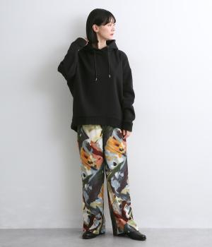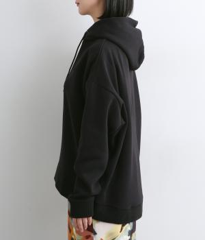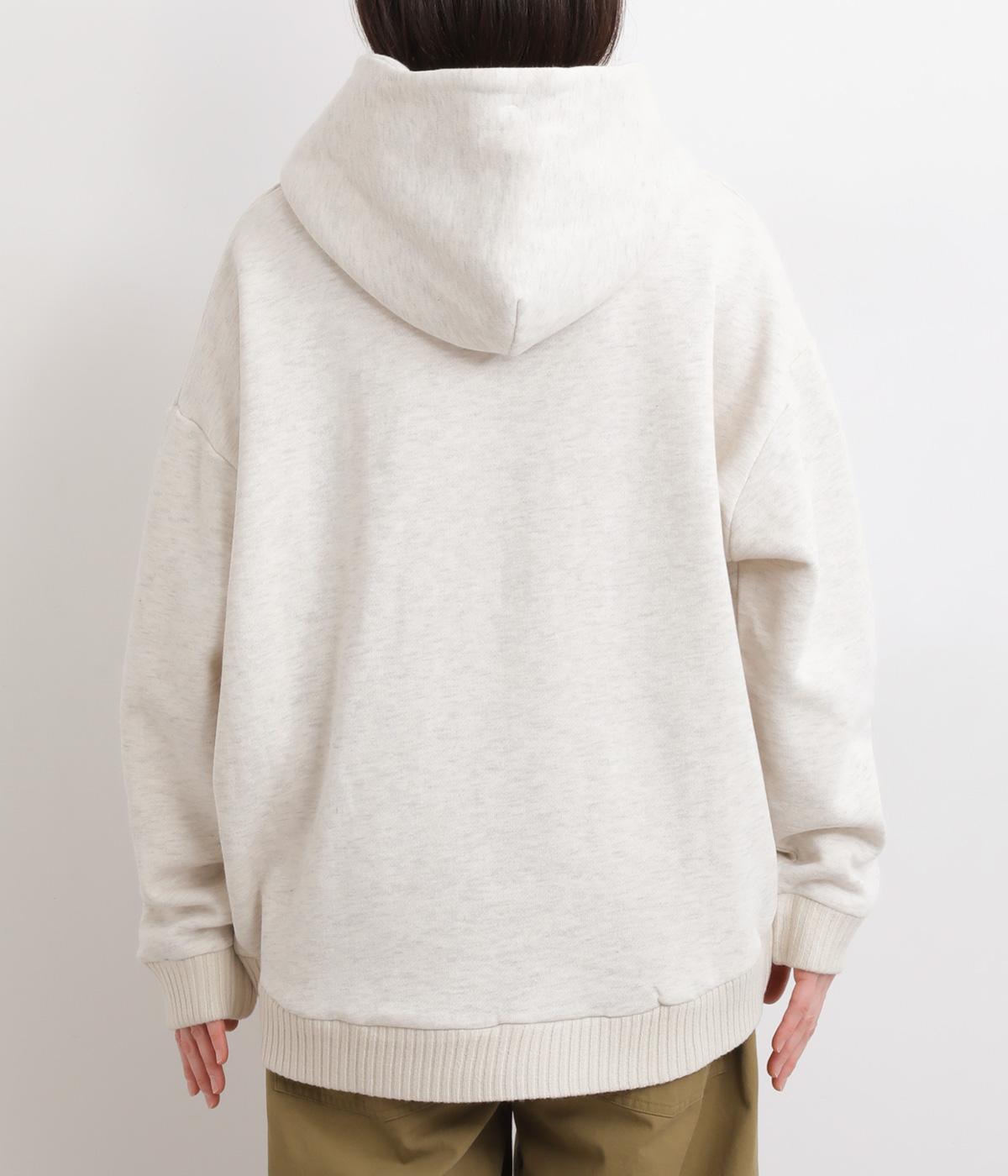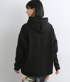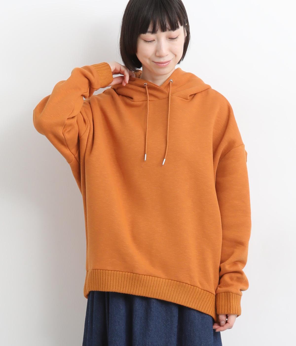 くたっとやわらかなコットン混素材に、ほどよいハリを添えた心地よい生地です。肌あたりはなめらかで、裏起毛ならではのふんわりとしたぬくもりが広がります。軽やかなのにしっかりと頼れる着心地です。