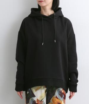 シンプルながらも、袖口と裾に施したニットリブがアクセントになる、立体的な一枚です。ドロップショルダーのやわらかなラインと、ゆるやかなボックスシルエットがリラックス感をプラス。ヒップが隠れる丈感で、毎日のコーディネートに取り入れやすいデザインです。