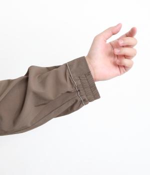 やわらかく肌なじみのよい身頃に、シャリ感のある袖と裾を組み合わせました。袖と裾はほんのり透ける光沢素材で、装いに上品なニュアンスをプラスします。