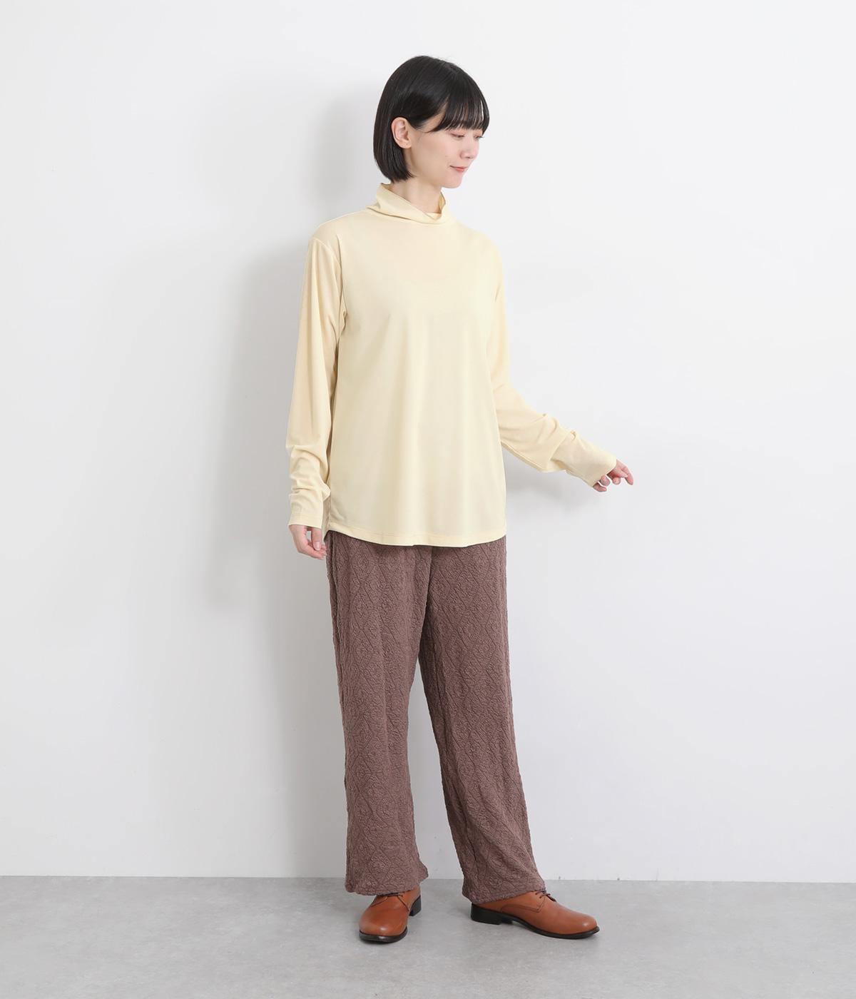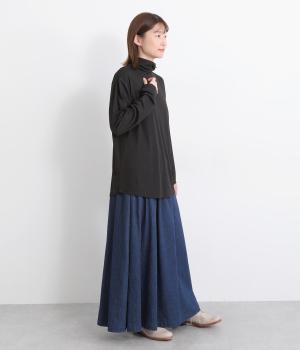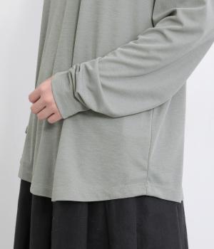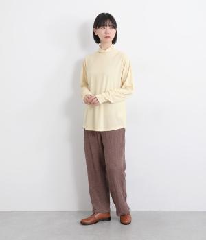 肌に優しくなじむ、やわらかなスラブ糸を使用しました。シアーな素材感で抜け感をプラスしています。適度なストレッチ性があるので、ストレスフリーな着心地です。