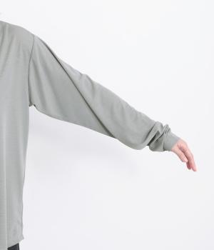 ゆるっとしたスタンドカラーと、バックネックの刺しゅうがワンポイントになるプルオーバーです。体のラインを拾いすぎないすっきりとしたシルエットは、多彩なレイヤードスタイルに重宝します。