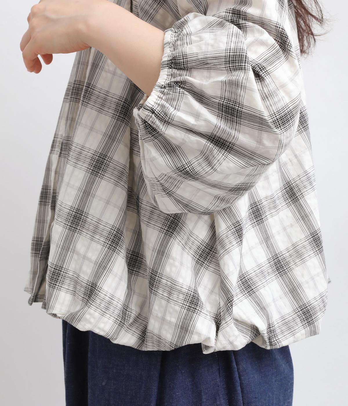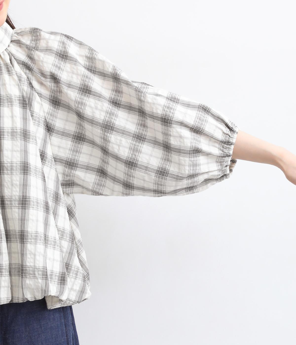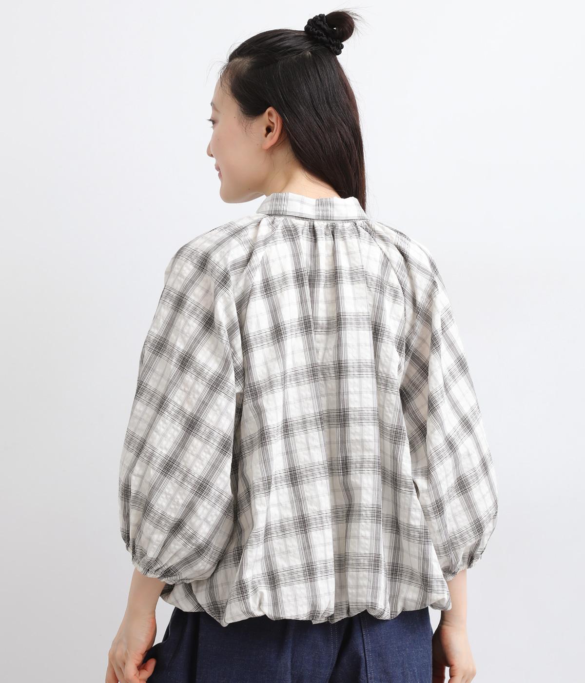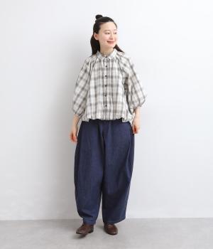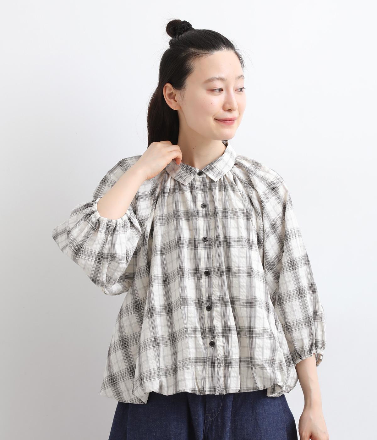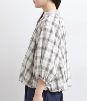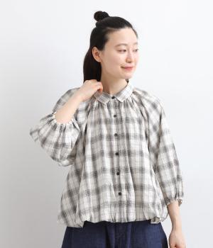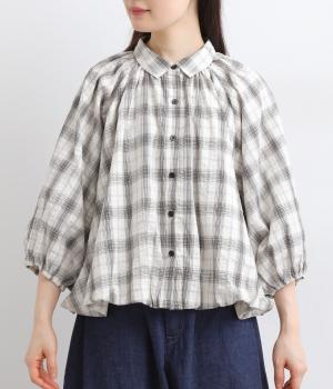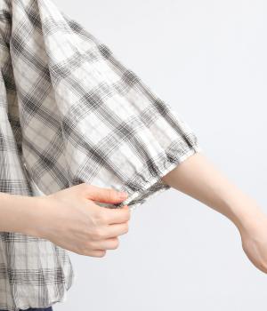 コットン混 平織チェックブラウス