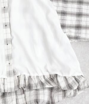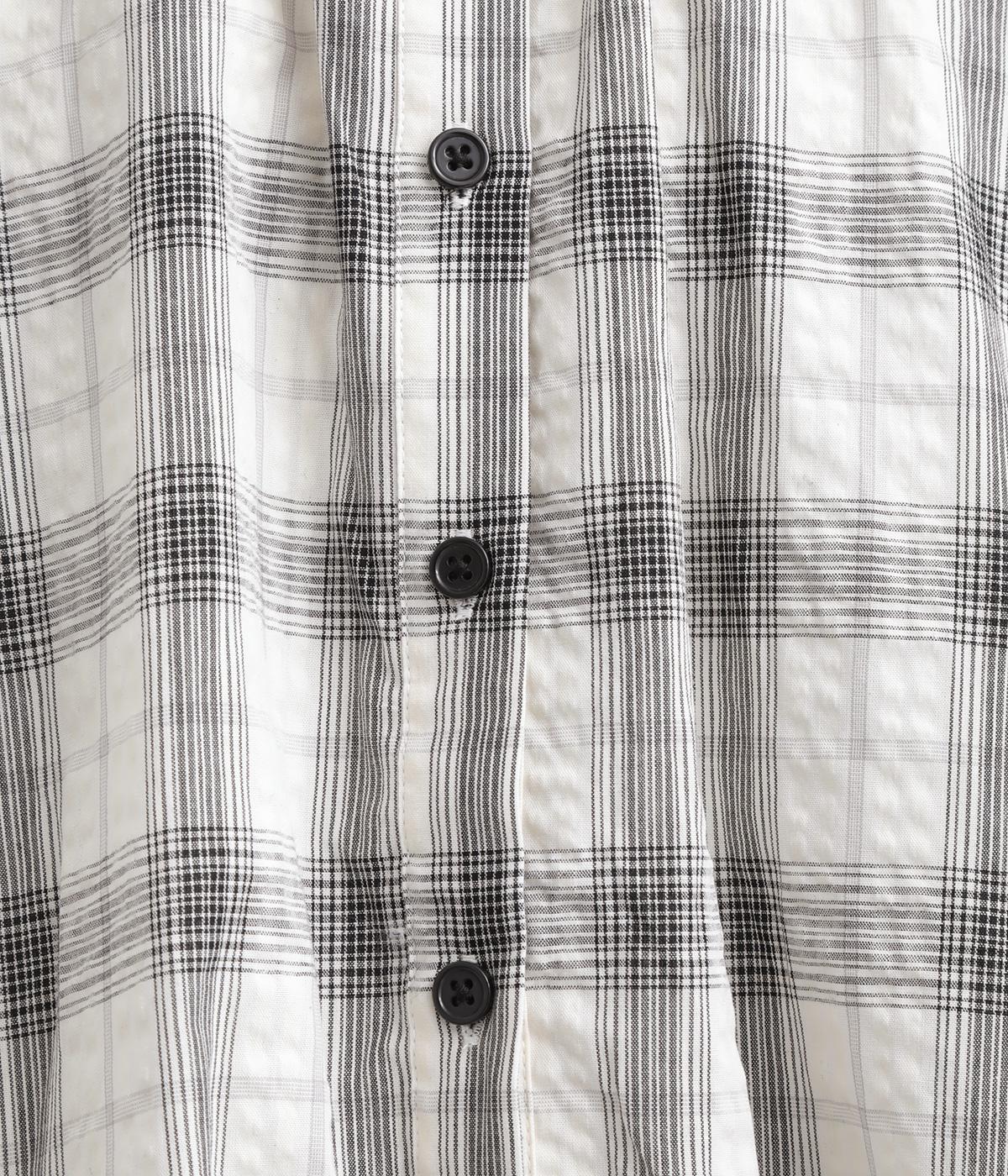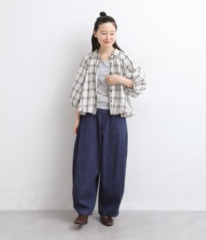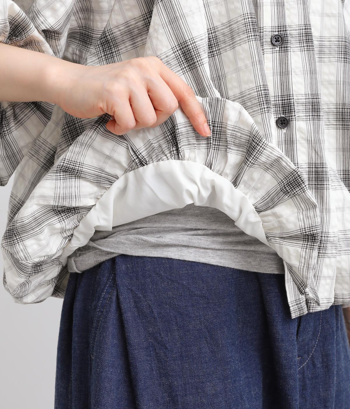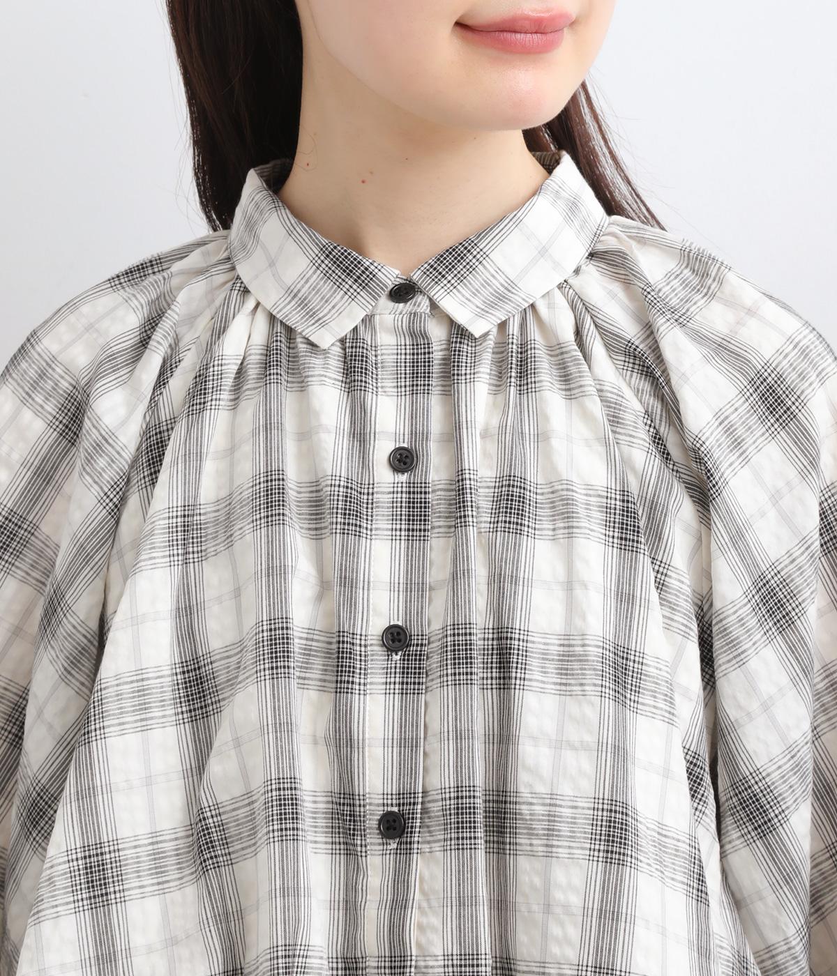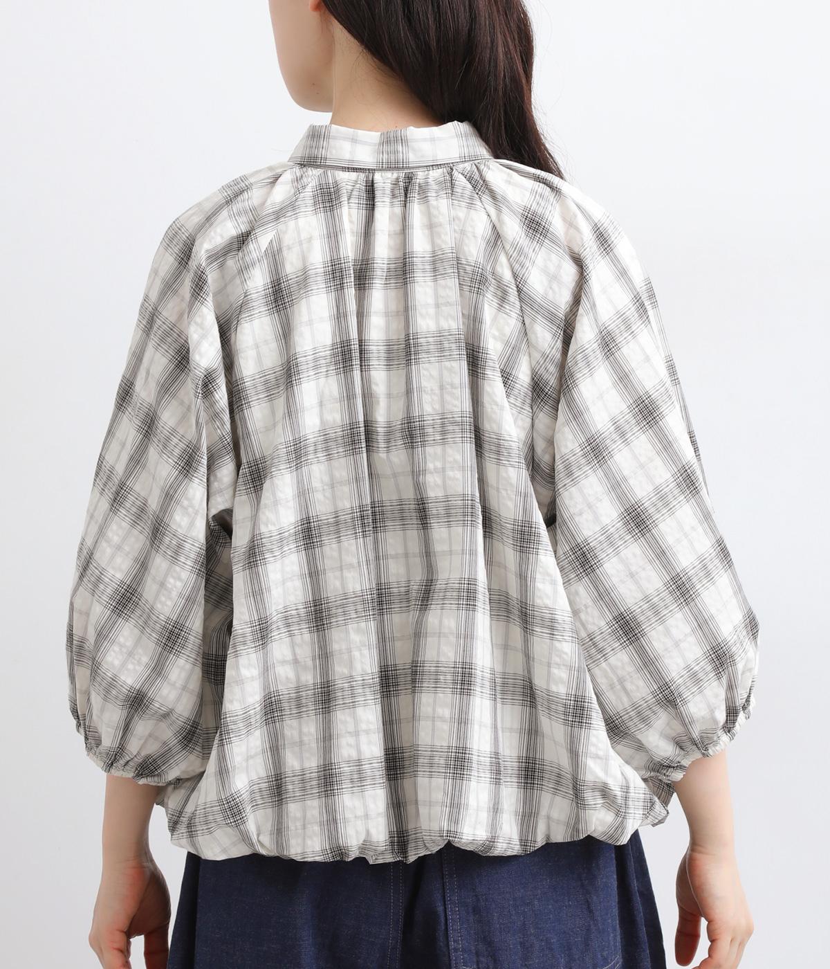 コットン混 平織チェックブラウス