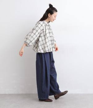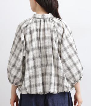 コットンリネンギンガム横リボンブラウス
