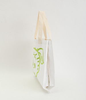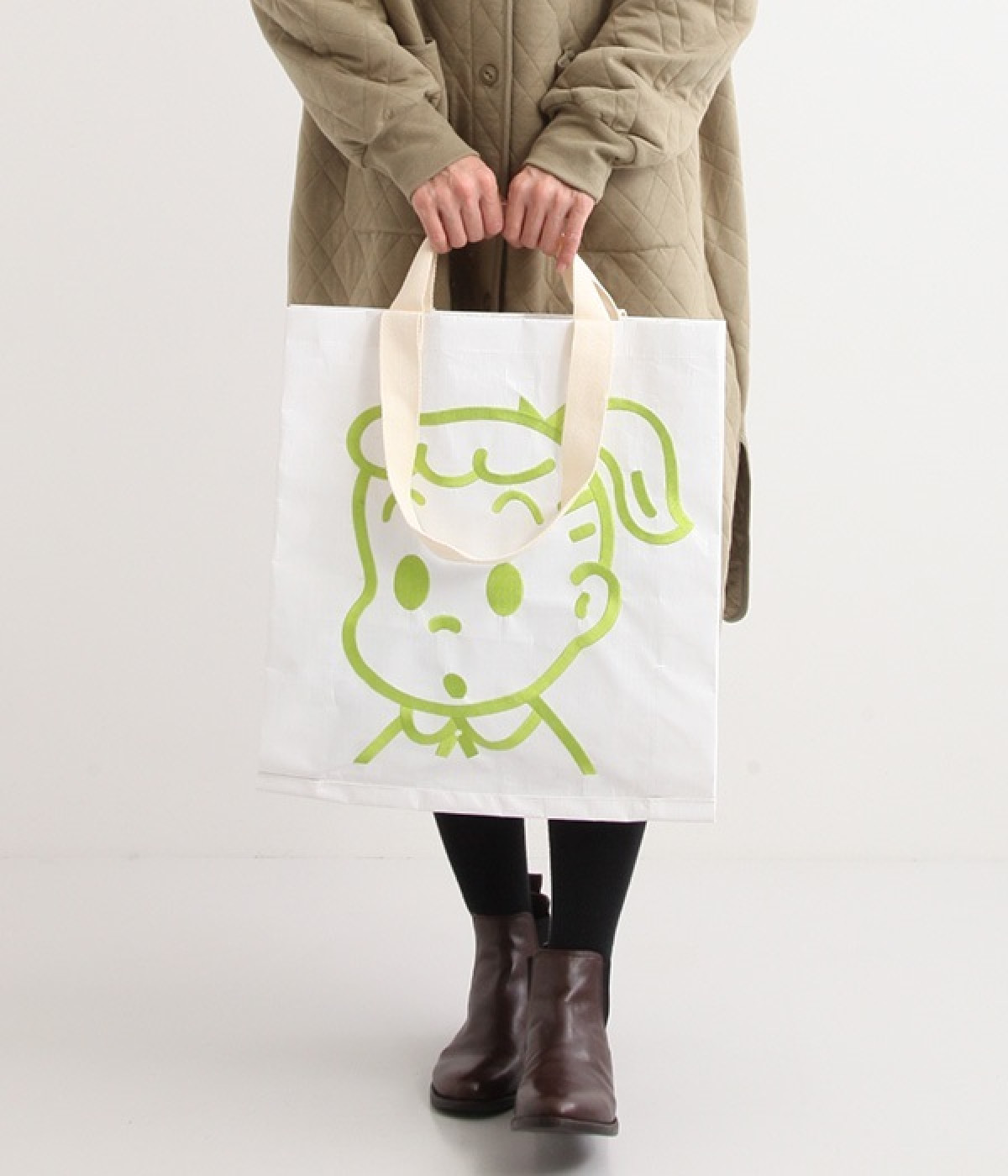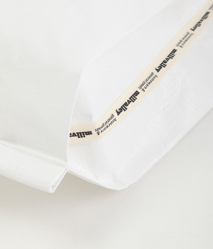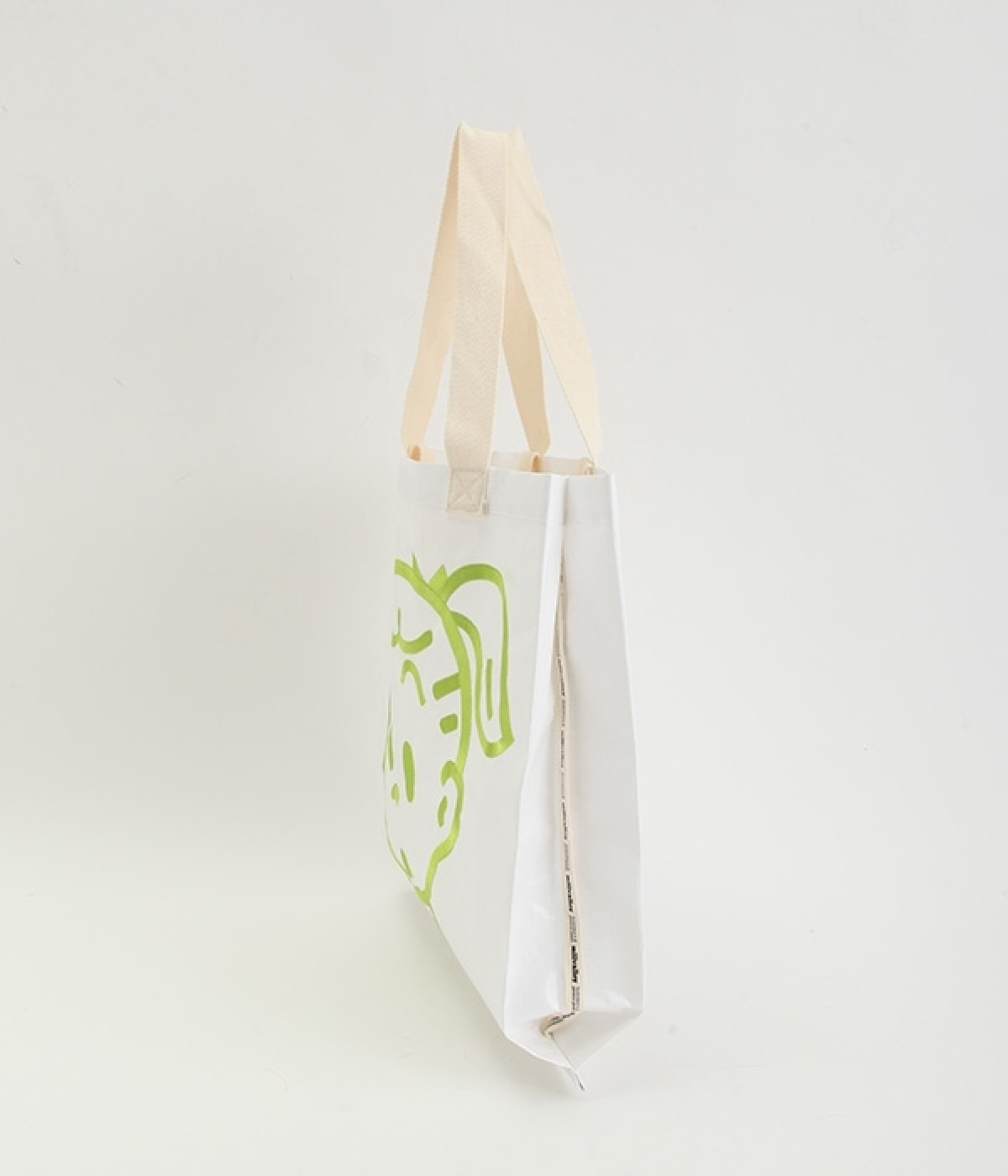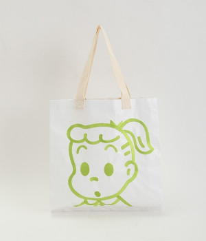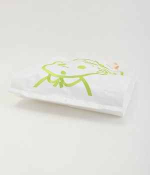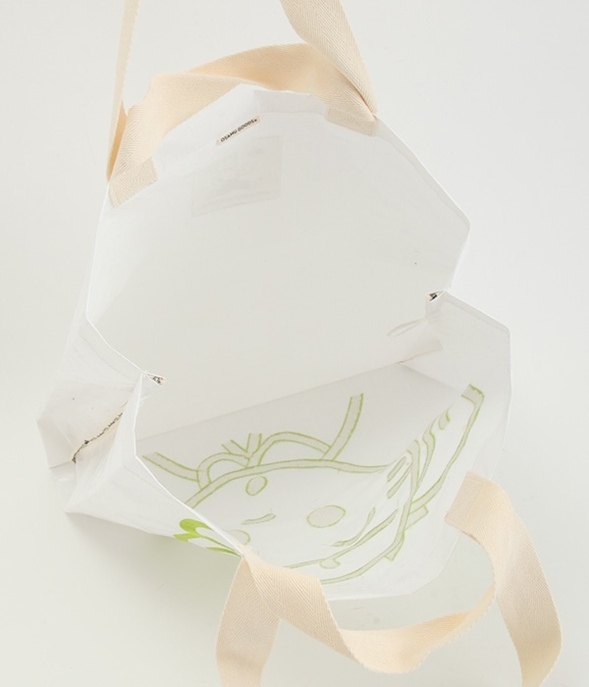 レジャーシートのような丈夫なポリエチレン素材をベースにしたOSAMUGOODSのバッグです。大きく刺しゅうされたワントーンカラーのイラストがポイント。大容量サイズのトートバッグなので、ジムバッグにしたり、マルシェバッグにしたりと、大活躍。持ち手は肩掛けにちょうど良い長さと手持ち用の短い持ち手をつけ、機能性にもこだわりました。