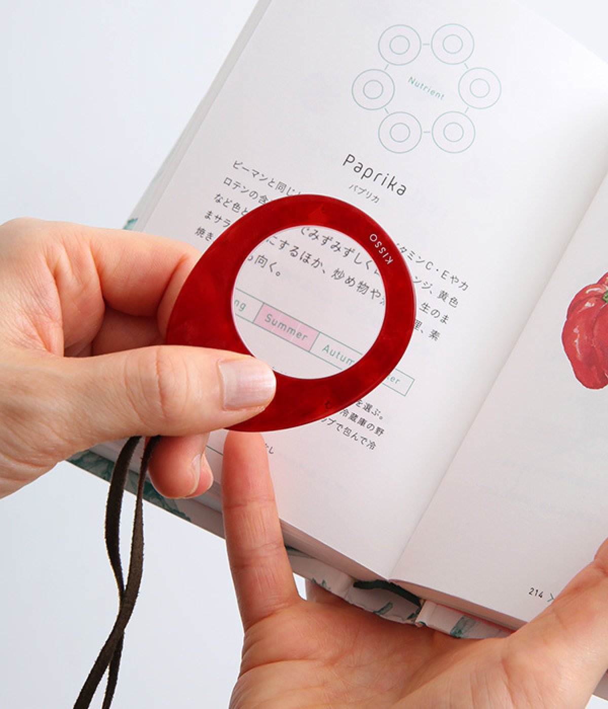 たまご型をモチーフにしたペンダント式のルーペです。丸みを帯びたぽってり感のある可愛らしいフォルムが魅力的。レンズと全体のサイズを大きめにした持ちやすく見やすい仕様で、利便性も兼ね備えています。スエード紐もお洒落感をアシスト。原料に使われている「セルロースアセテート」は、コットンを主原料とした天然素材由来の材料「バイオマスプラスチック」を使用して作られており、土に埋めると時間はかかりますが、分解され土に還ります。