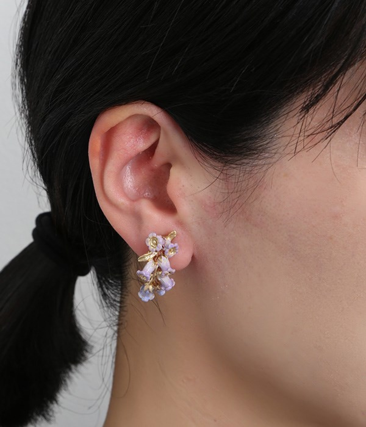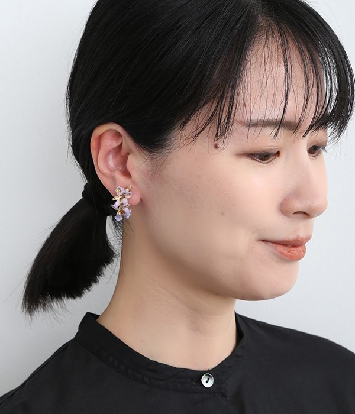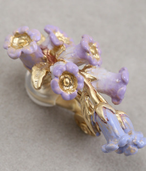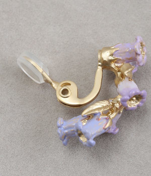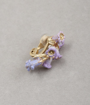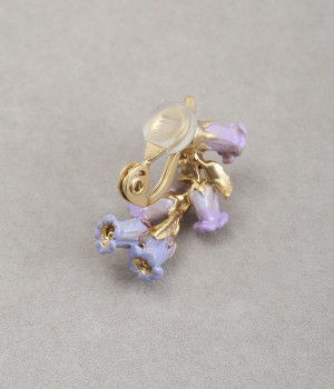 ゆるやかなカーブを描く茎に花をつけたカンパニュラのイヤリングです。カンパニュラの花言葉は「大望」「抱負」。どの方向から見てもかわいらしい花の様子や、少しずつ色合いが変わり奥行きの感じるふんわりとやさしい雰囲気が魅力的なデザインです。耳から垂れ下がるボリューム感が目を惹き、顔まわりをぐっと華やかに。パチンと留めるクリップ式で着脱が簡単に行えます。