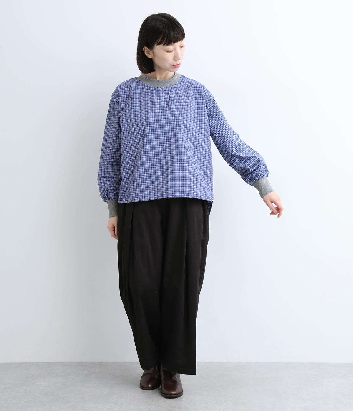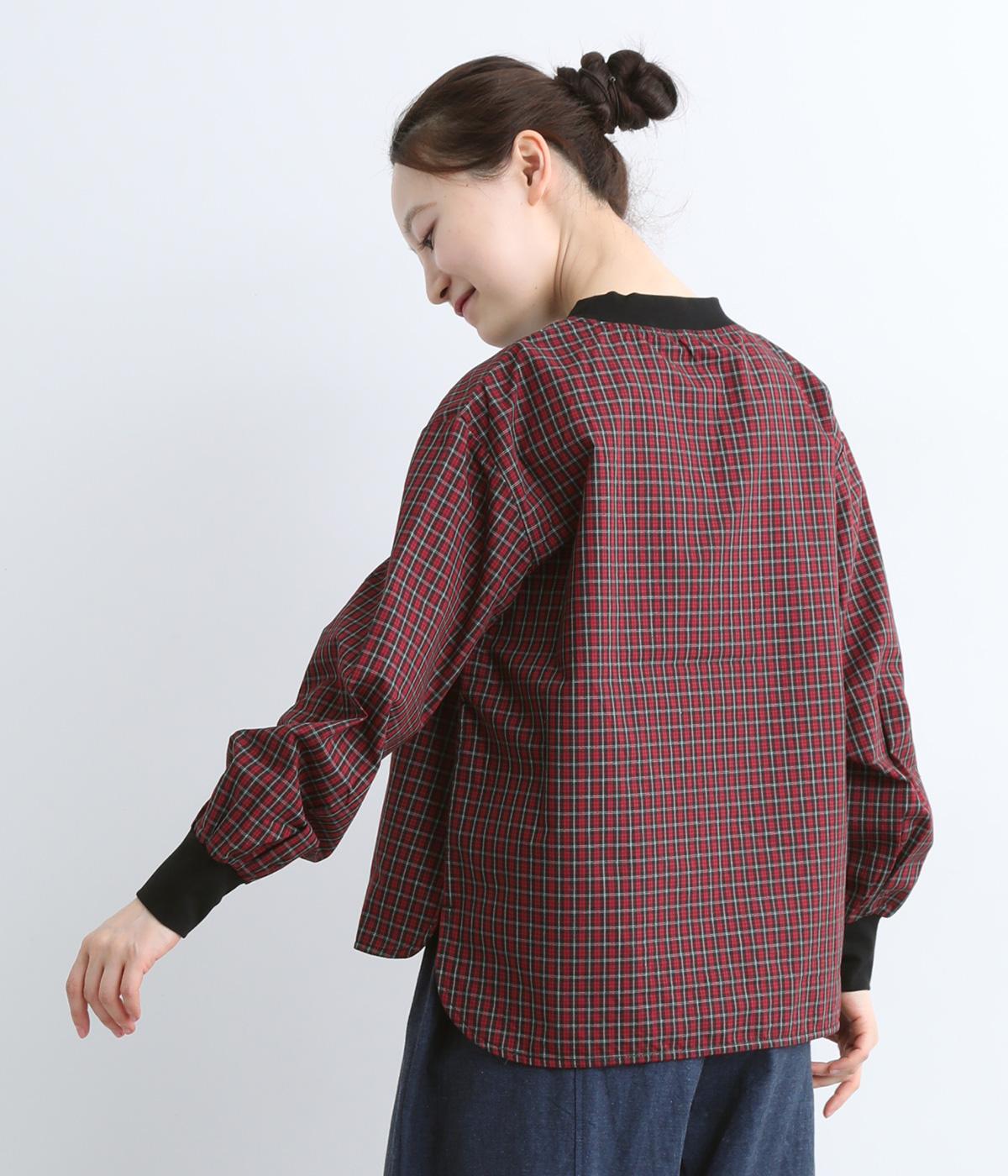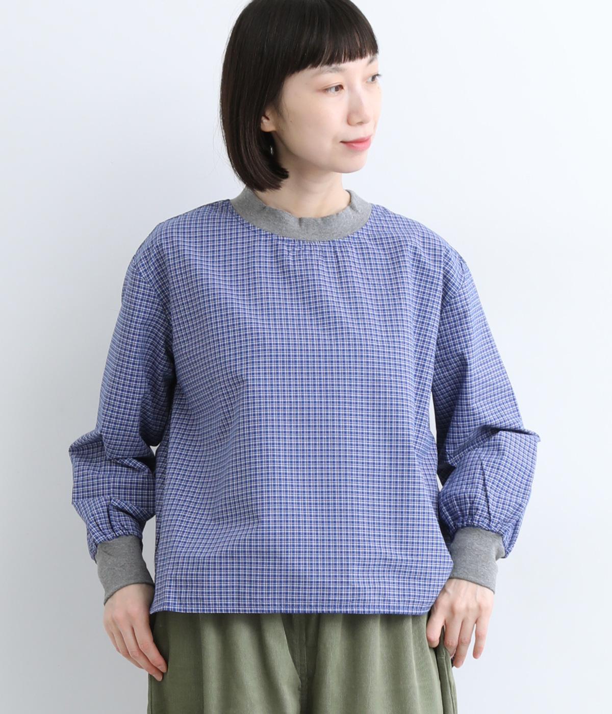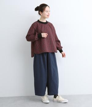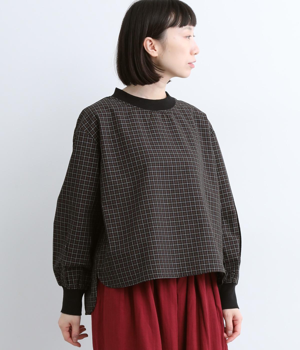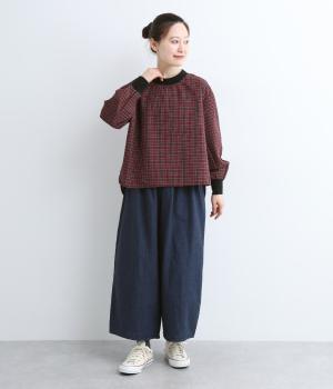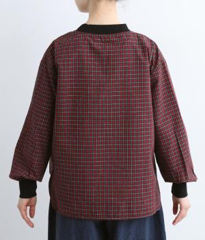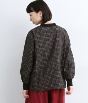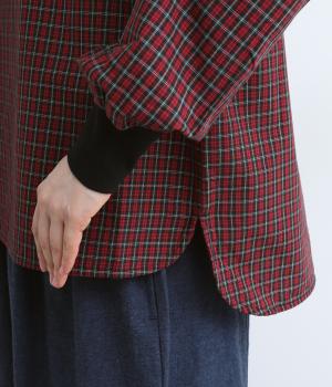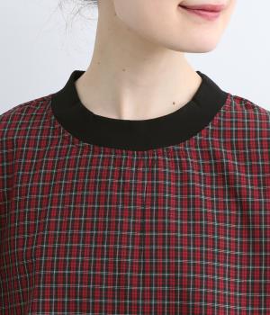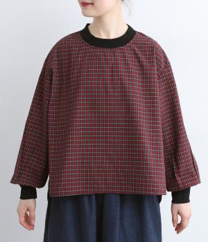 コットンとポリエステルを混ぜた、さらりとした質感のチェック柄トップス。襟元と袖口にコットン混のリブをあしらい、異素材MIXがオシャレ感を引き立てます。