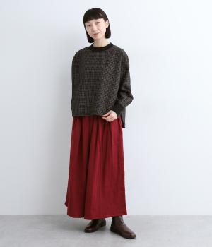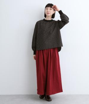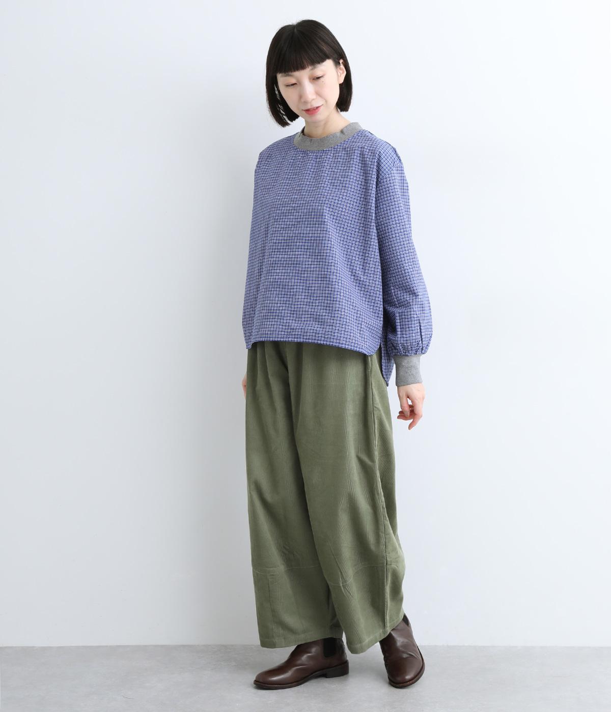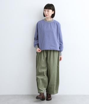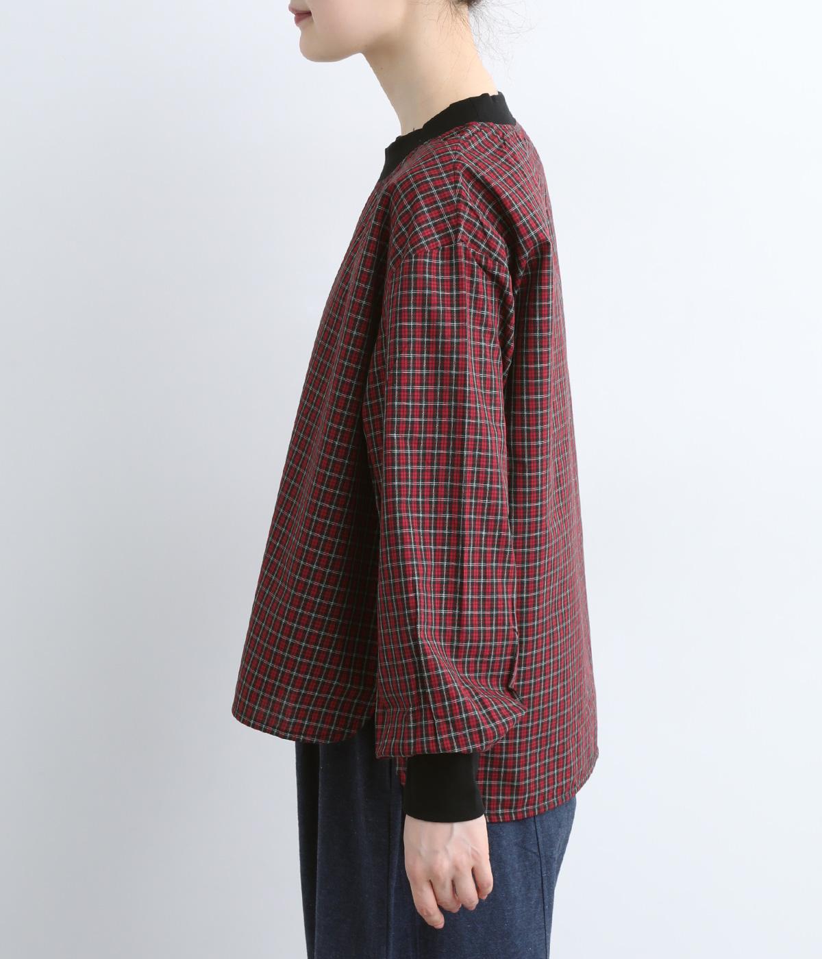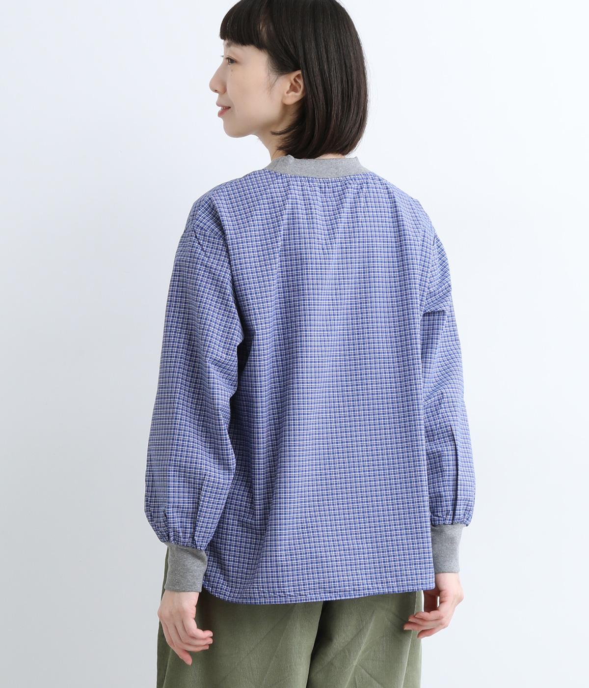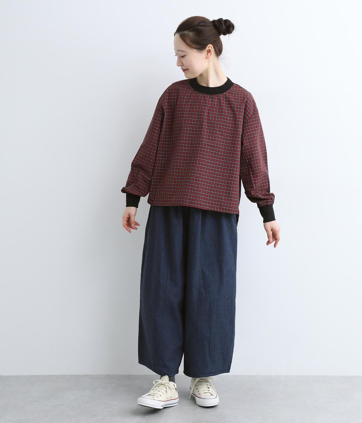 コットンとポリエステルを混ぜた、さらりとした質感のチェック柄トップス。襟元と袖口にコットン混のリブをあしらい、異素材MIXがオシャレ感を引き立てます。