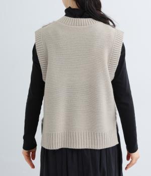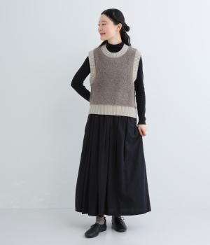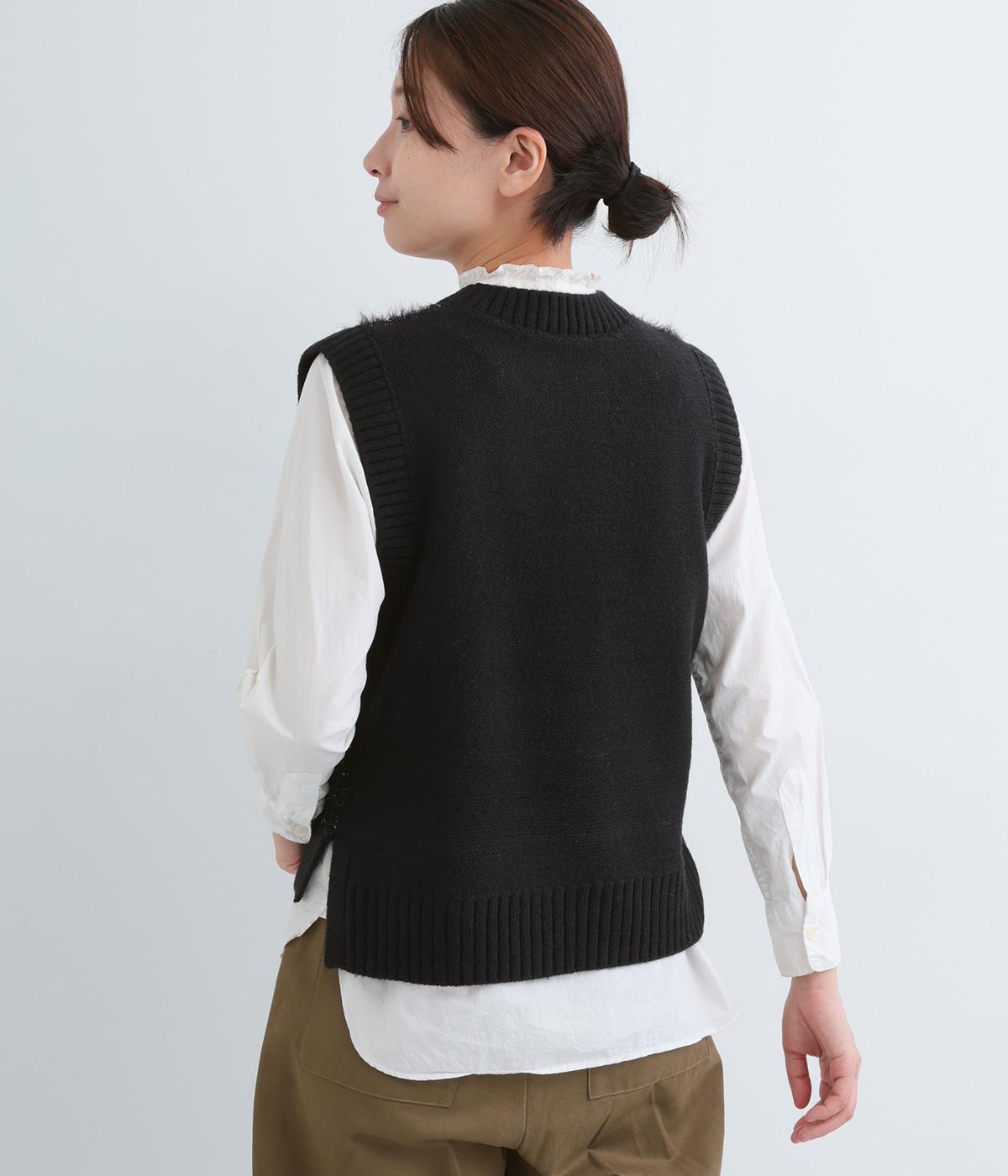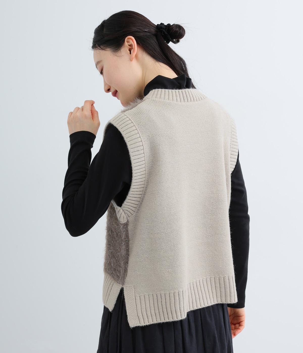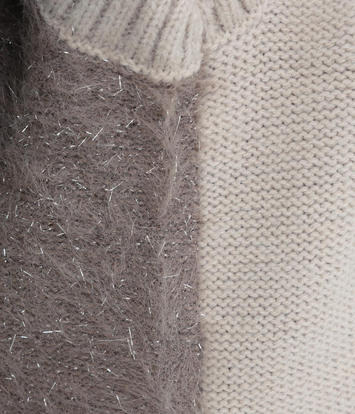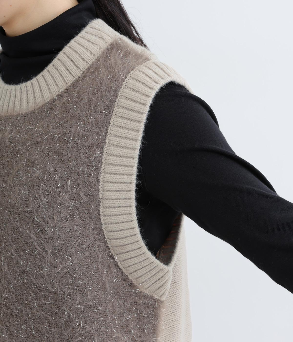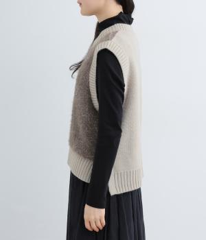 見た目にもあたたかなフェザーヤーンはところどころラメが光り、装いに上品な華やかさを添えます。伸縮性のある素材感やサイドスリットで、インナーと重ねやすい仕上がりです。ほどよい丈感でボトムスを選ばず、さまざまなスタイリングになじみます。