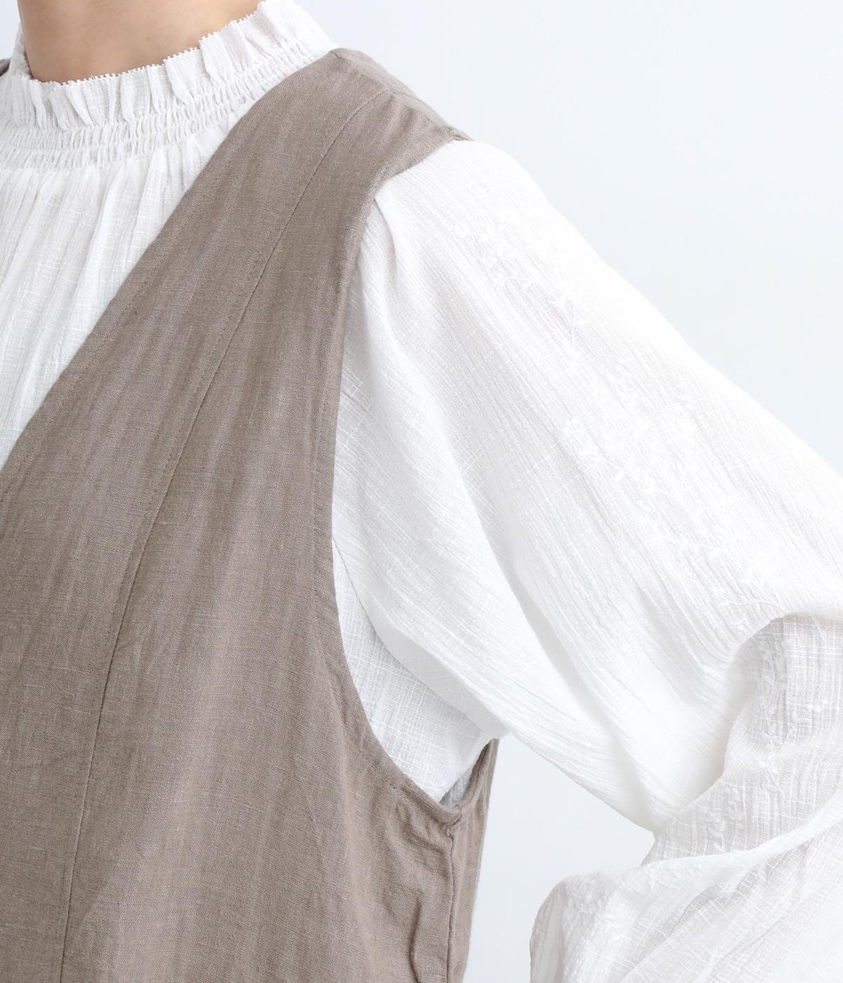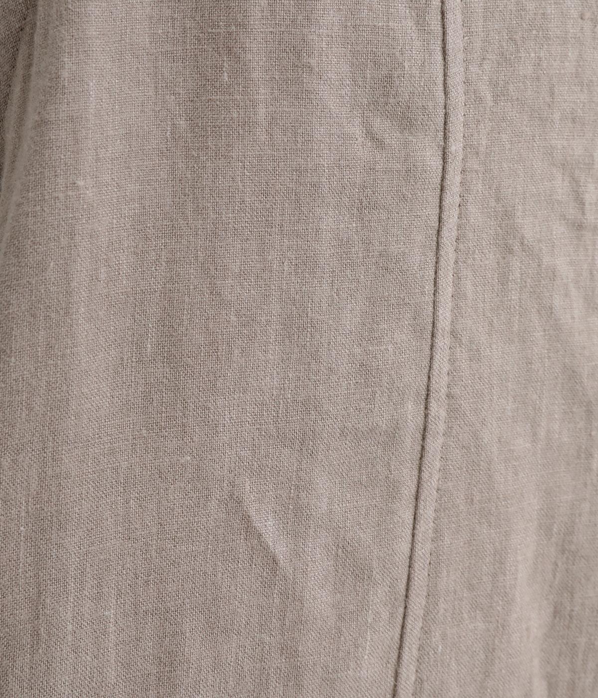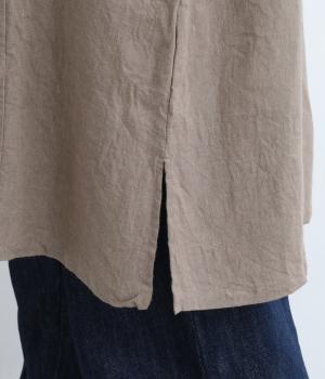 上質なフレンチリネンにワッシャー加工で自然なシワ感をつけました。薄手ながらも適度にハリのあるキャンバス生地で心地よく着用できます。
