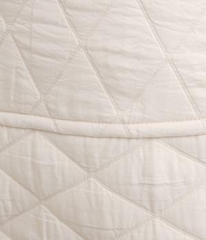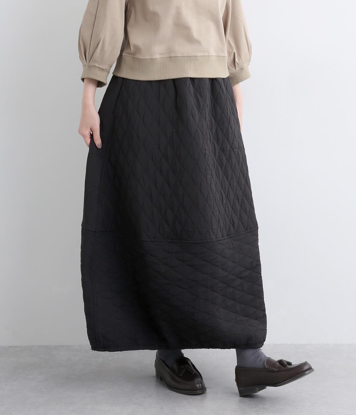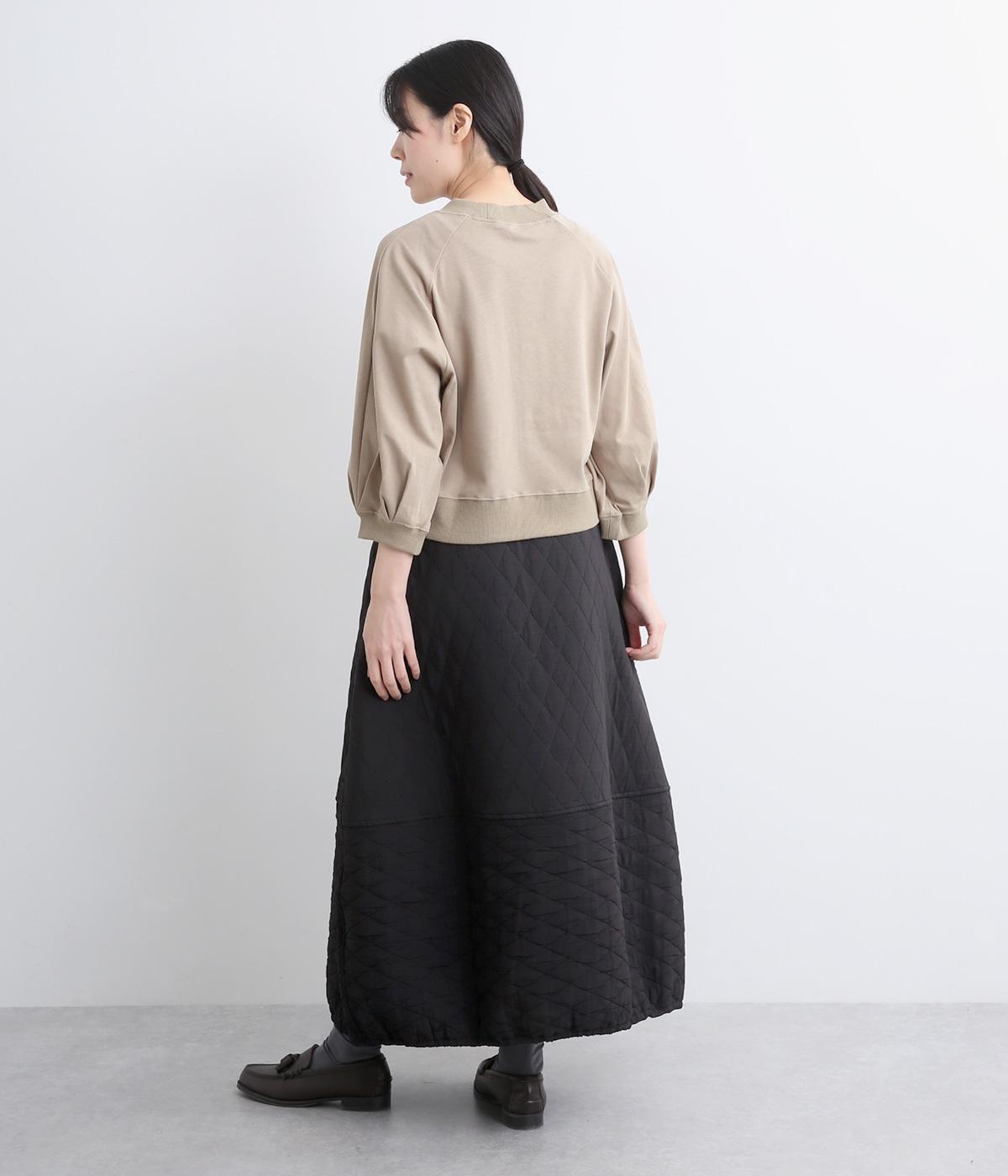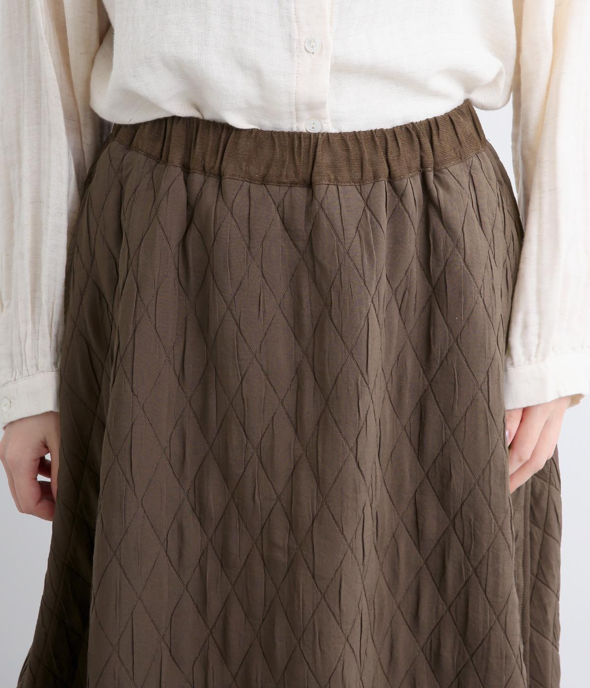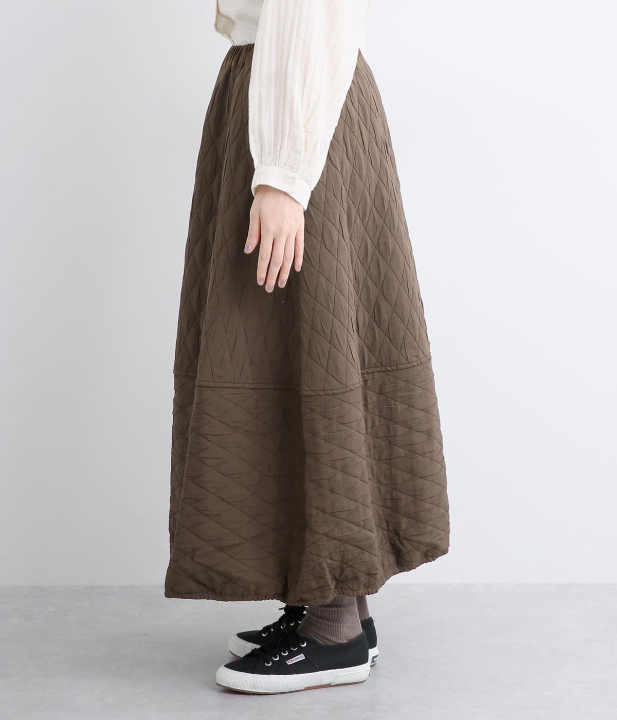 向きの異なるダイヤ柄を切り替えて、こなれ感ある仕上がりにしました。裾はゴム入りで丸みを出し、かわいらしさを演出しています。個性が光りつつも素朴であたたかみのある風合いです。ウエストは総ゴム仕様で紐で調節できます。