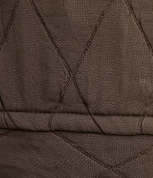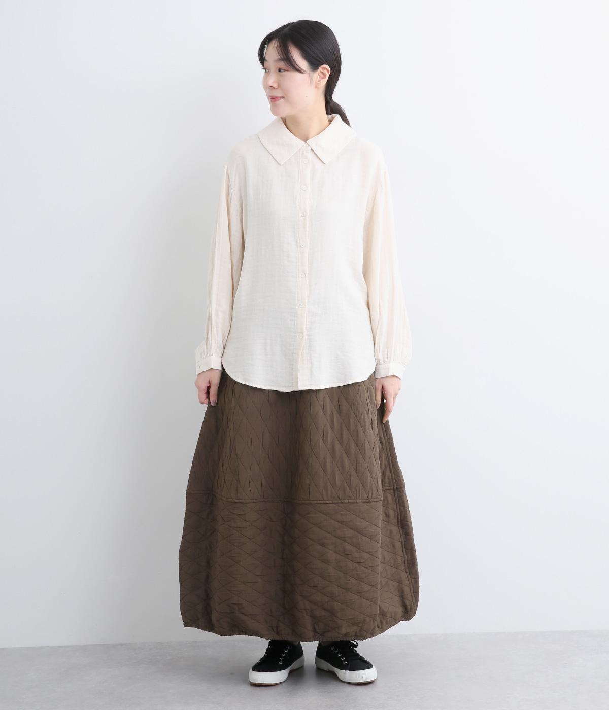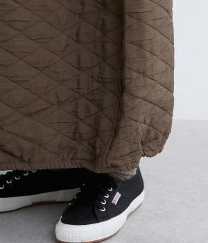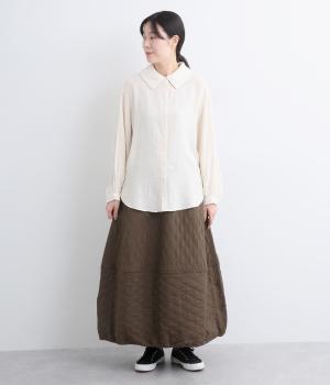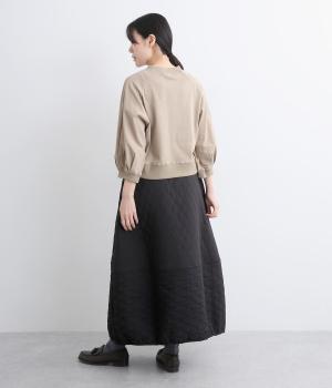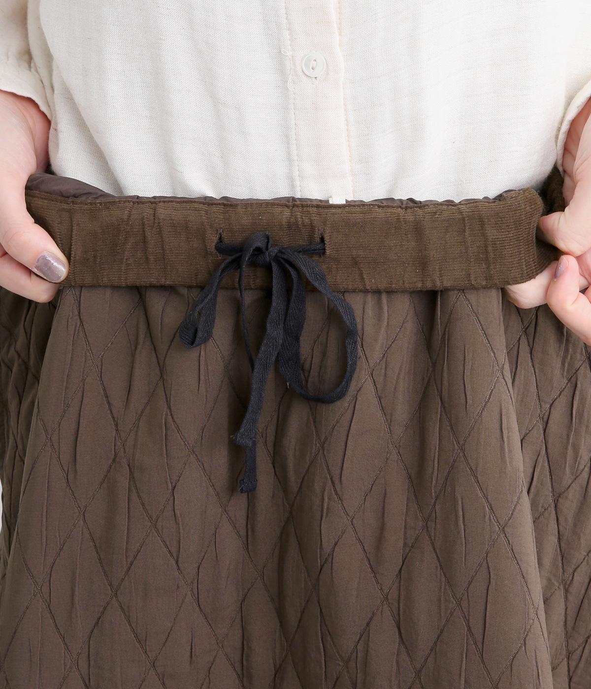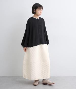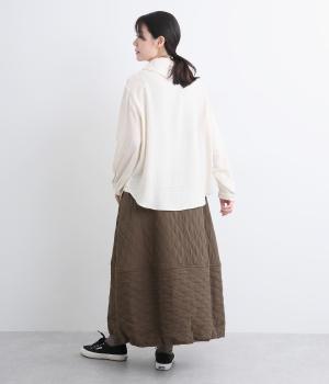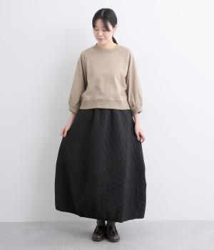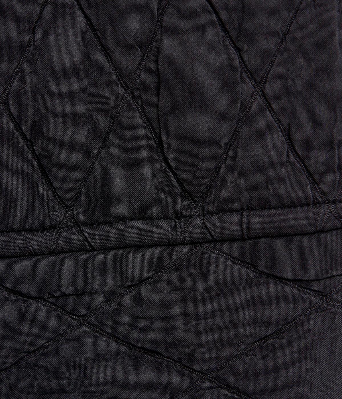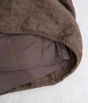 立体的な凸凹のあるふくれ織りを使用しました。独特のボリューム感が重厚感を醸します。ウエスト部分はコーデュロイ生地になっていて、さりげなくカジュアルなアクセントを添えています。