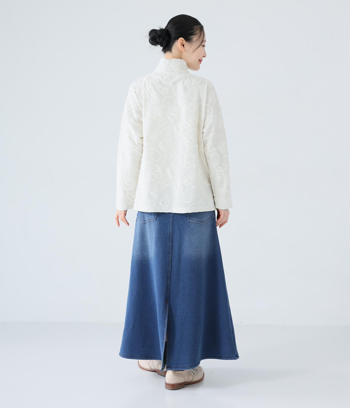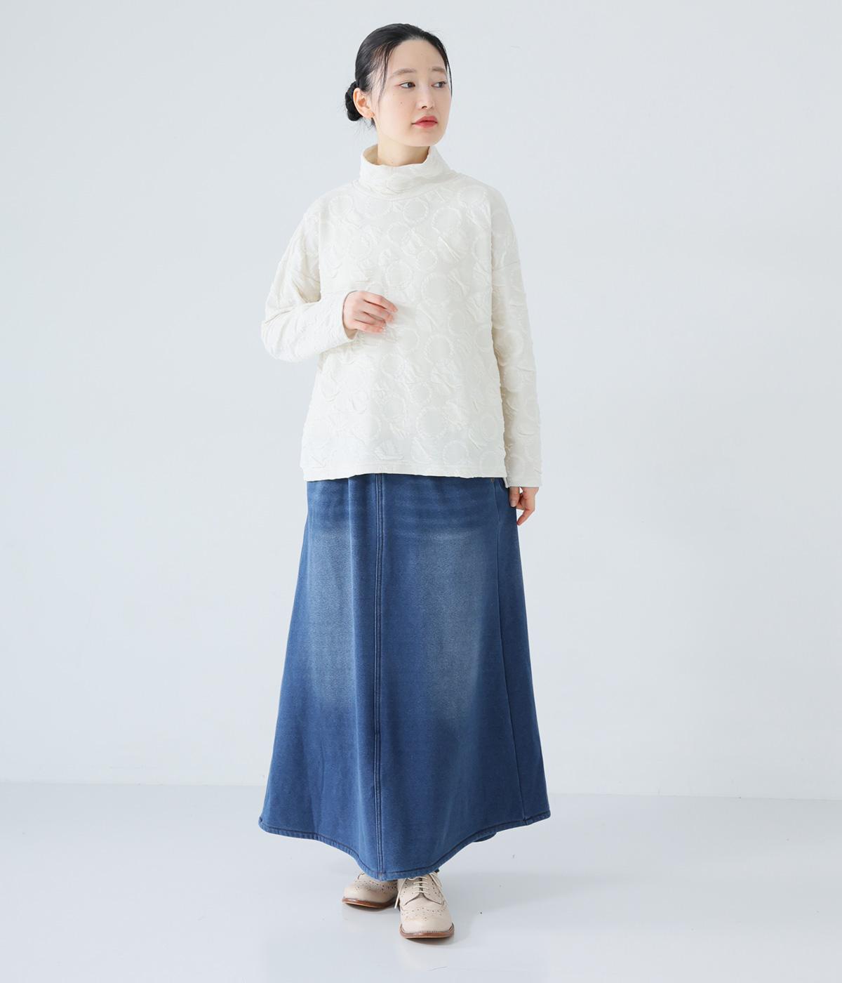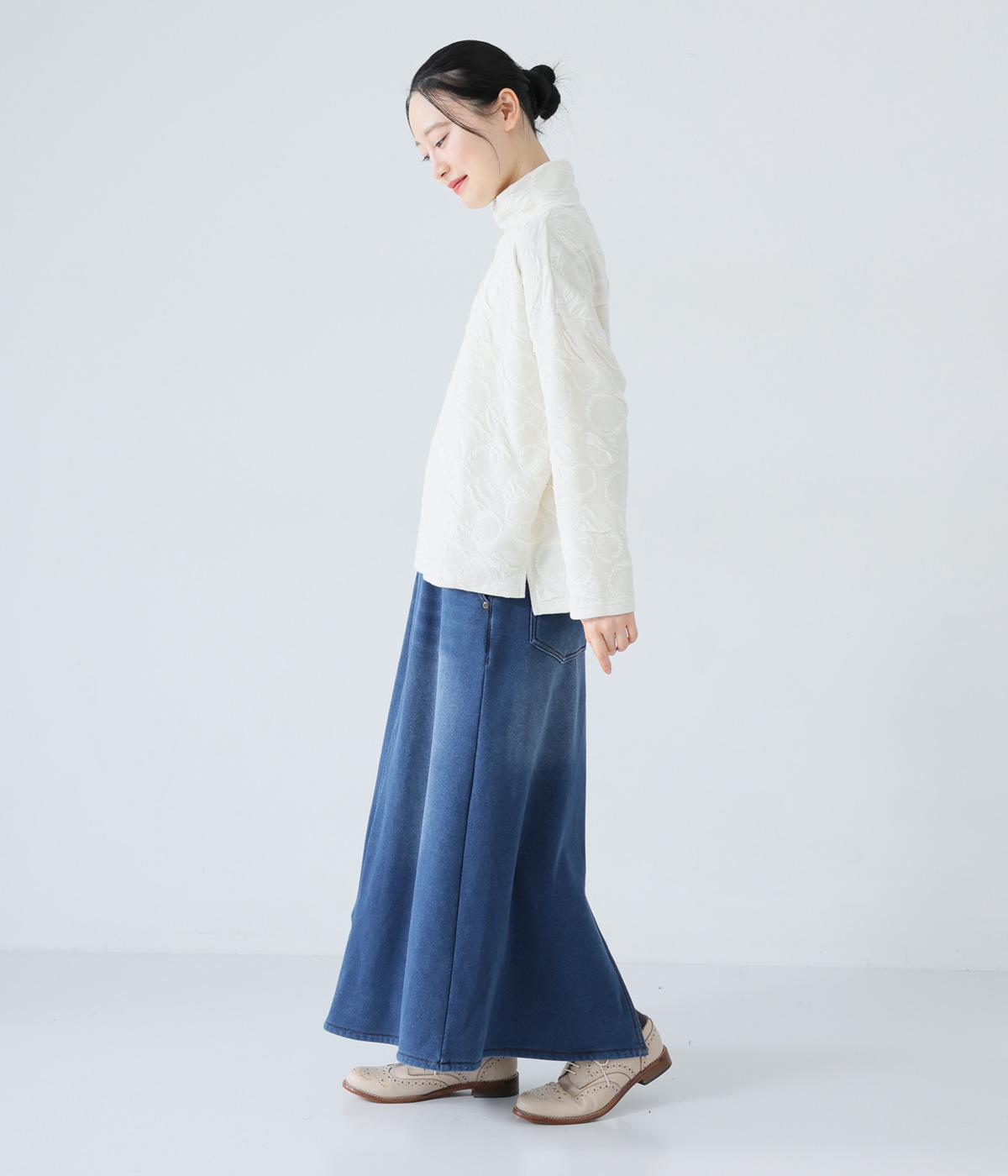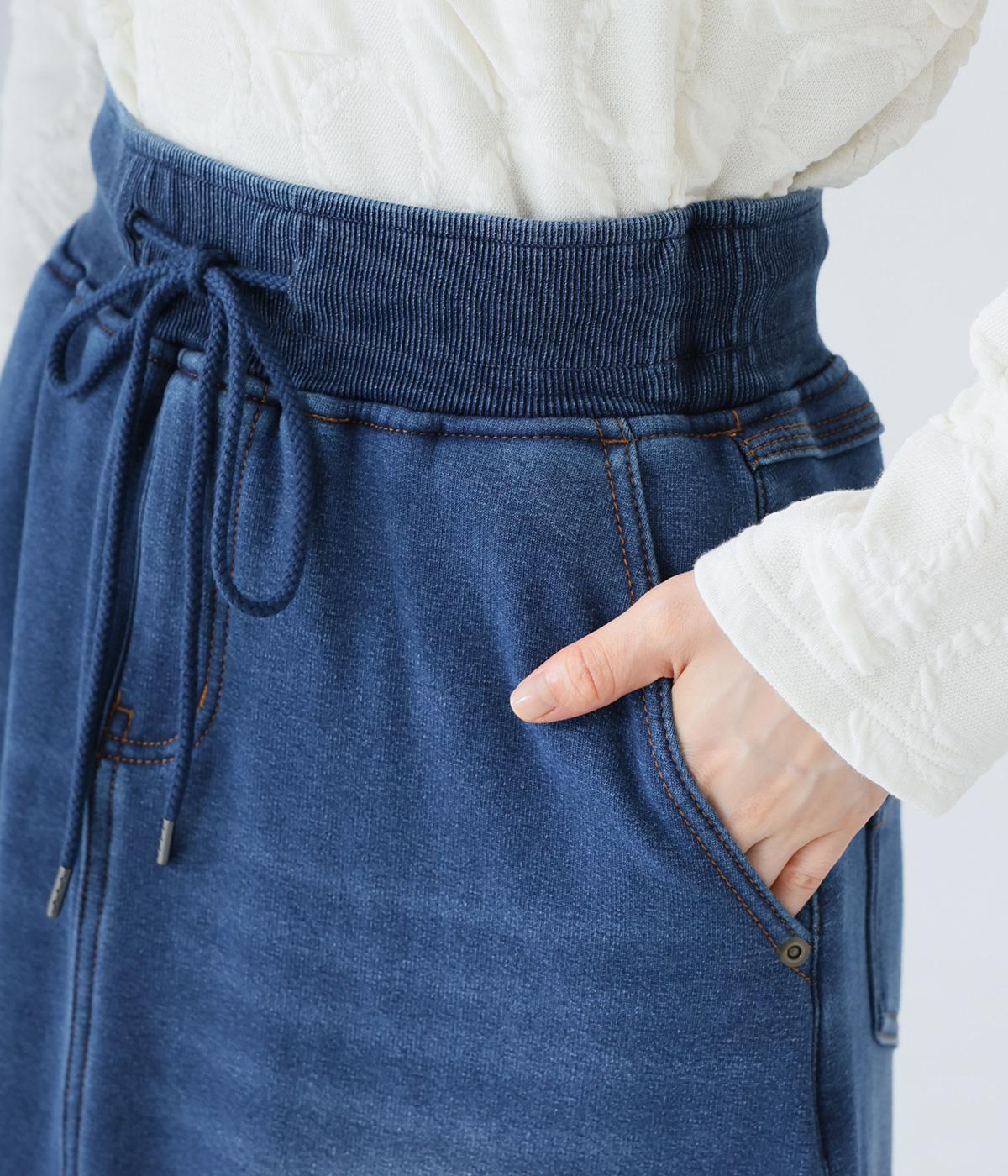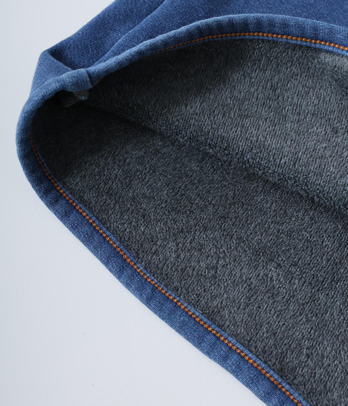 あたたかくイージーな着用感にこだわったコットン混のニットデニム生地。裏面をやわらかなシャギー素材にした、伸縮性の高い生地感です。インディゴ染めを施したデニムならではのルックスが◎。