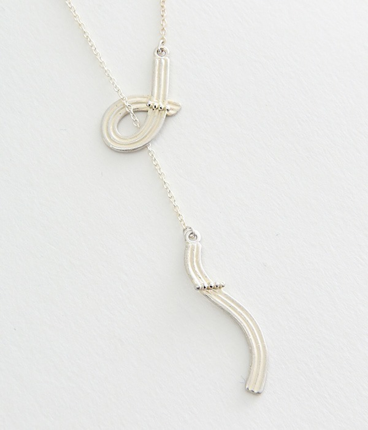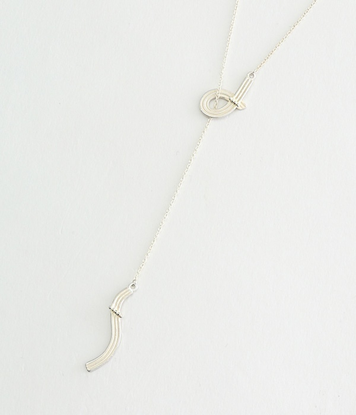 一つのロープが重なりあい自由な曲線で表現されている、丁寧に編み込まれたモチーフのラリエットです。繊細で柔らかい印象を与えて、落ち着いた陰影のある光がさりげないアクセントに。ネックレスとは違い、ロープを通すようにつけるデザインです。オフィスはもちろん、パーティーなどのあらゆるシーンで活躍して女性らしい印象を与えます。ギフトにもおすすめです。