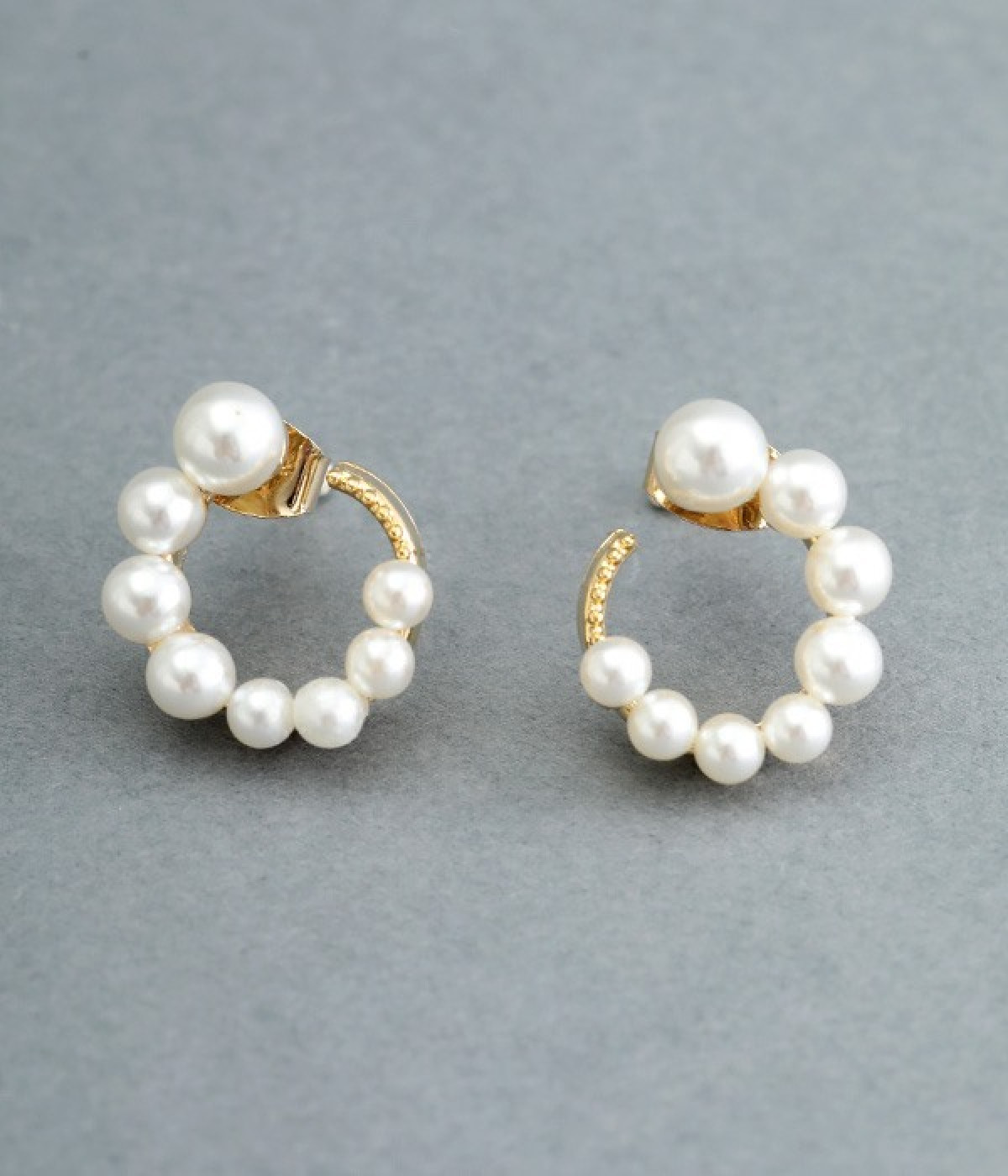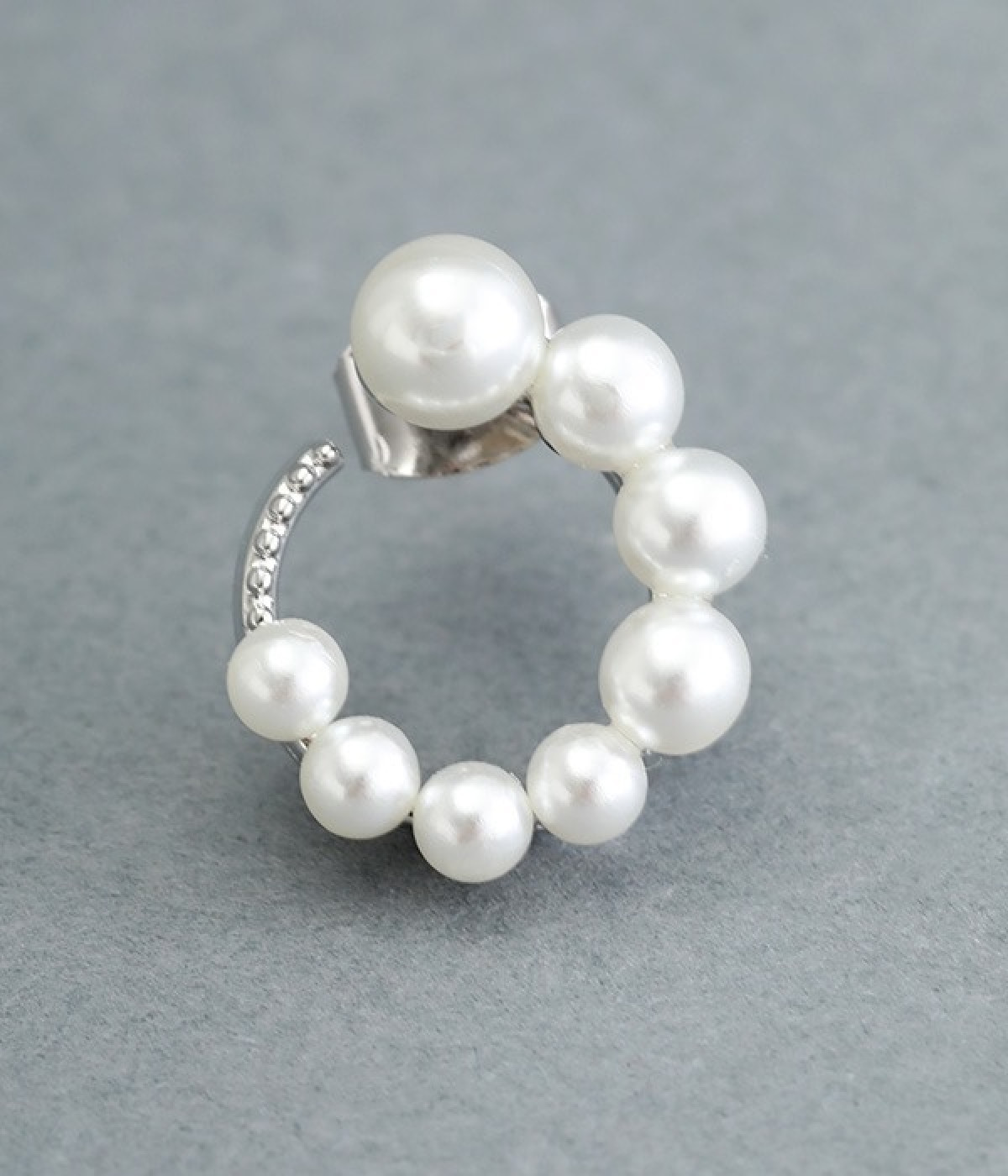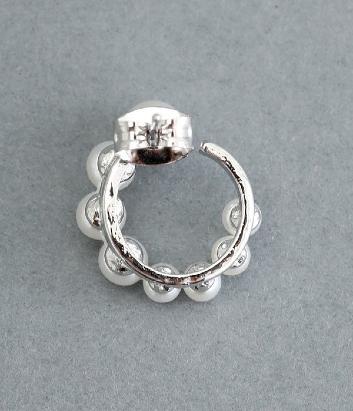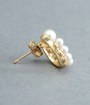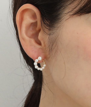 サークル状に小粒パールを配置したエレガントなピアスです。やわらかなつやのパールは複数並べていても主張しすぎず、使いやすいのがうれしいポイント。肌に触れていても安心のニッケルフリーメッキ素材を使用しています。普段のコーディネートにはもちろん、お呼ばれスタイルにも活躍します。