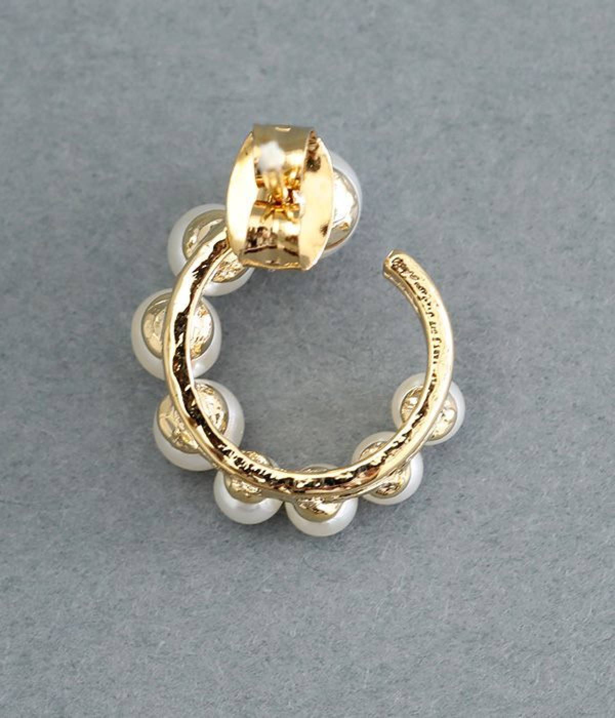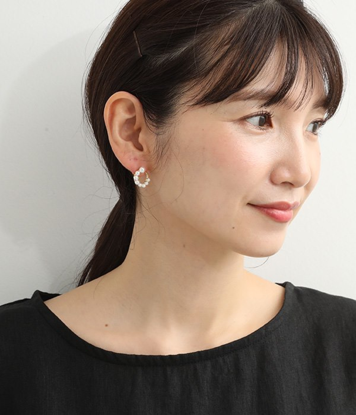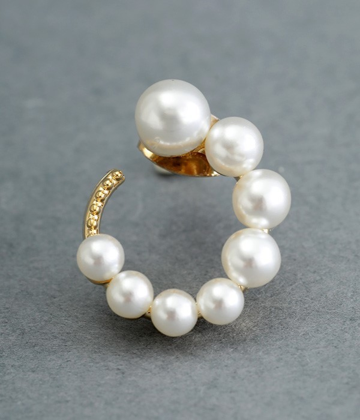 サークル状に小粒パールを配置したエレガントなピアスです。やわらかなつやのパールは複数並べていても主張しすぎず、使いやすいのがうれしいポイント。肌に触れていても安心のニッケルフリーメッキ素材を使用しています。普段のコーディネートにはもちろん、お呼ばれスタイルにも活躍します。
