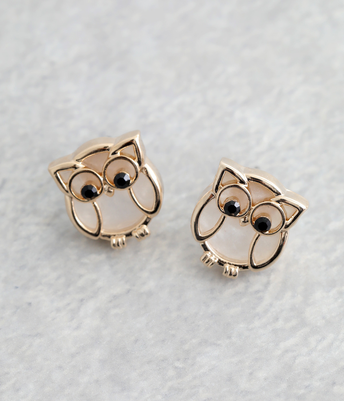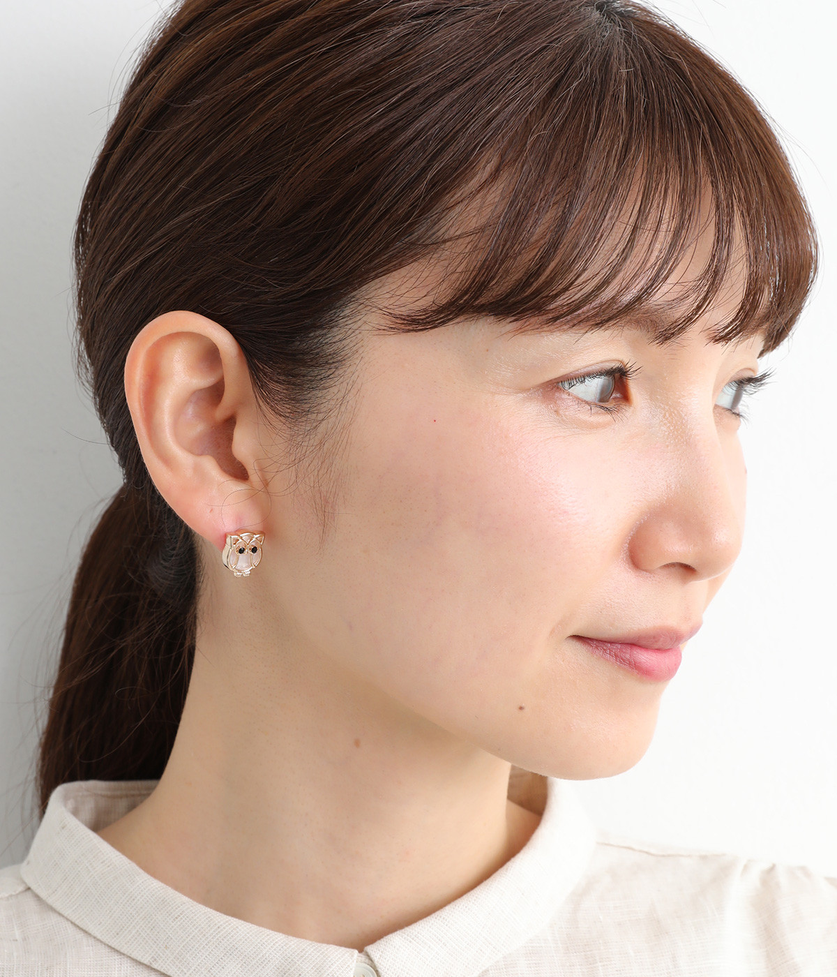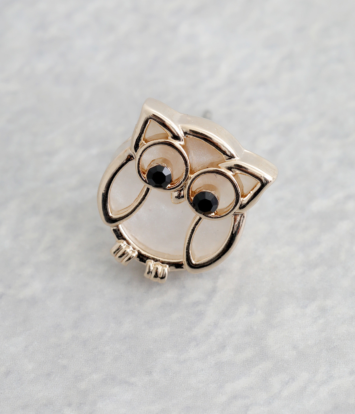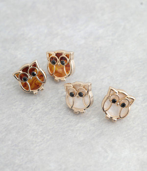ラッキーモチーフとしても有名なふくろうを模ったピアスです。目はきらりと光るガラスを用いてアクセントに。落ち着いた色合いに仕立てているため、かわいくなりすぎないのも嬉しいポイントです。