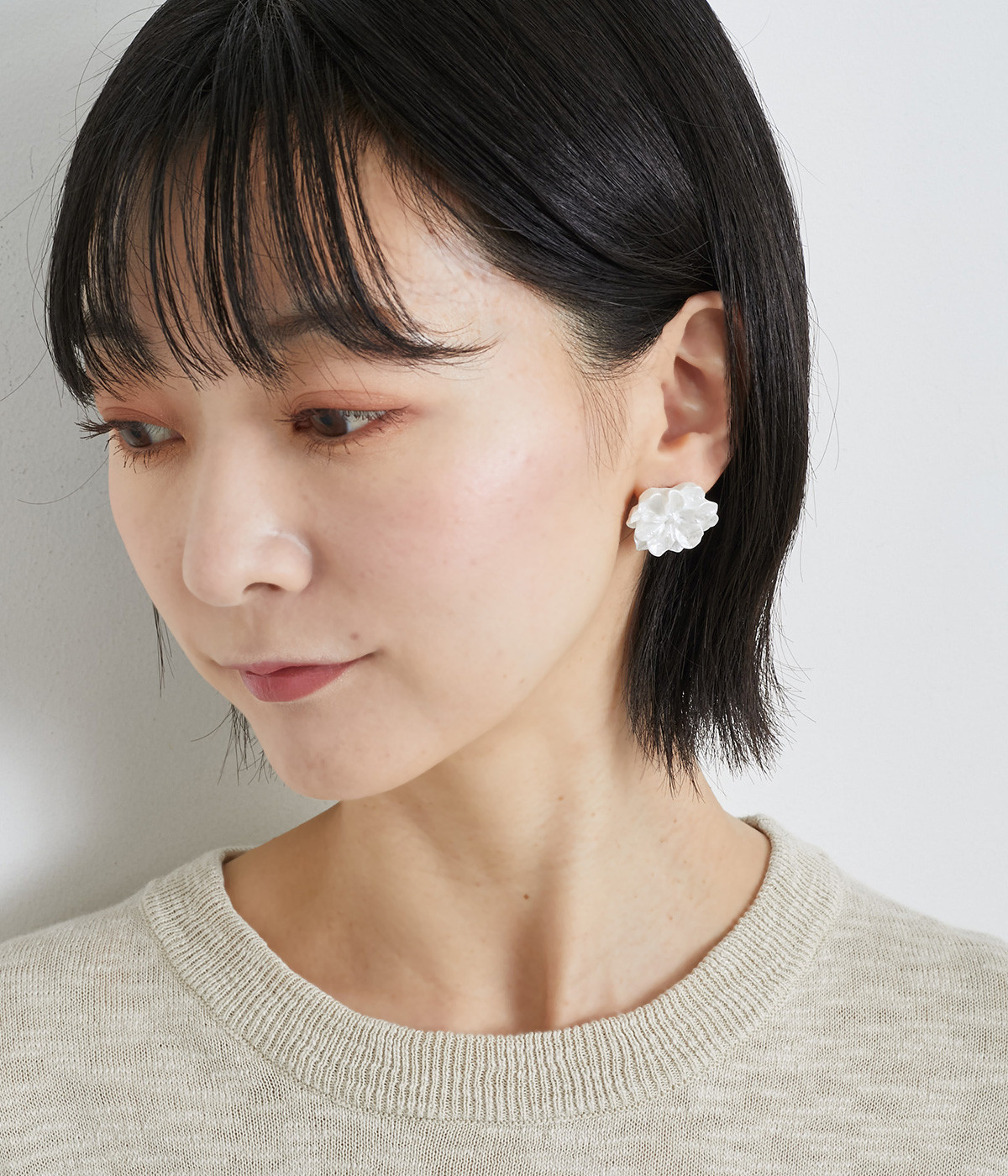 花びらを繊細に表現した立体的な造形で、パッと顔まわりを華やかに飾ります。コーディネートを選ばず、日常使いからお出かけシーンまで幅広く対応。自分用にはもちろん、プレゼントとしても◎
