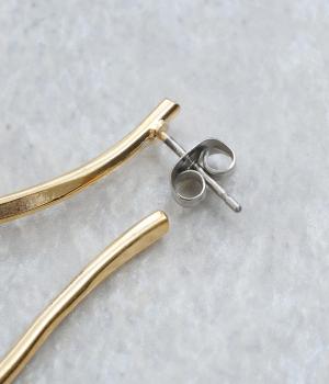 オフィスでもプライベートでも、多彩なシーンで活躍するメタルカラーピアスです。ゆるやかにカーブしたニュアンスのあるデザインで、重ねづけにもおすすめです。