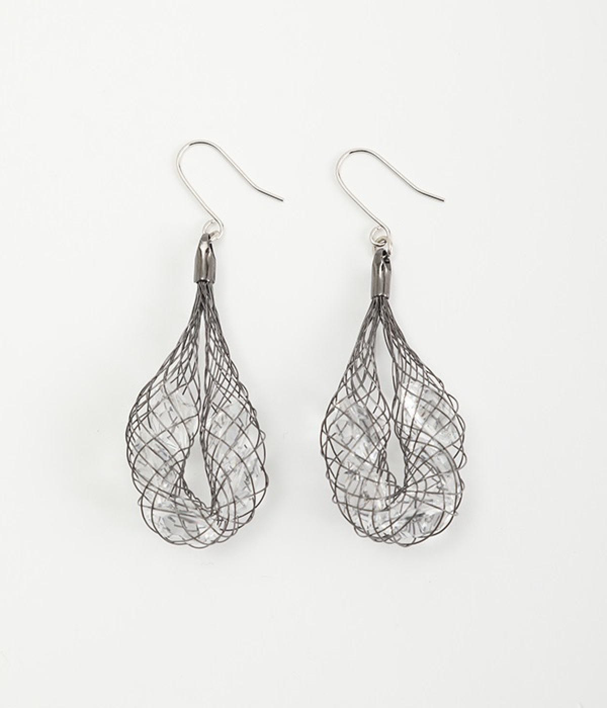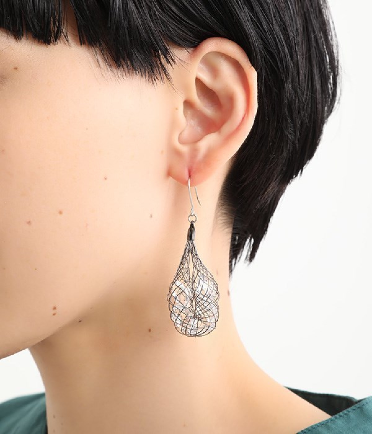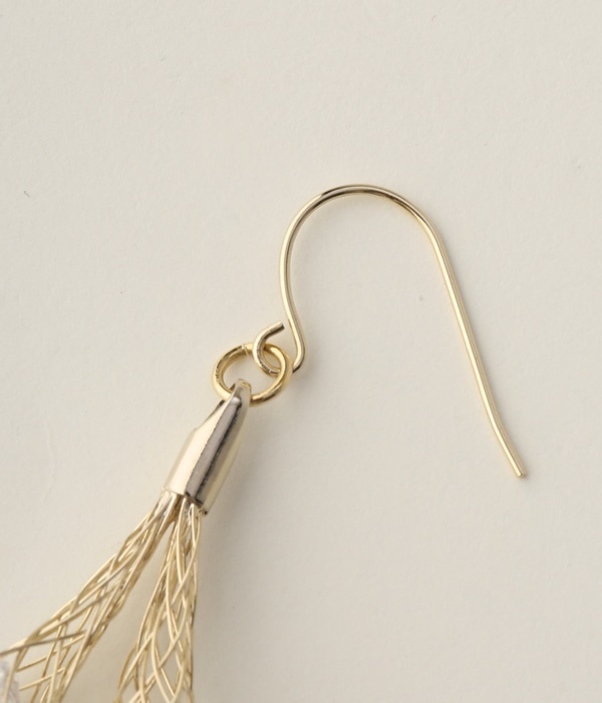 真鍮でできたネットの中にキラキラ輝くビジューを閉じ込めたピアス。細めのネットが、華奢で女性らしい雰囲気を醸し出します。大きめのモチーフが耳元で揺らめき、着こなしに大人っぽいアクセントをプラス。さまざまな洋服に合わせやすいのもうれしいポイントです。普段使いにはもちろん、結婚式やパーティなどのお呼ばれシーンにもおすすめ。